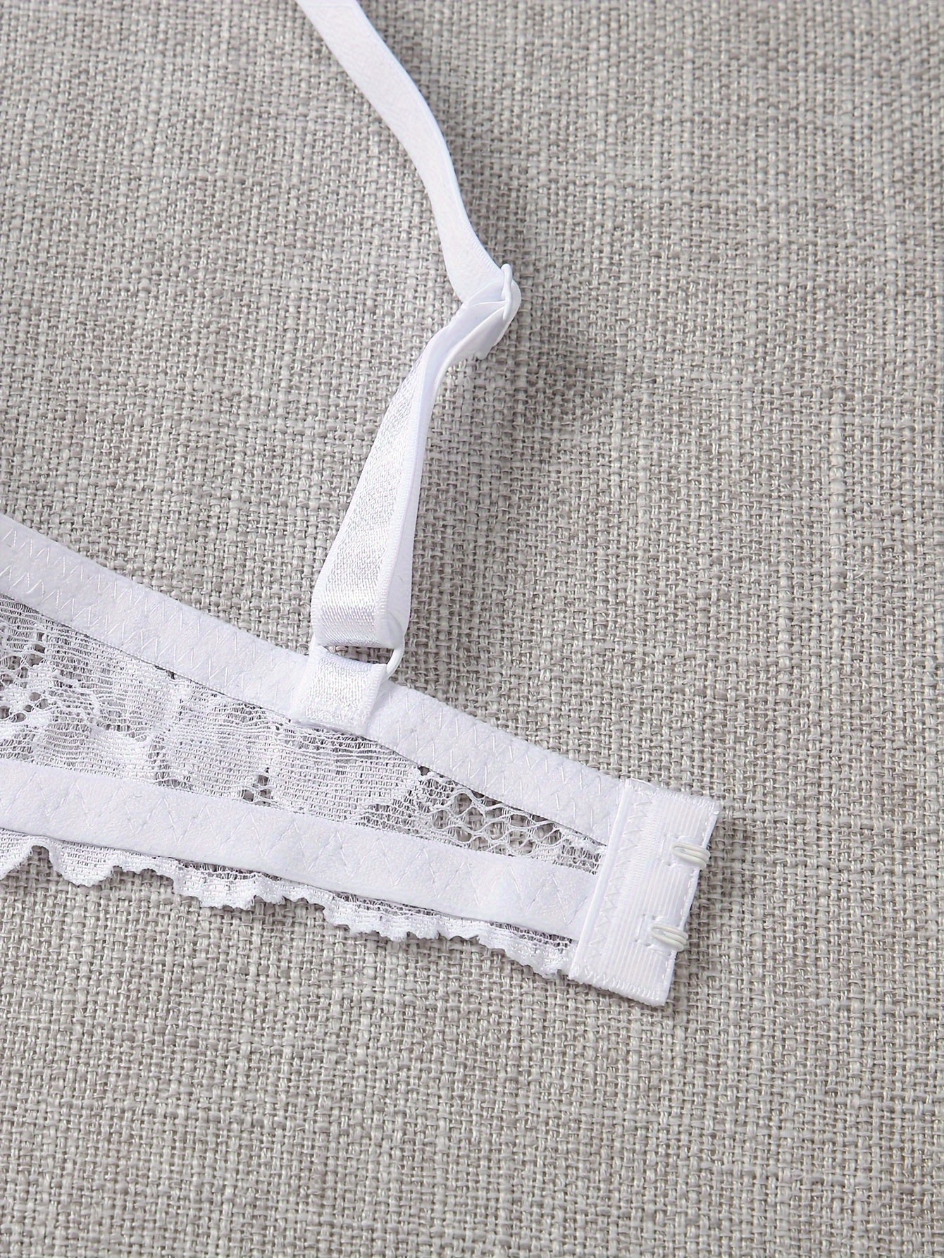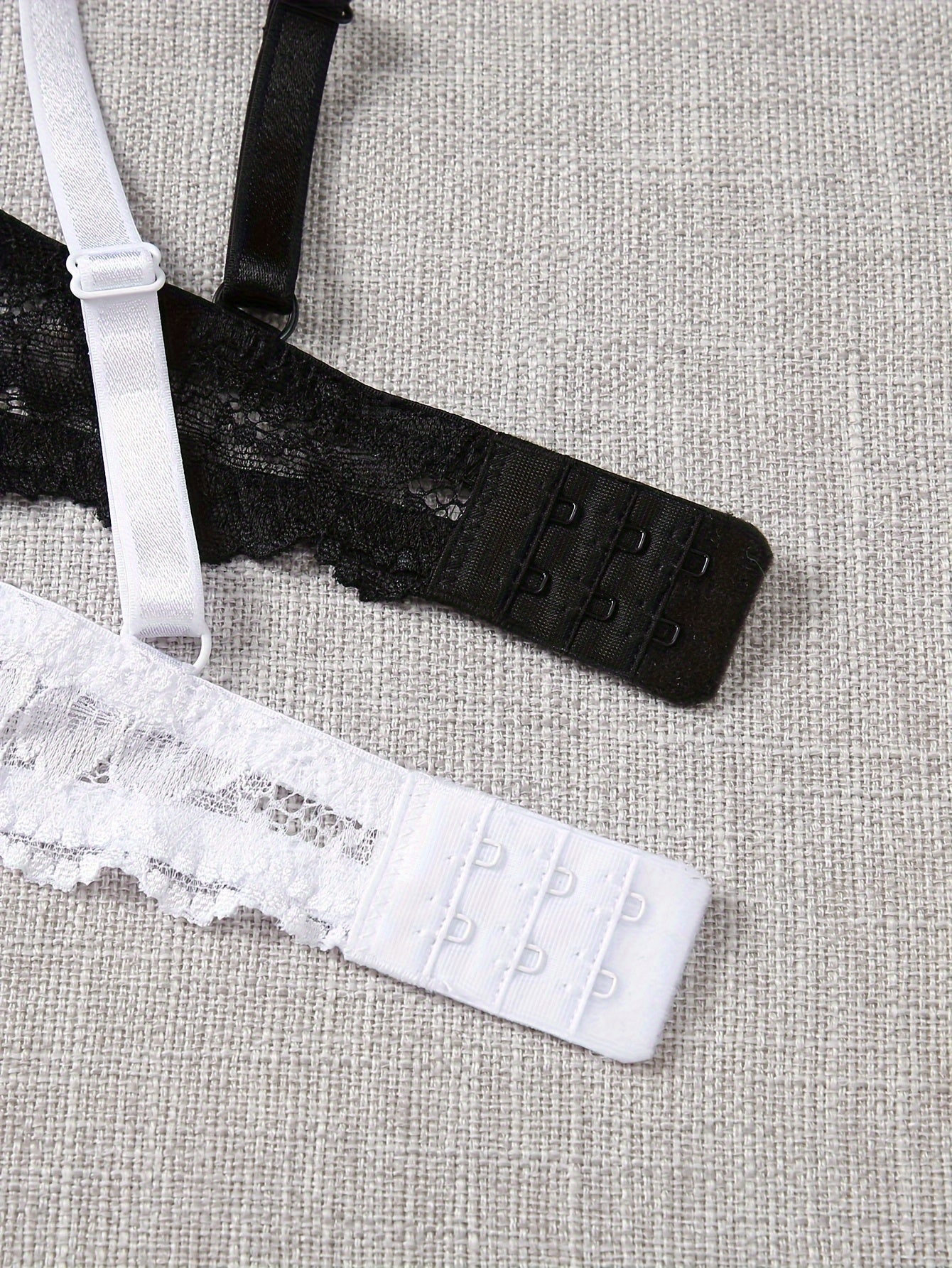 Комплект из 2-х бюстгальтеров с кружевом для женщин черного и белого цвета, с поддержкой на косточках и деликатными кружевными деталями. Изготовлены из дышащей смеси нейлона и эластана, не просвечивают.