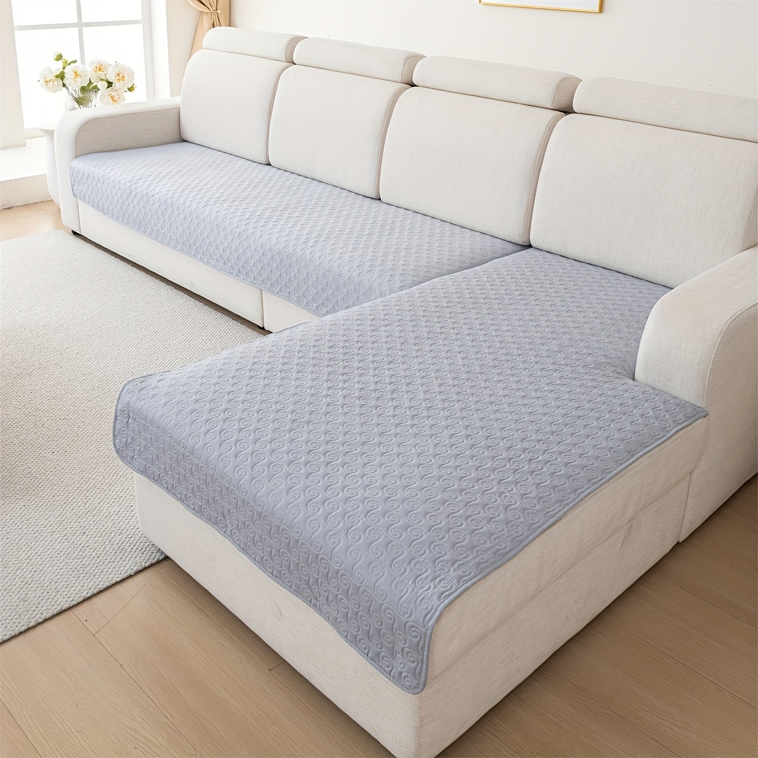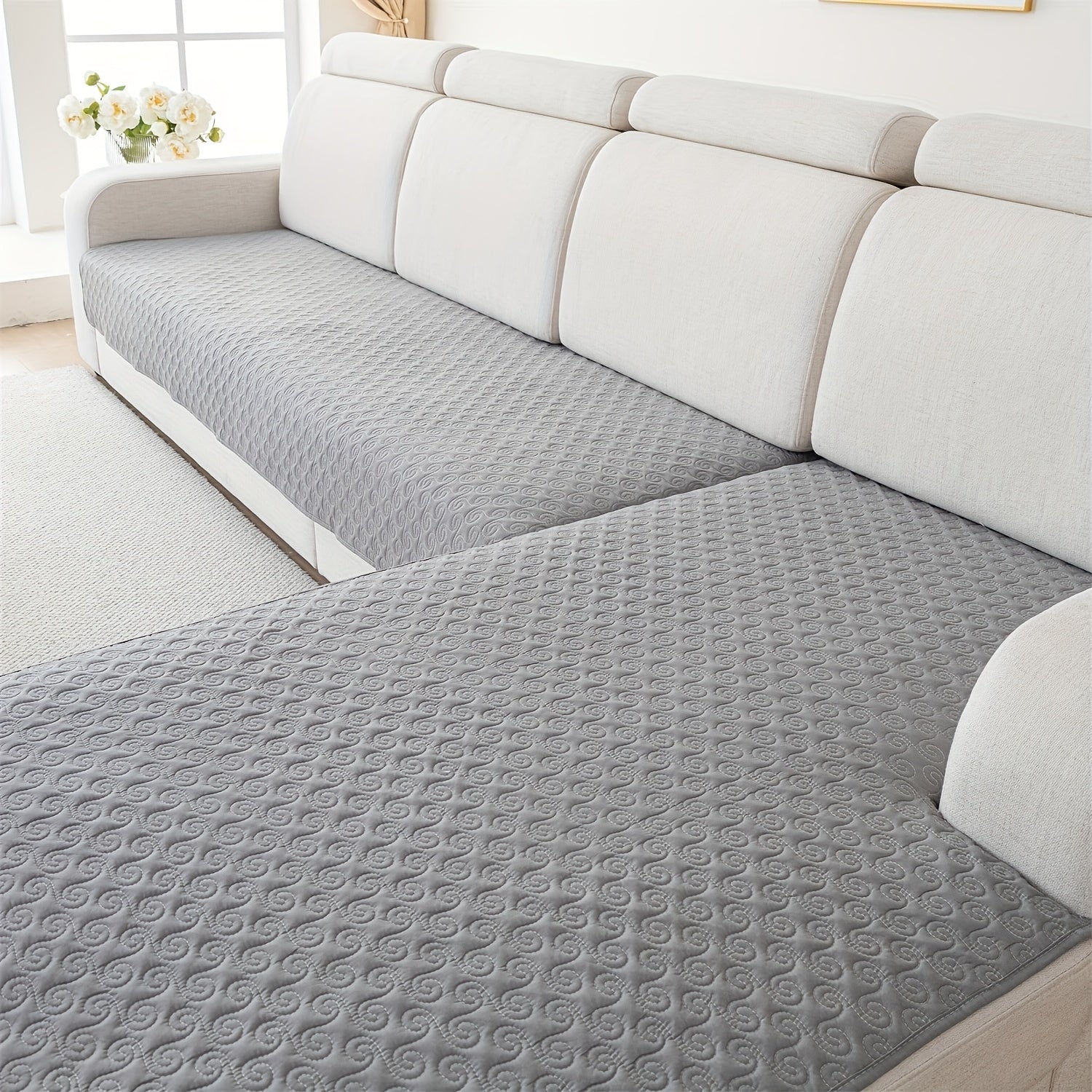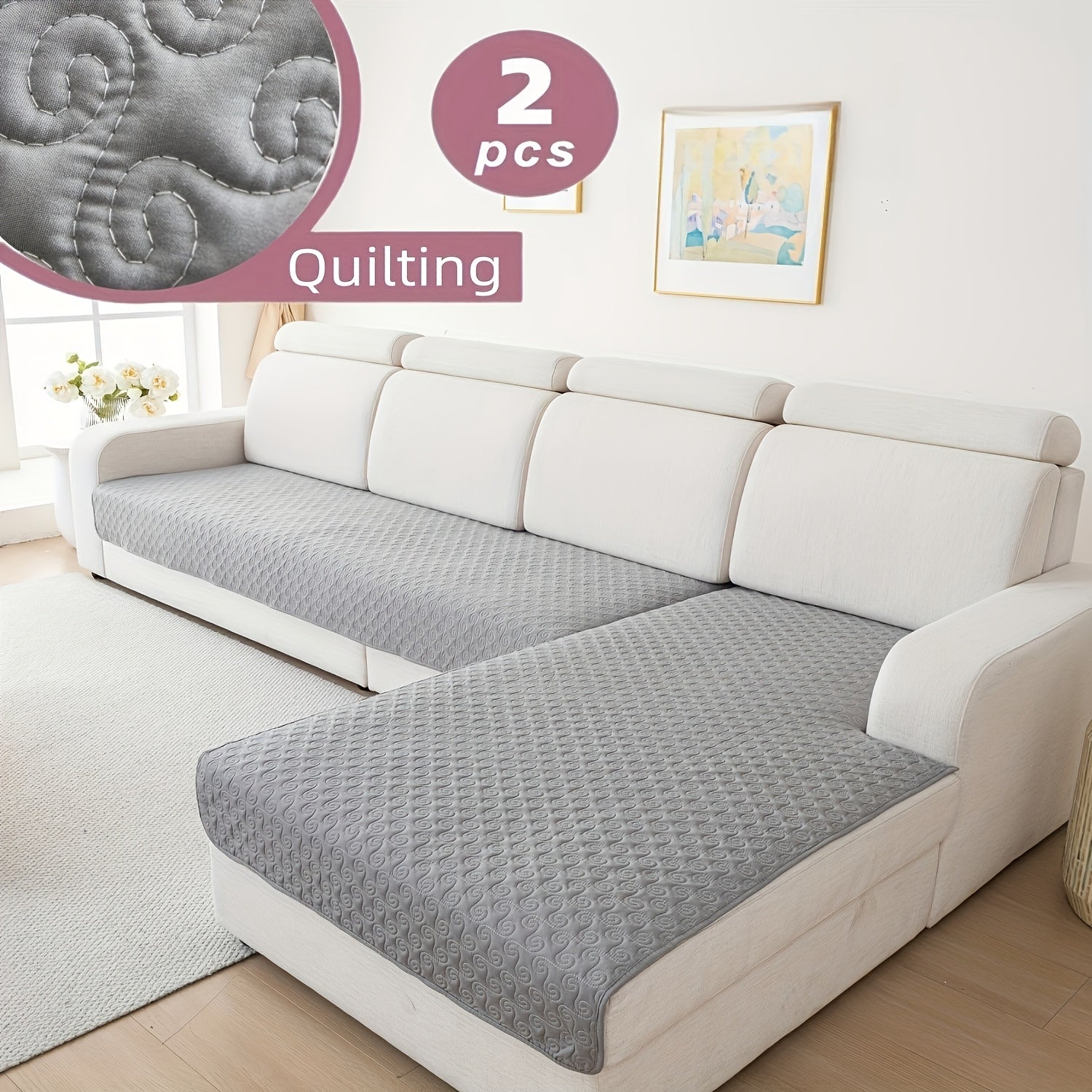 Набор из 2 современных геометрических стеганых чехлов для диванов от одного до четырех мест, противоскользящий и дружелюбный к домашним животным полиэстер, машинная стирка с круговыми строчками.