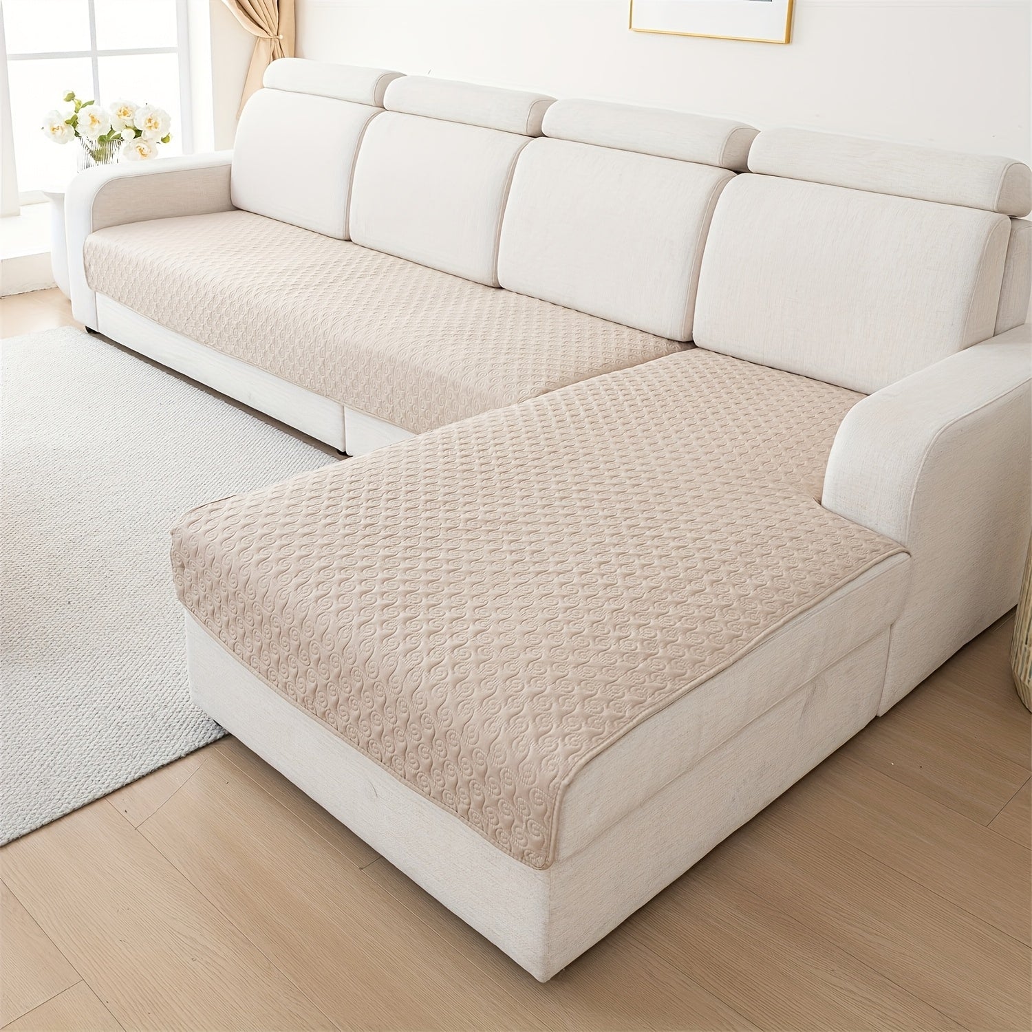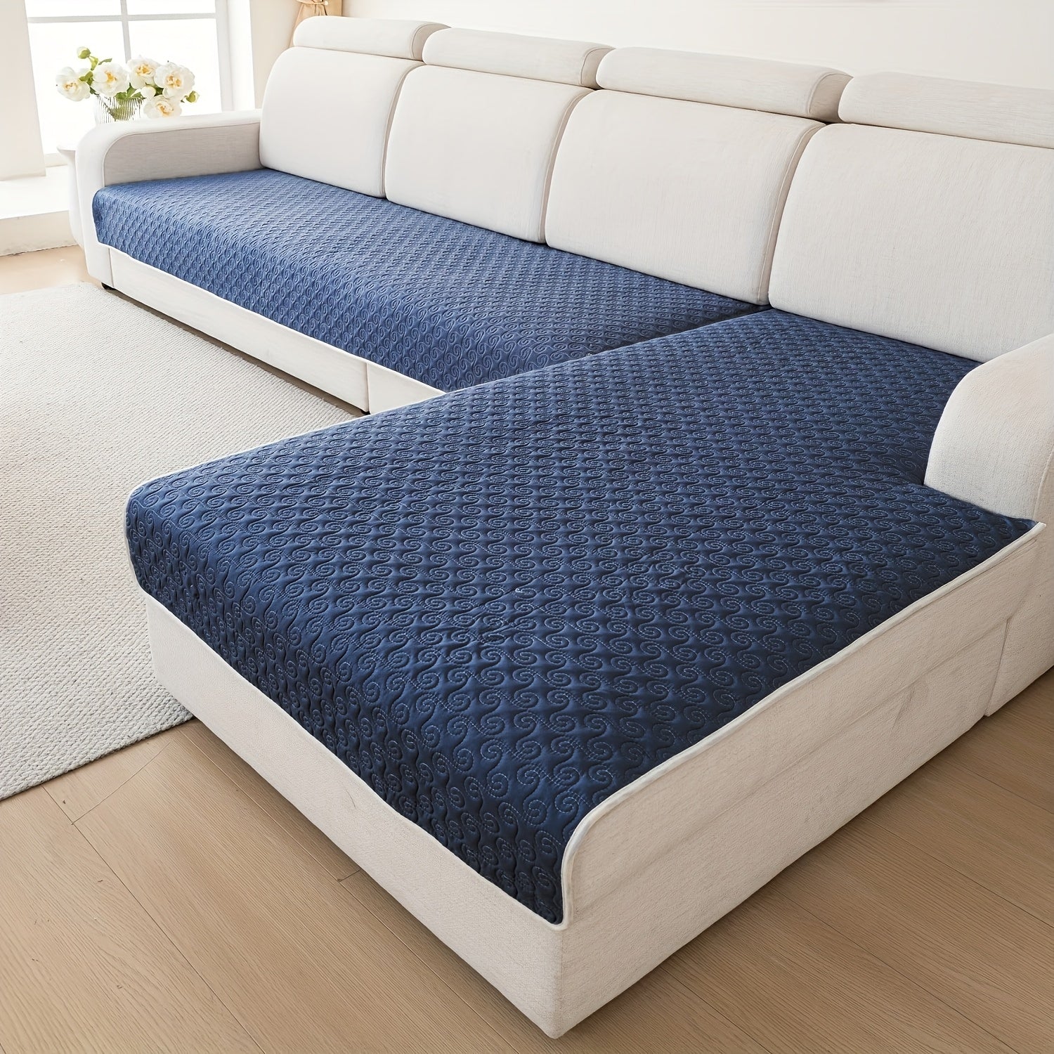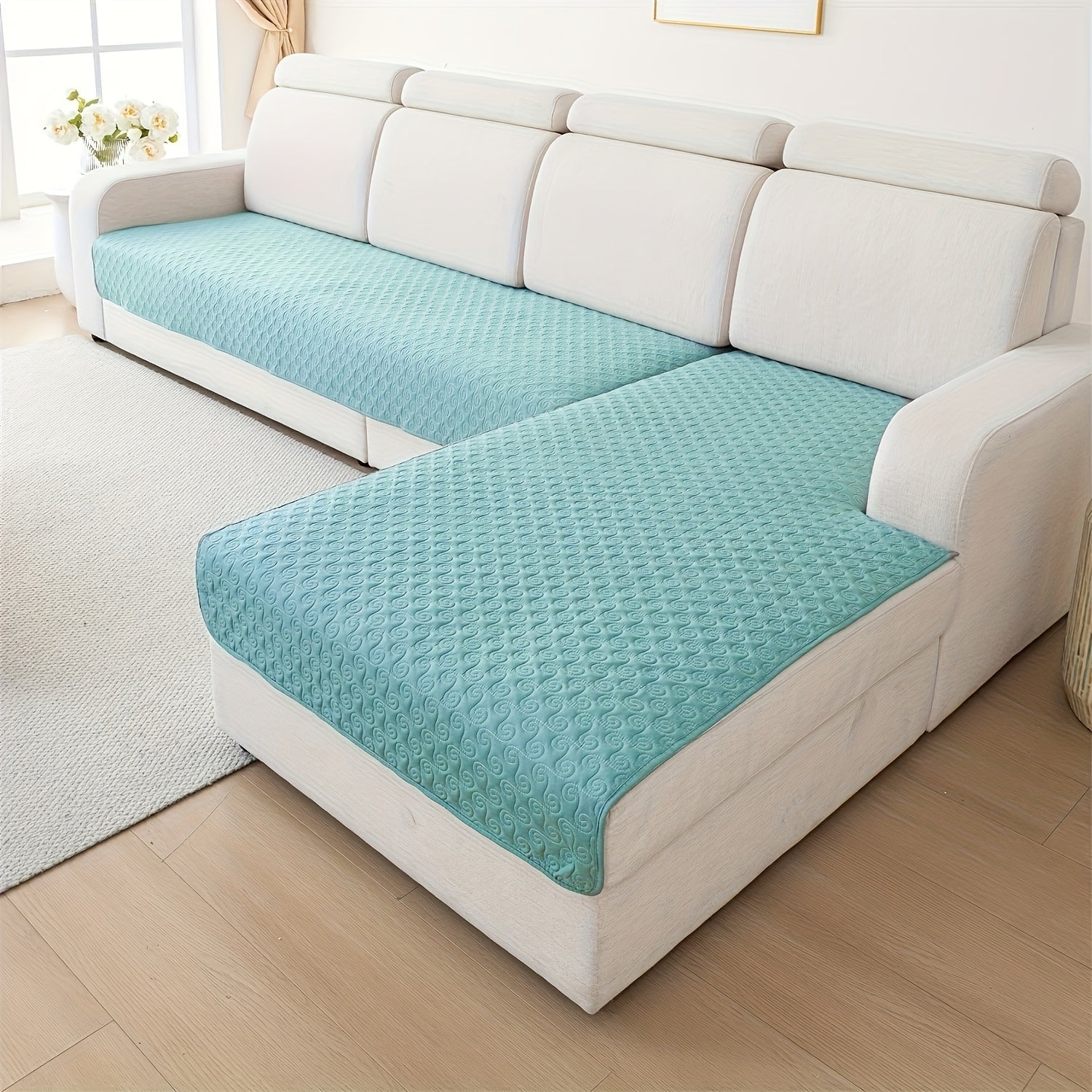 Набор из 2 современных геометрических стеганых чехлов для диванов от одного до четырех мест, противоскользящий и дружелюбный к домашним животным полиэстер, машинная стирка с круговыми строчками.