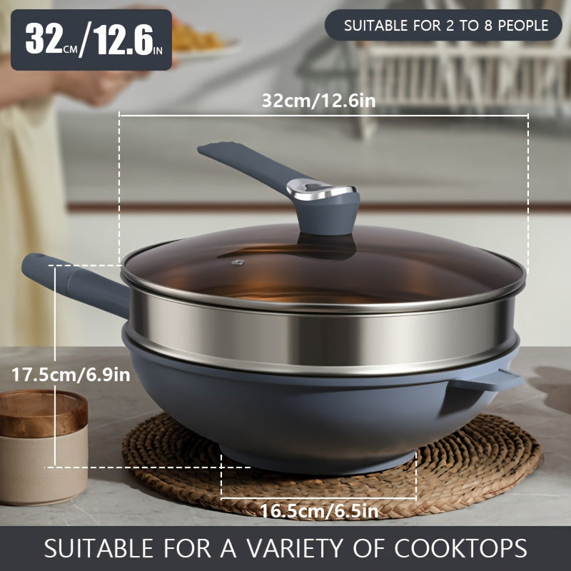 Набор из 2 или 4 антипригарных воков с крышками, включает пароварку и лопатку. Универсальная сковорода для дома, подходящая для газовой плиты или индукционной плиты. Имеет круглое и плоское дно для жарки. Универсально совместима.