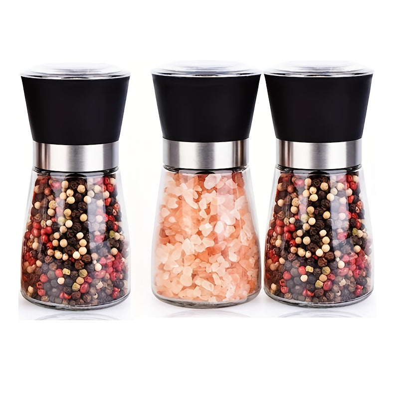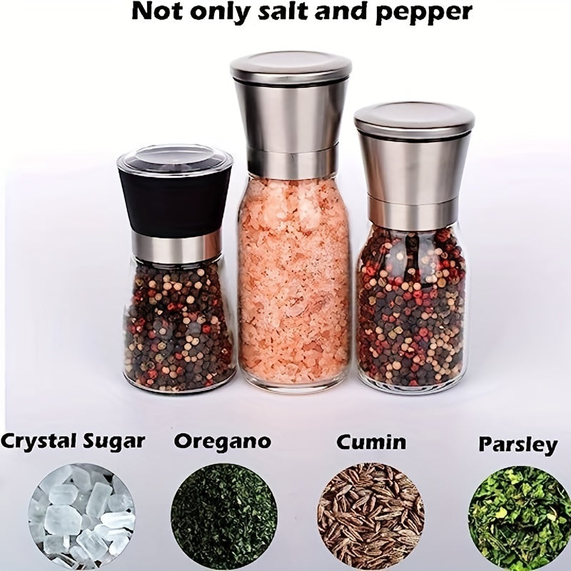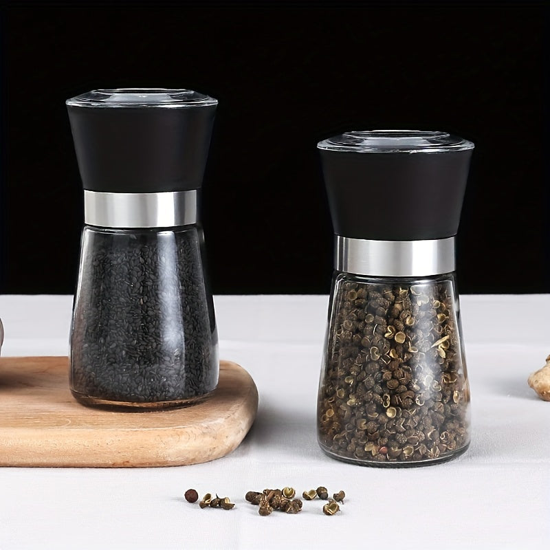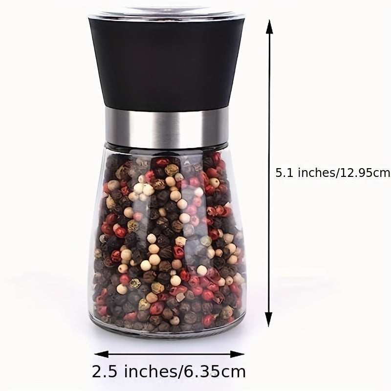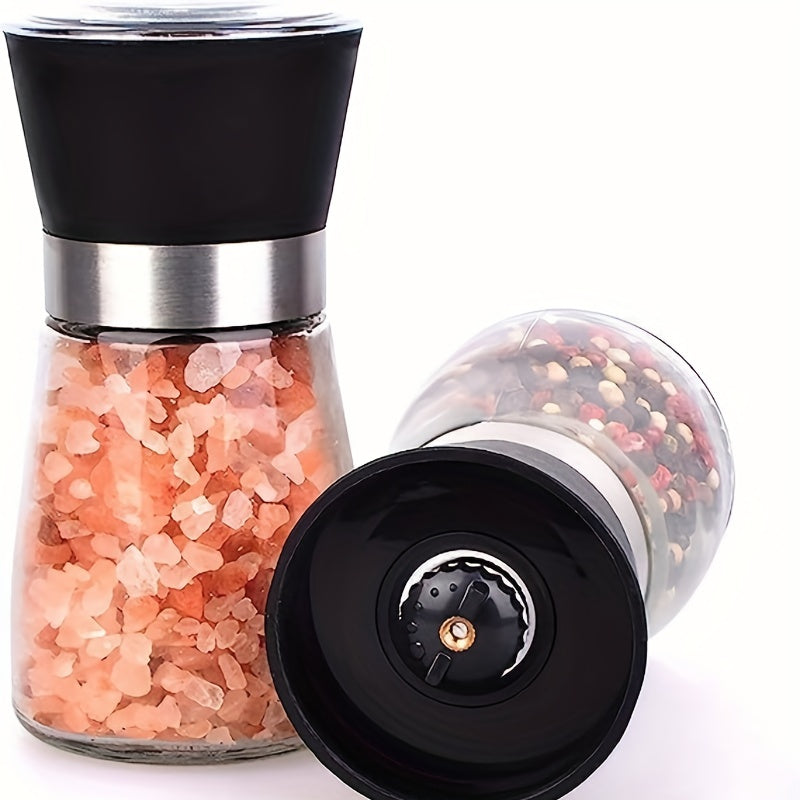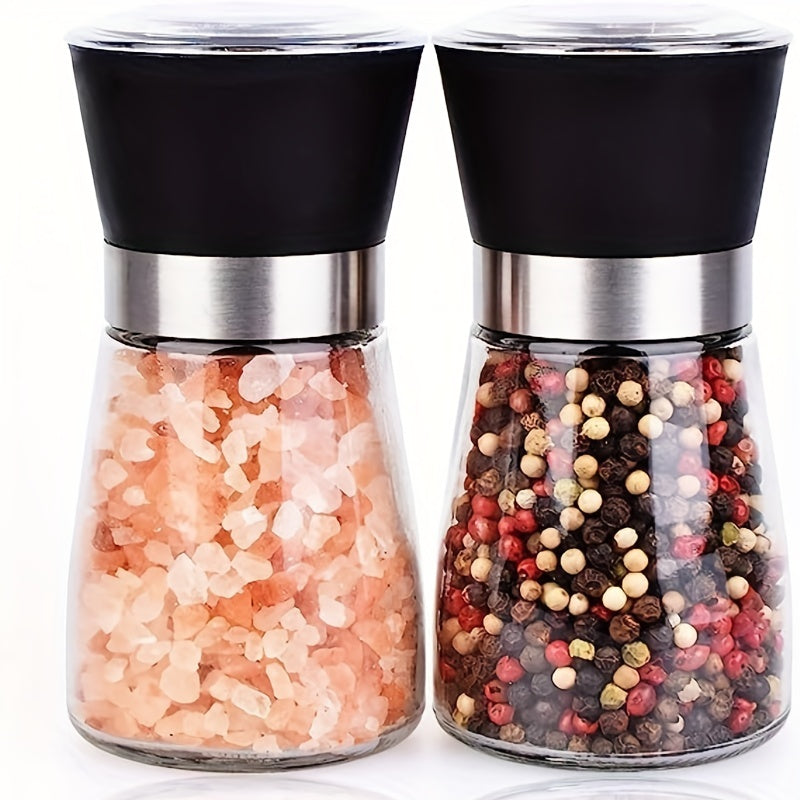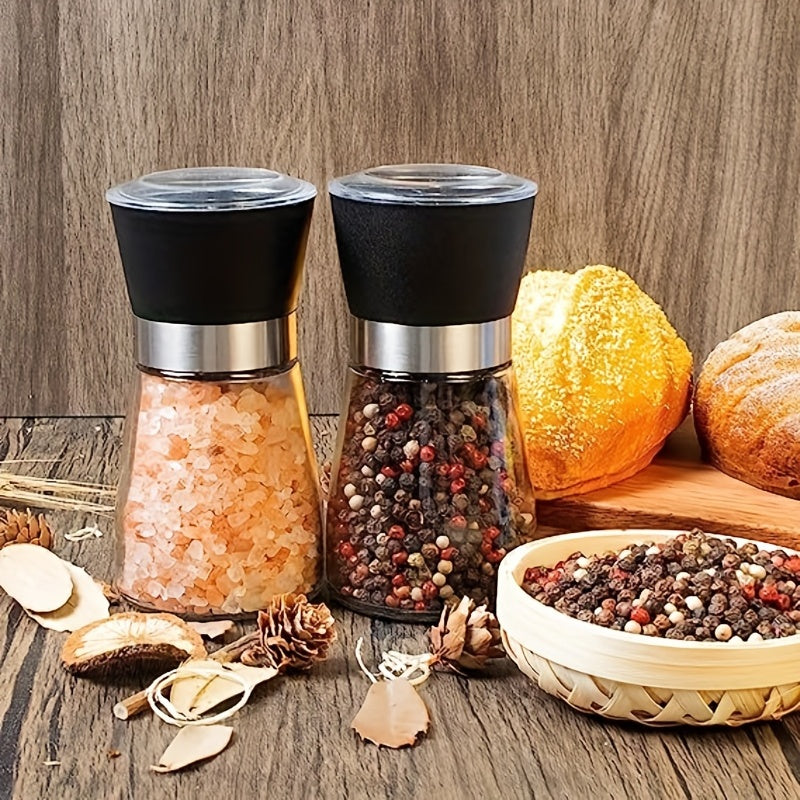 Набор из 2 многоразовых стеклянных мельниц для перца и морской соли - ручные измельчители специй для барбекю, пикников, кемпинга, кухонных гаджетов и школьных принадлежностей, кухонные аксессуары