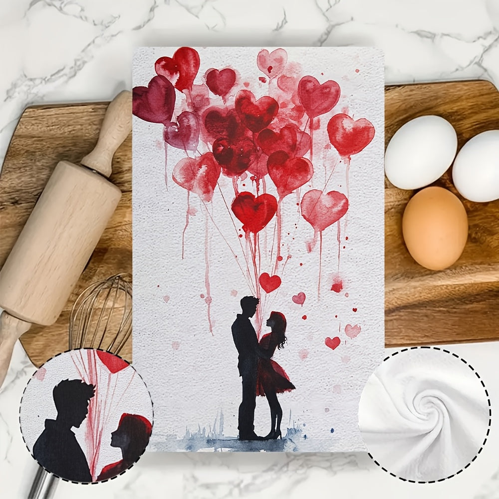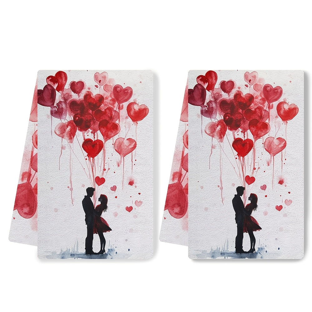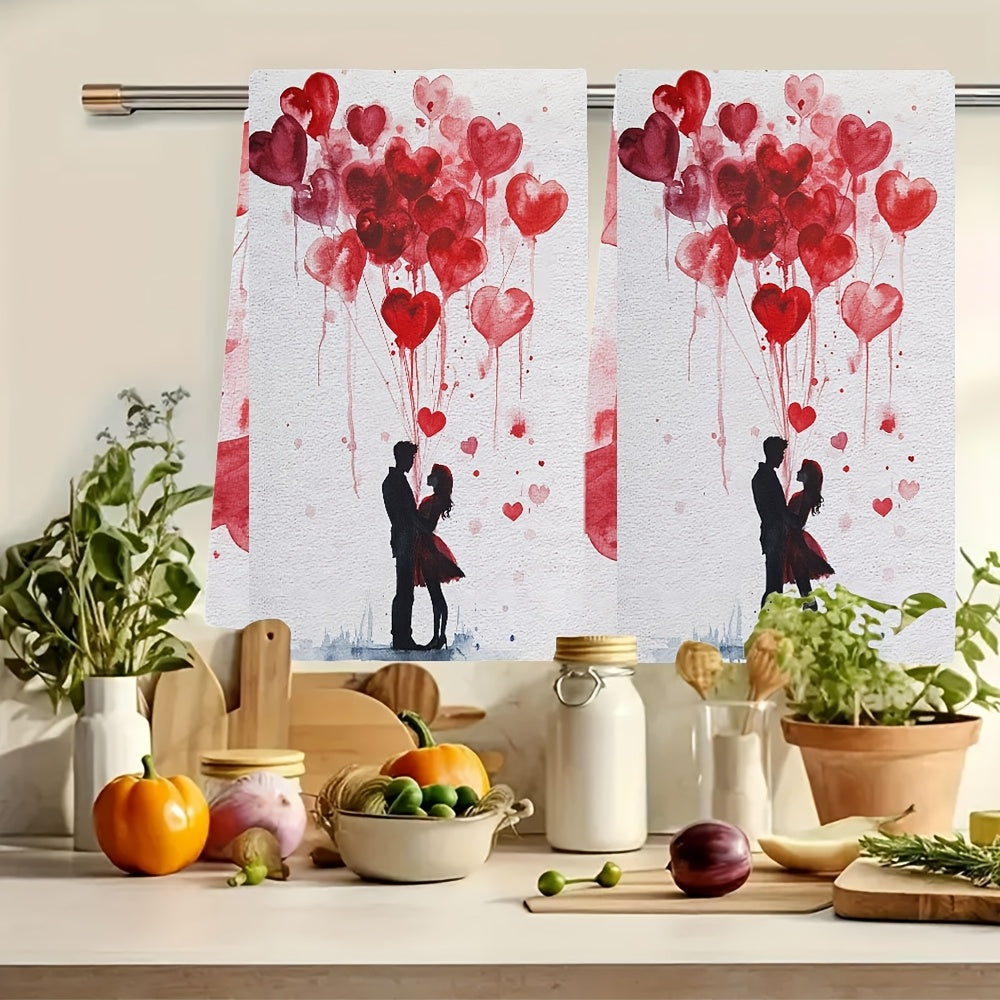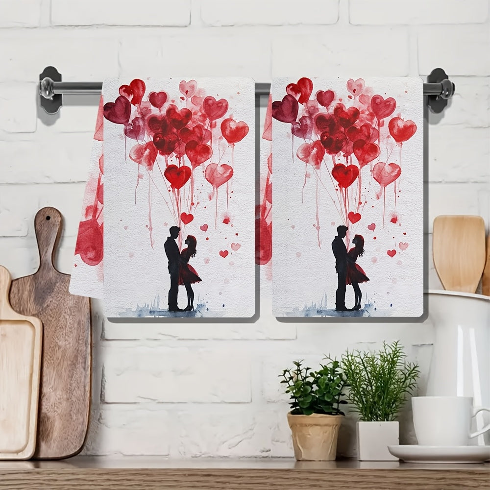 Набор из 2 романтических кухонных полотенец ко Дню святого Валентина 40x60см, мягкие, впитывающие, с сердечком и воздушным шаром