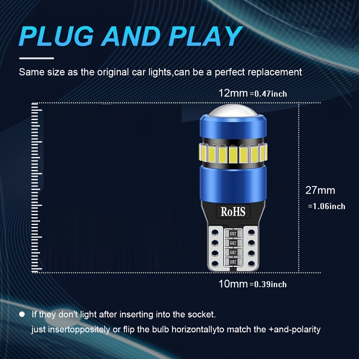 Набор из 2 светодиодных ламп T10 12V для автомобилей, внутреннего освещения и чтения