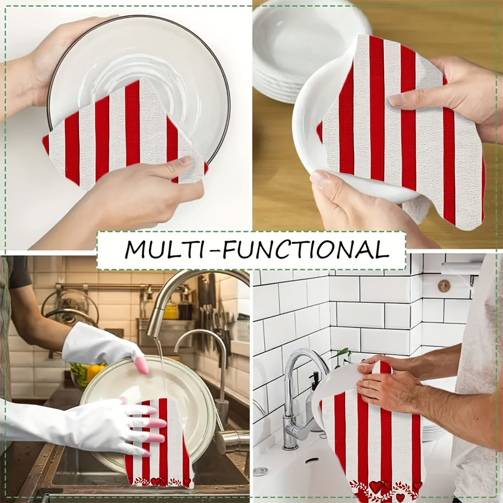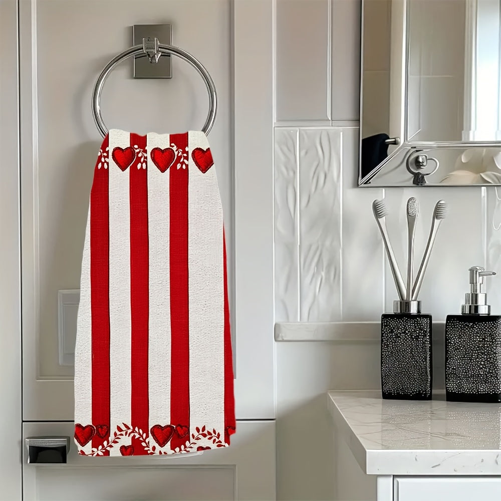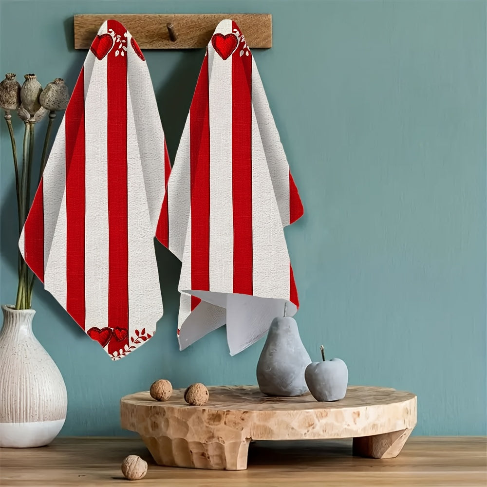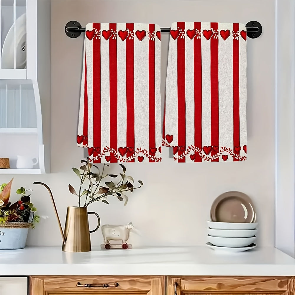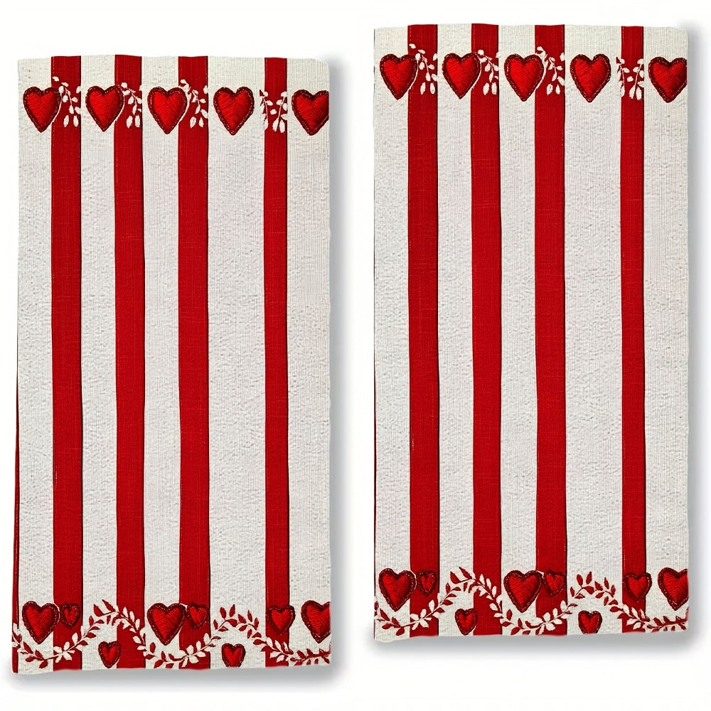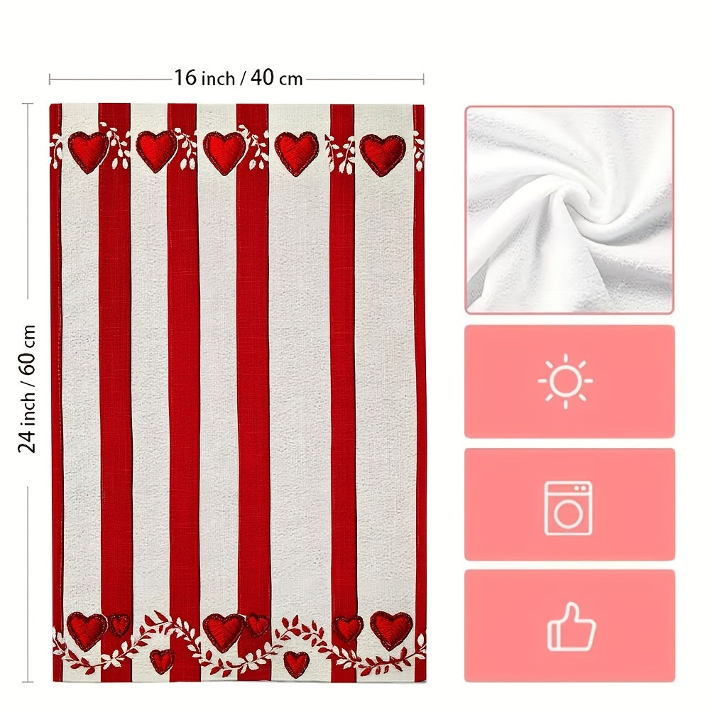 Набор из 2 ультрамягких кухонных полотенец в красно-белую полоску с вышитыми сердцами, изготовленных из высокоабсорбирующего полиэстера - можно стирать в машине, размером 40,64x60,96 см. Идеально подходит для праздничного декора и мытья посуды.