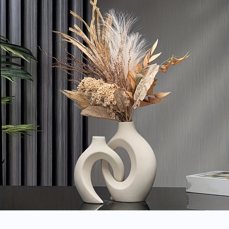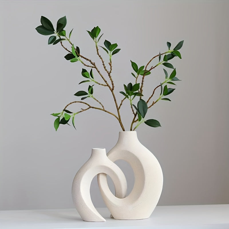 Набор из 2 белых керамических ваз в скандинавском бохо-стиле для элегантного домашнего декора, подходящий для различных комнат и случаев.