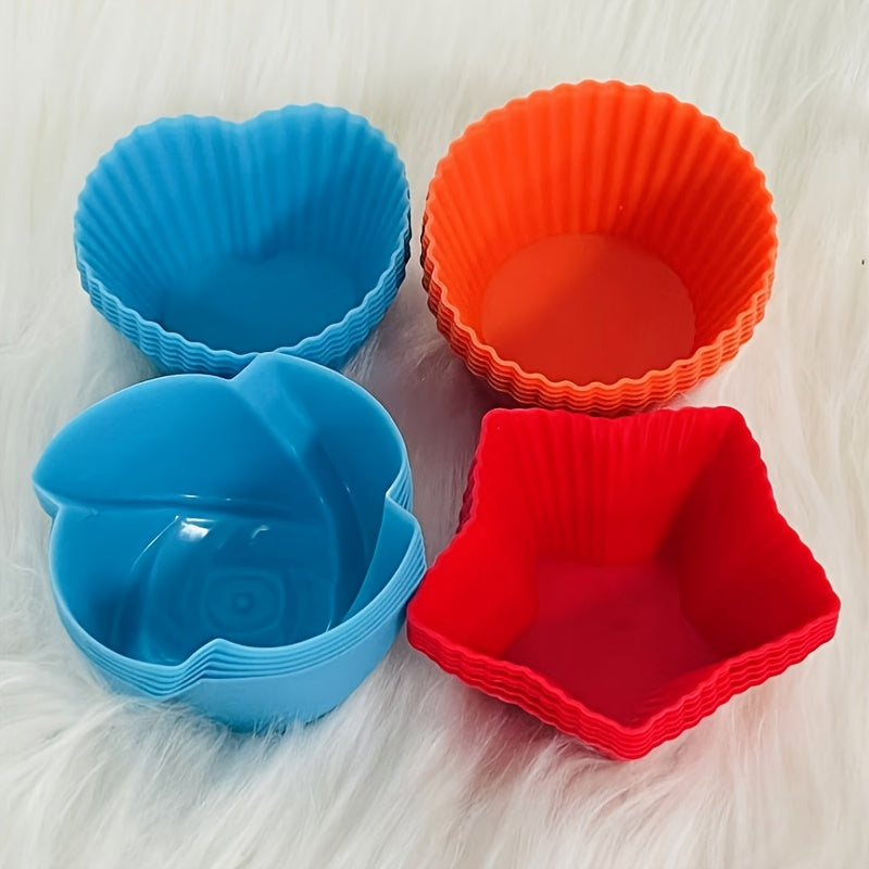 Набор из 24 многоразовых силиконовых форм для кексов, ассорти форм, антипригарные формы для выпечки