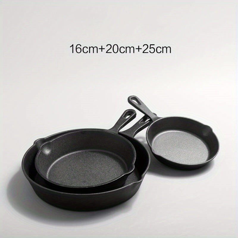 Набор из 3 чугунных сковородок - предварительно приправленные, с носиками для слива и вспомогательными ручками - подходят как для внутренней, так и для наружной готовки