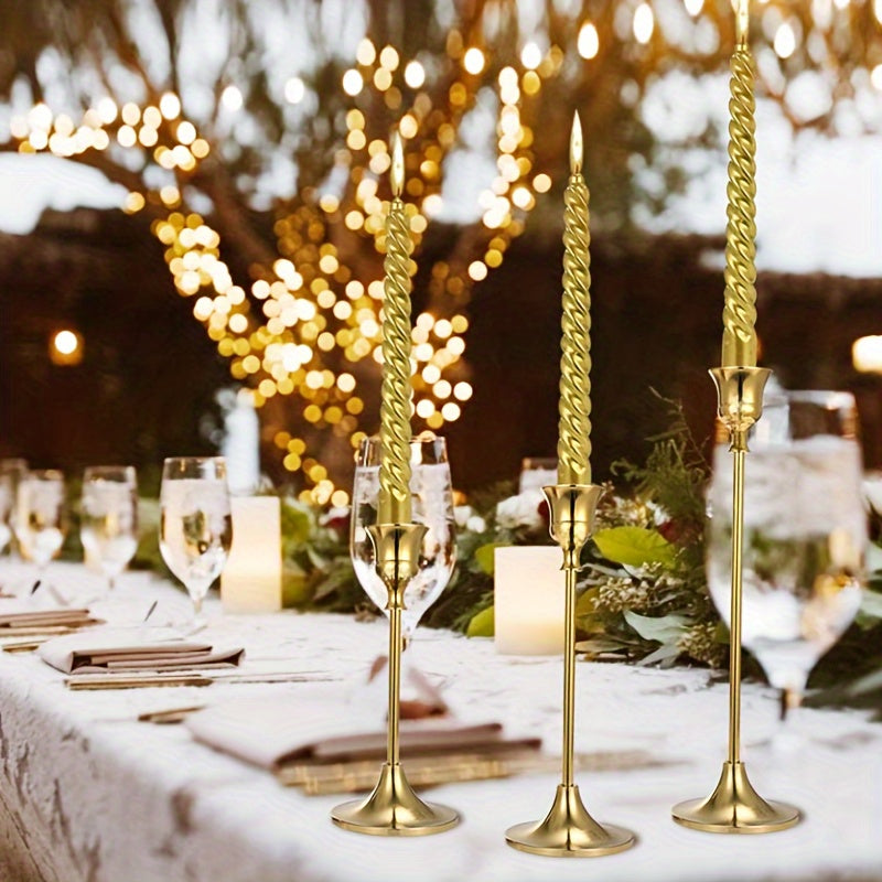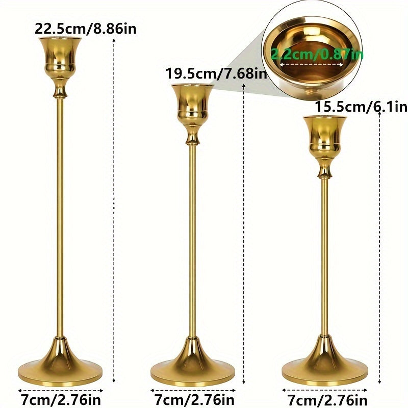 Набор из 3 элегантных металлических подсвечников, идеально подходящих для особых случаев и домашнего декора. Отлично подходит для вечеринок и мероприятий. Свечи не включены.
