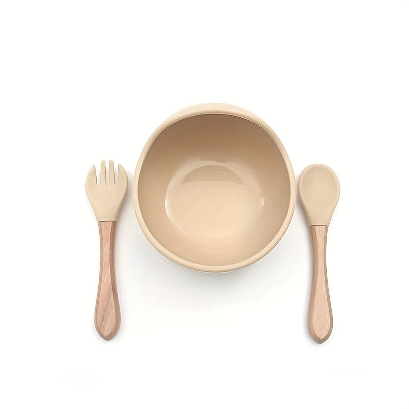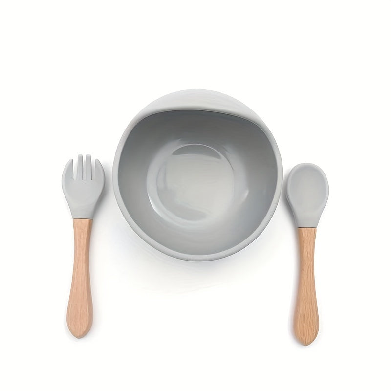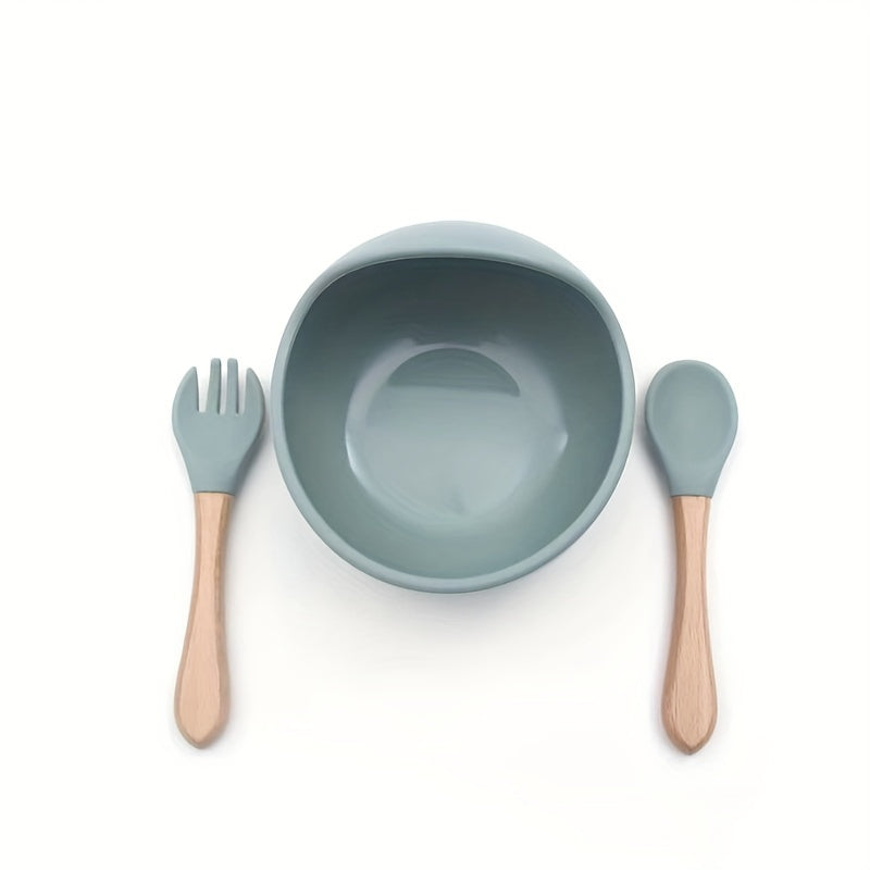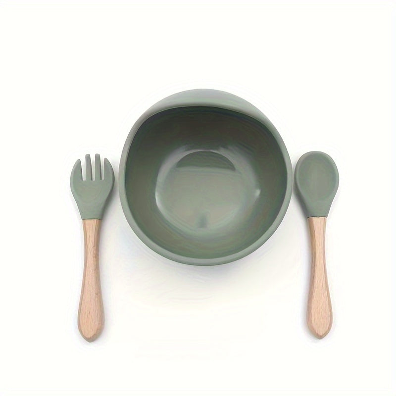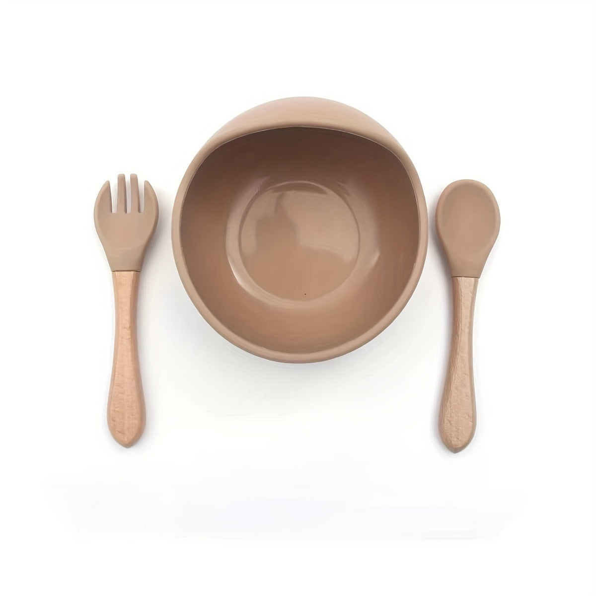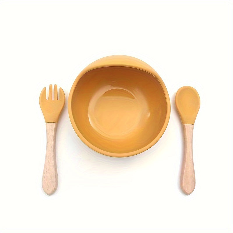 Набор из 3-х силиконовых вакуумных мисок пищевого качества с деревянной ложкой и вилкой - портативная и нескользящая посуда, идеально подходящая в качестве подарков на Хэллоуин и День благодарения.
