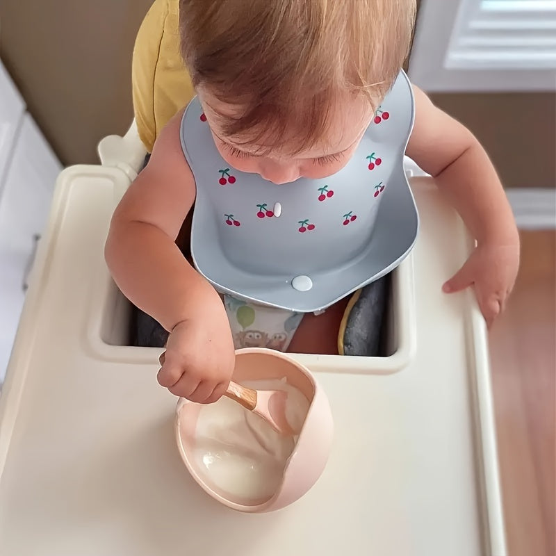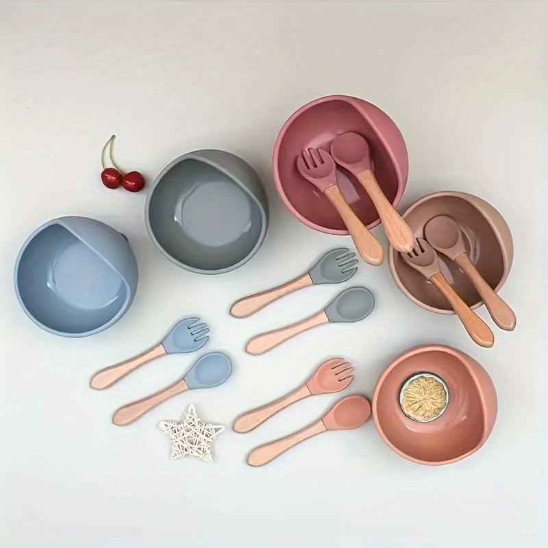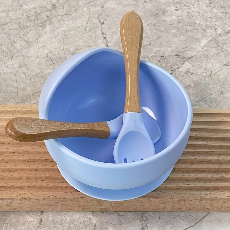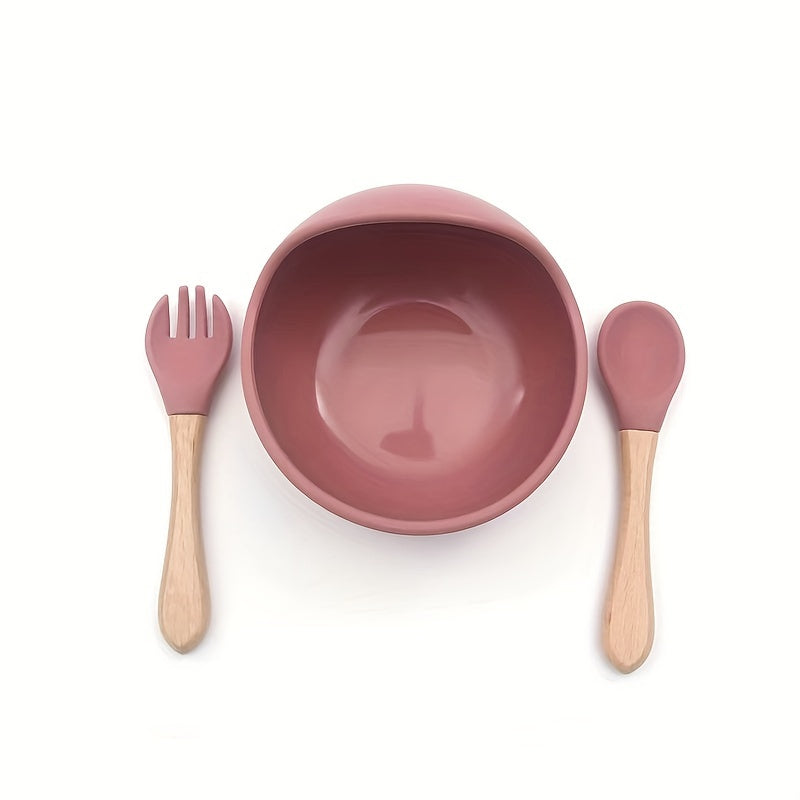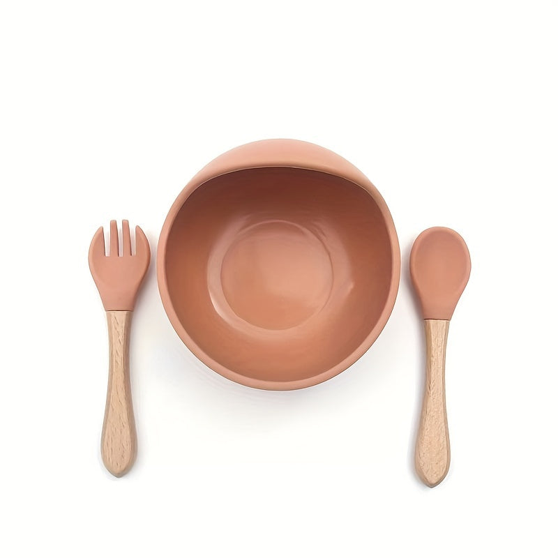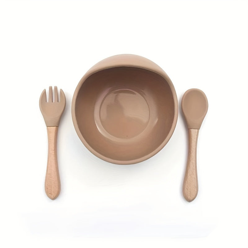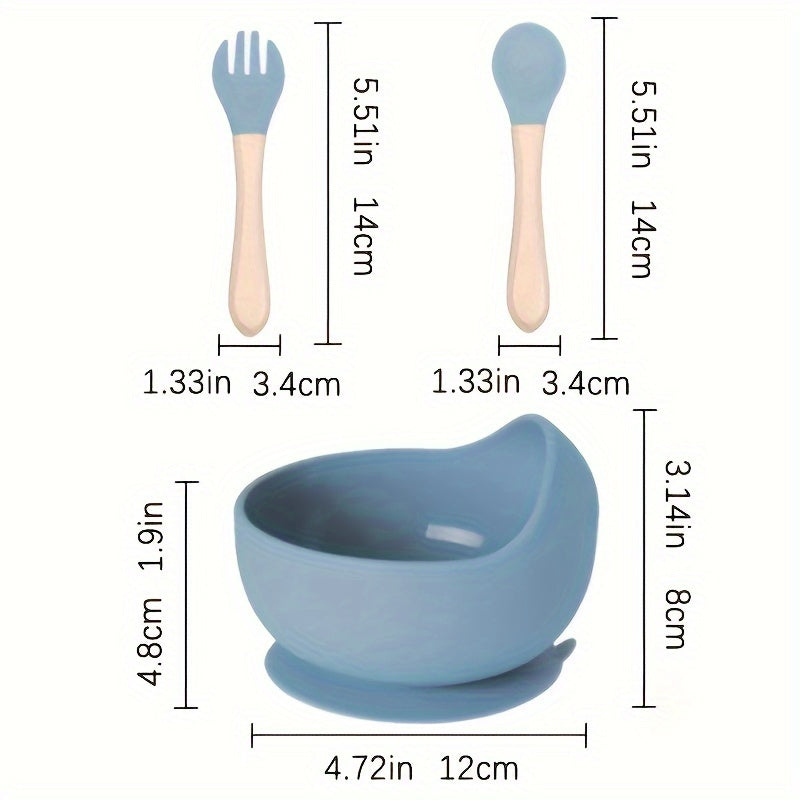 Набор из 3-х силиконовых вакуумных мисок пищевого качества с деревянной ложкой и вилкой - портативная и нескользящая посуда, идеально подходящая в качестве подарков на Хэллоуин и День благодарения.