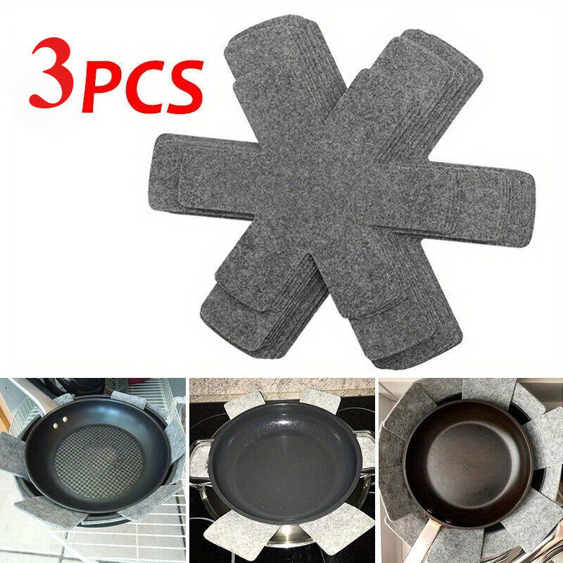 Набор из 3-х серых многослойных фетровых защитителей для кастрюль и сковородок - Сохраняйте свою посуду без царапин и организованной с помощью этих антипригарных разделителей для эффективного хранения на кухне.