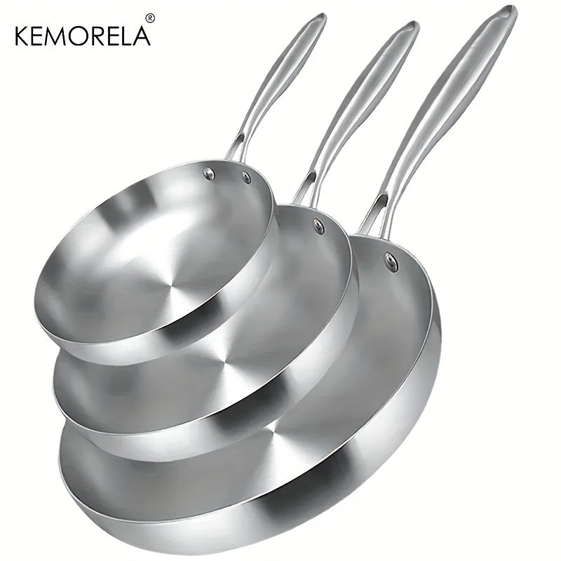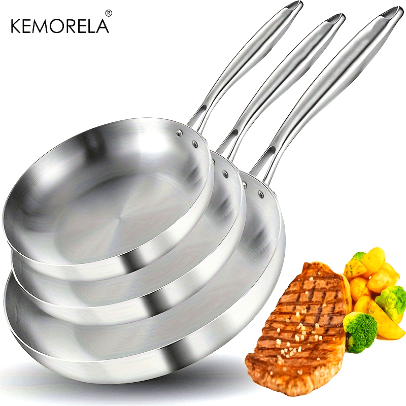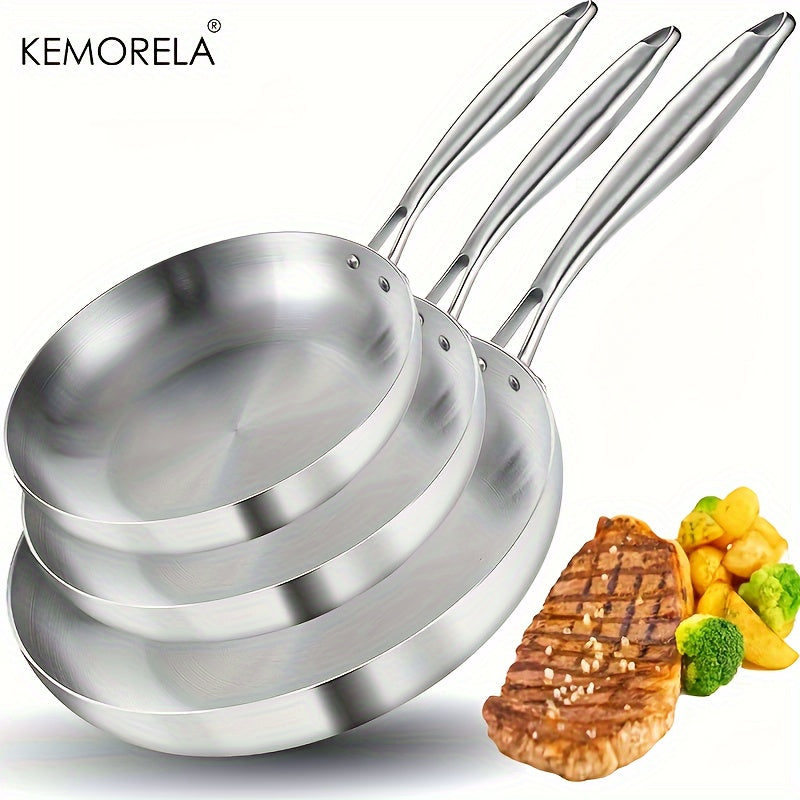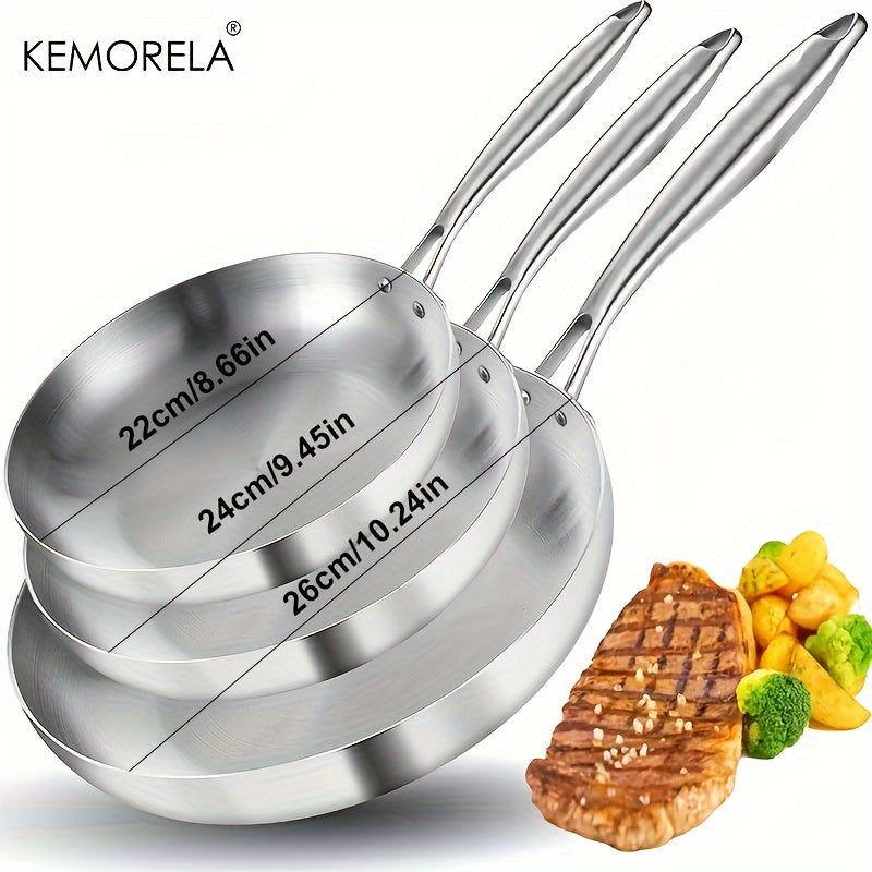 Набор из 3 сковород из нержавеющей стали для газовых и индукционных плит, посуда для приготовления пищи, омлетницы