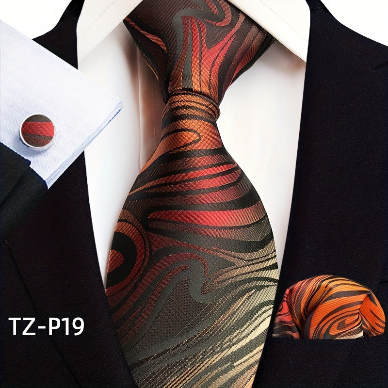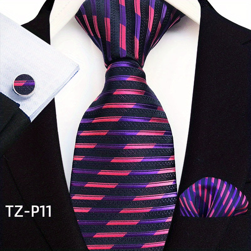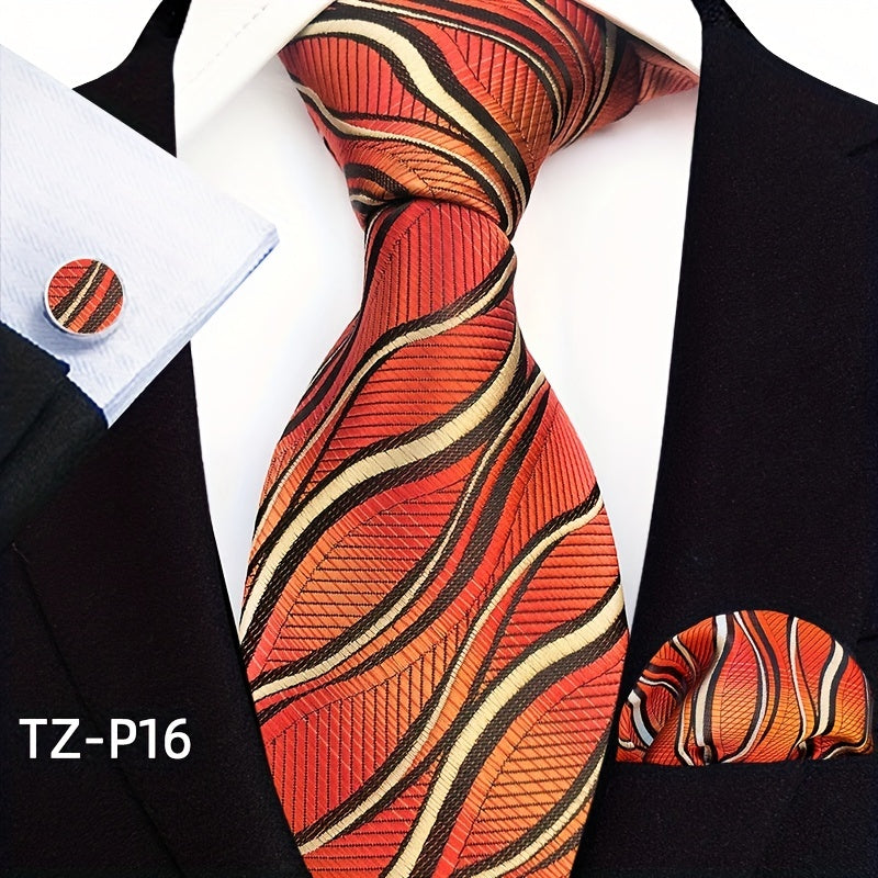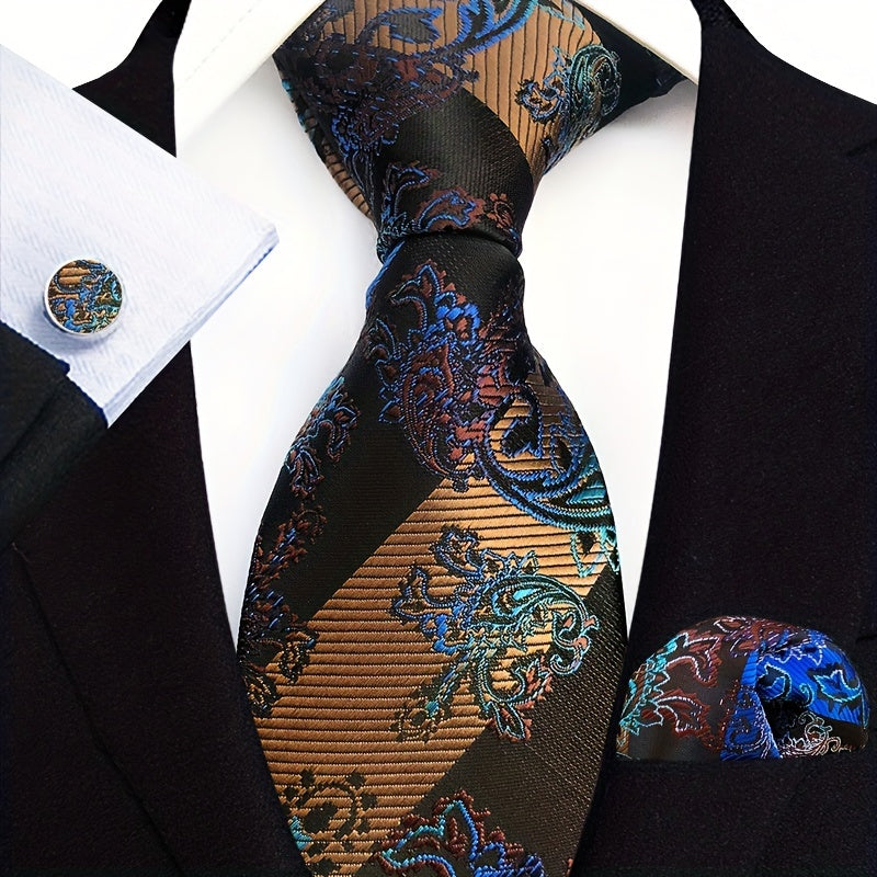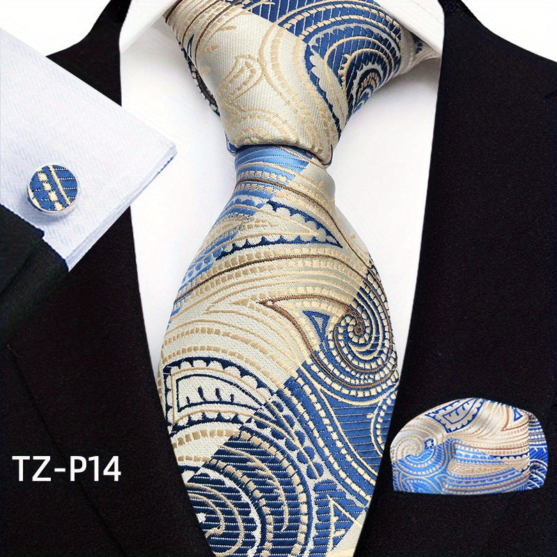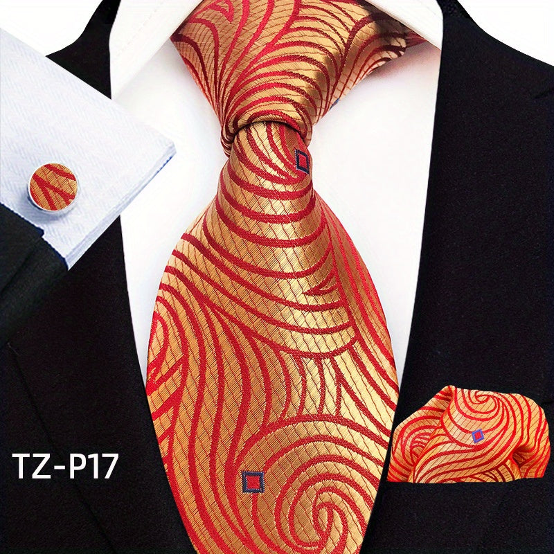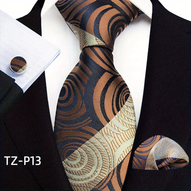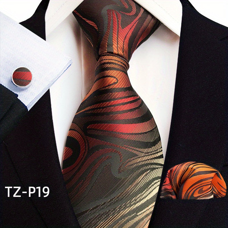 Набор из 3 мужских деловых галстуков с подходящим карманным платком и запонками из жаккардовой ткани