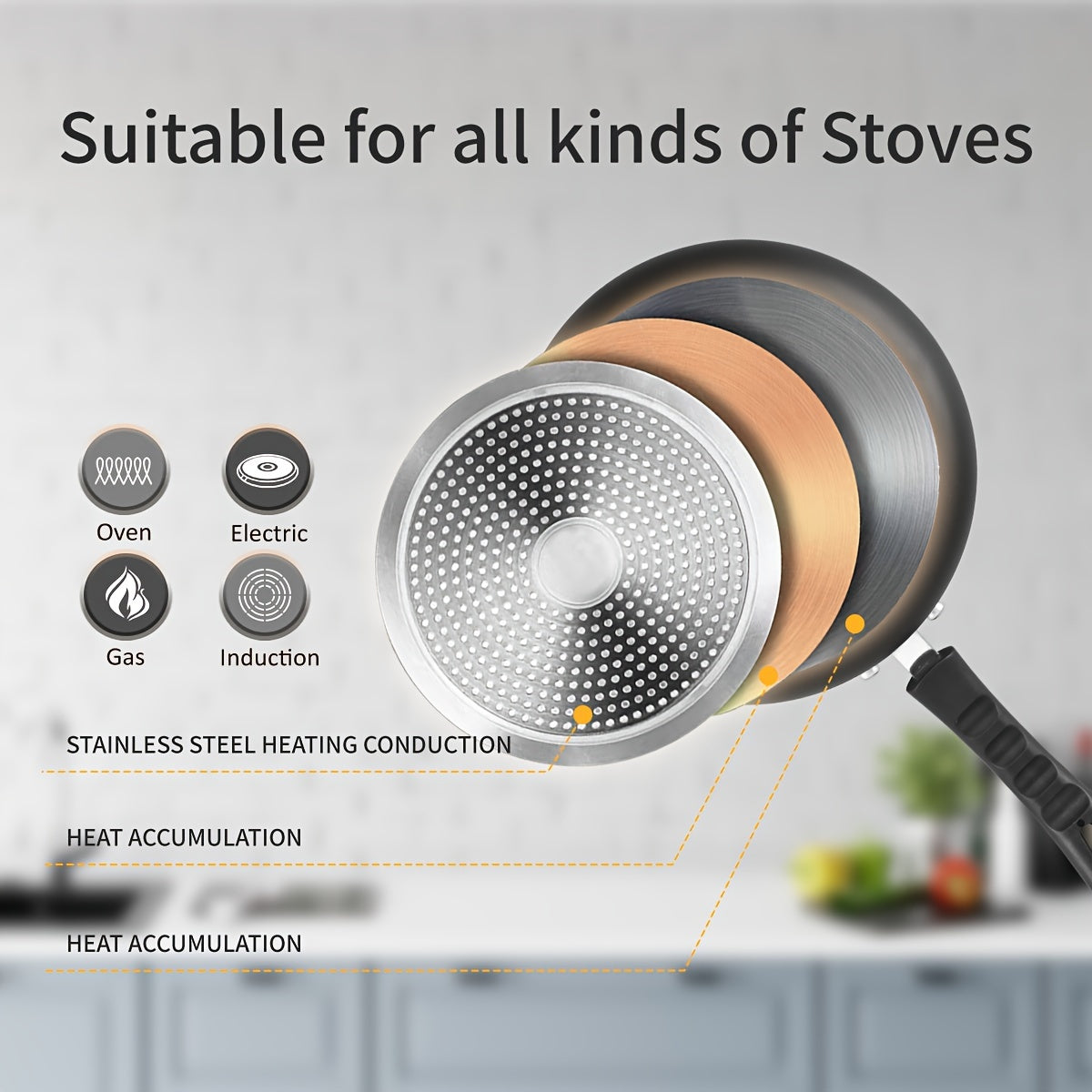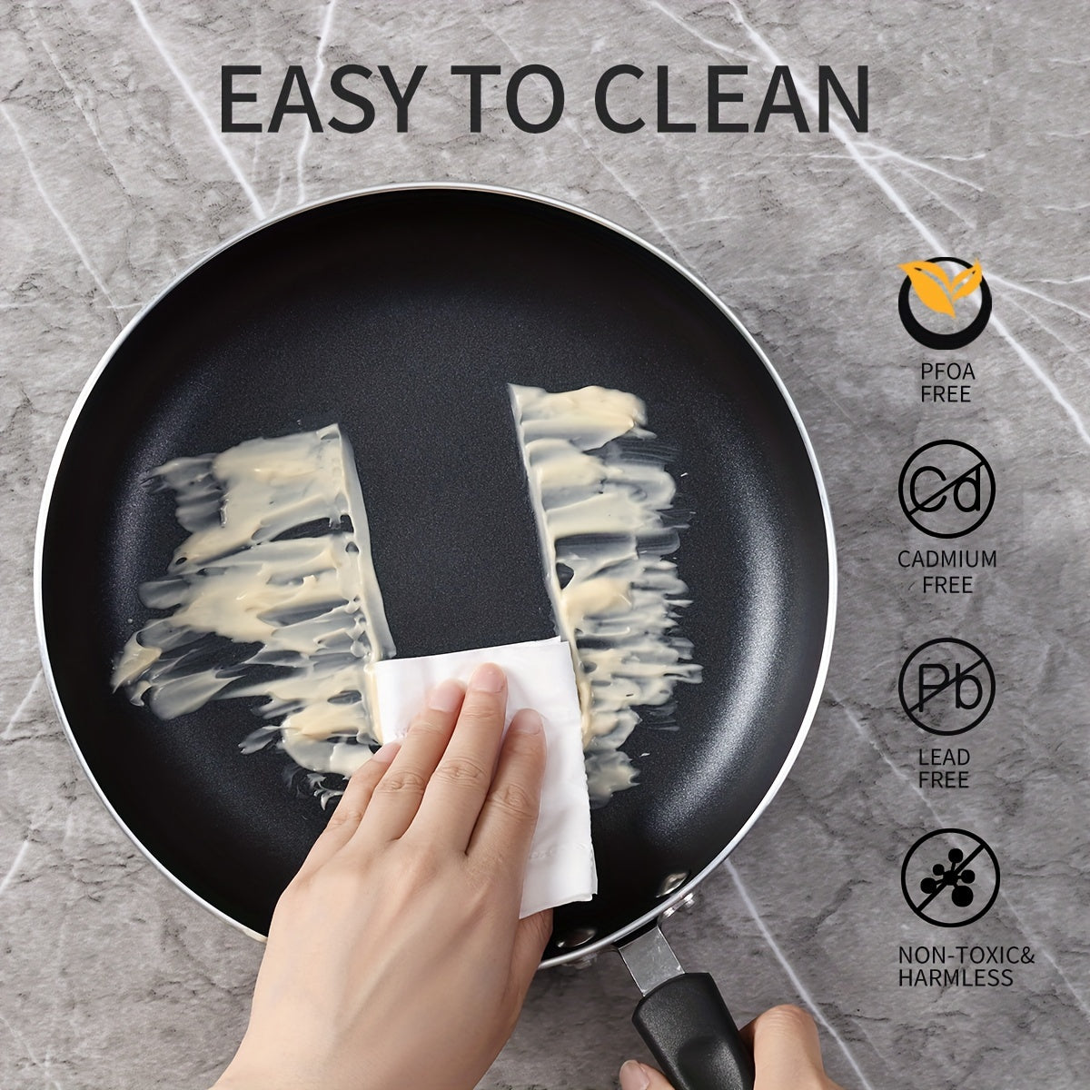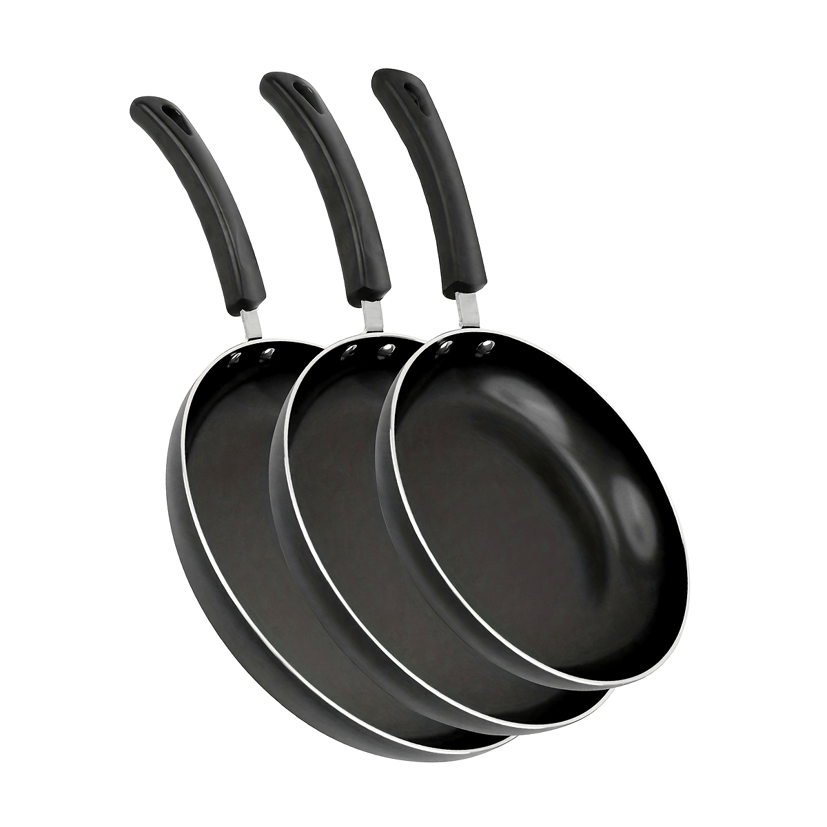 Набор из 3-х антипригарных сковородок с золотой керамической индукционной посудой. Включает сковороды для омлетов диаметром 20,32 см, 24,13 см и 27,94 см. Этот набор кухонных сковородок не содержит PFOA и PFAS.
