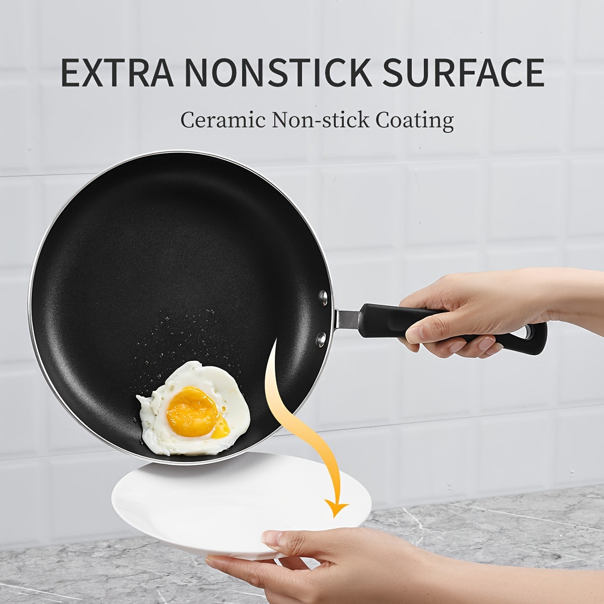 Набор из 3 антипригарных сковородок с черной керамической индукционной посудой, включает сковороды диаметром 20,32 см, 24,13 см и 27,94 см для омлетов и яиц. Набор кухонных сковород, без PFOA и PFAS.