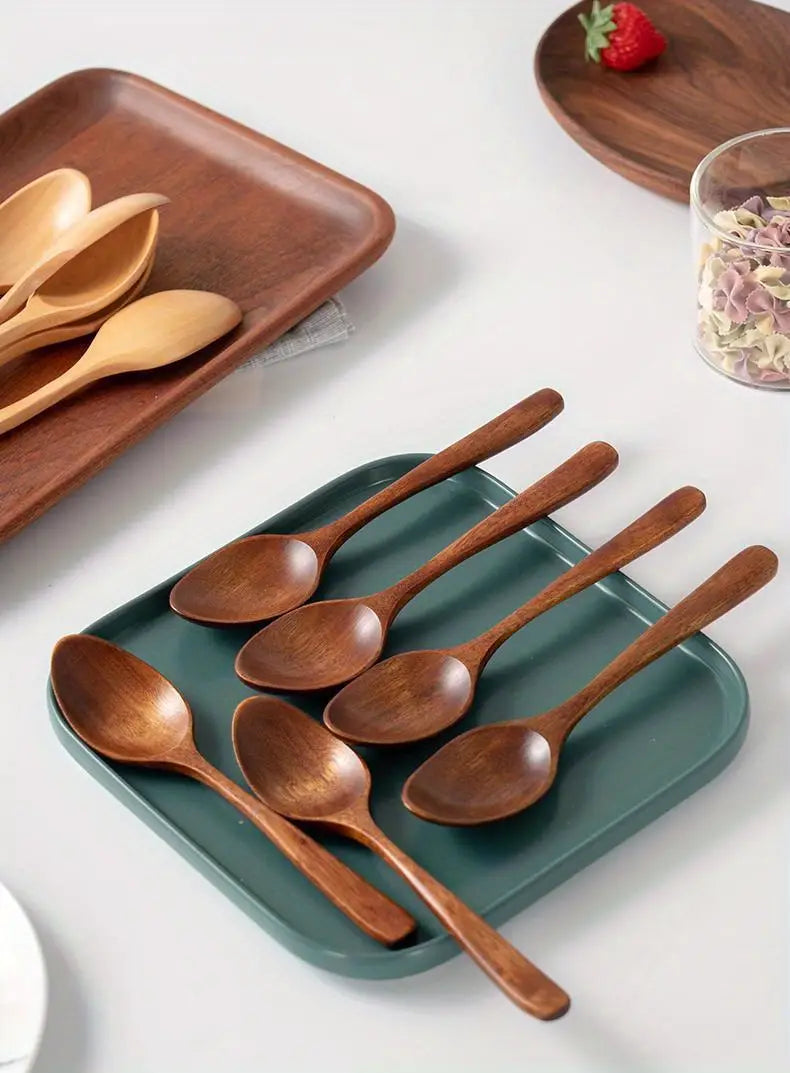 Набор из 3 или 6 маленьких деревянных ложек для еды, длиной 18,49 см, антипригарные для смешивания, помешивания и дегустации. Отлично подходит для столовой посуды.