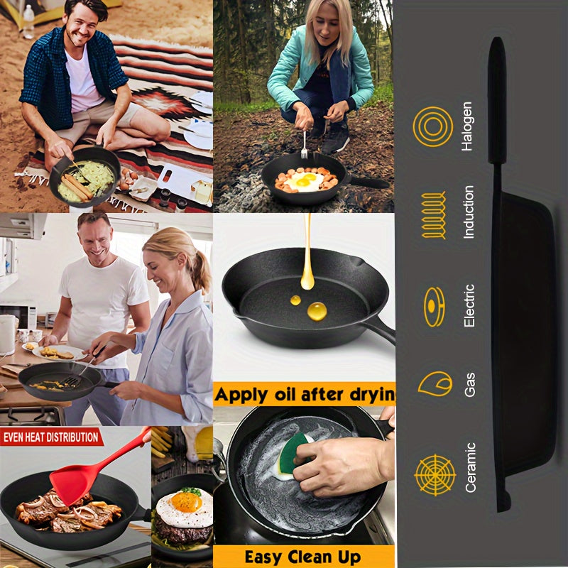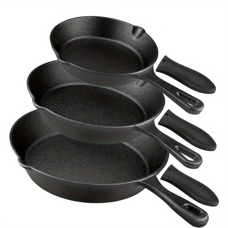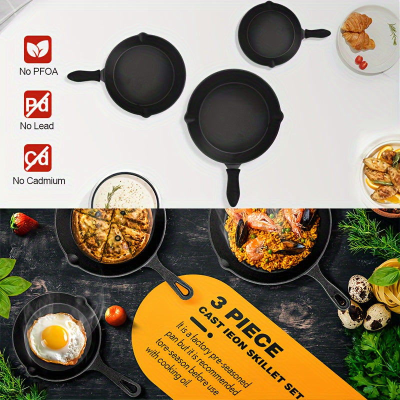 Набор из 3 предварительно закаленных чугунных сковородок - только ручная стирка, прочная посуда с термостойкими ручками для жарки, выпечки, жарки - безопасно для духовки, без PFOA и кадмия - размеры: 15,24 см, 20,32 см, 25,4 см