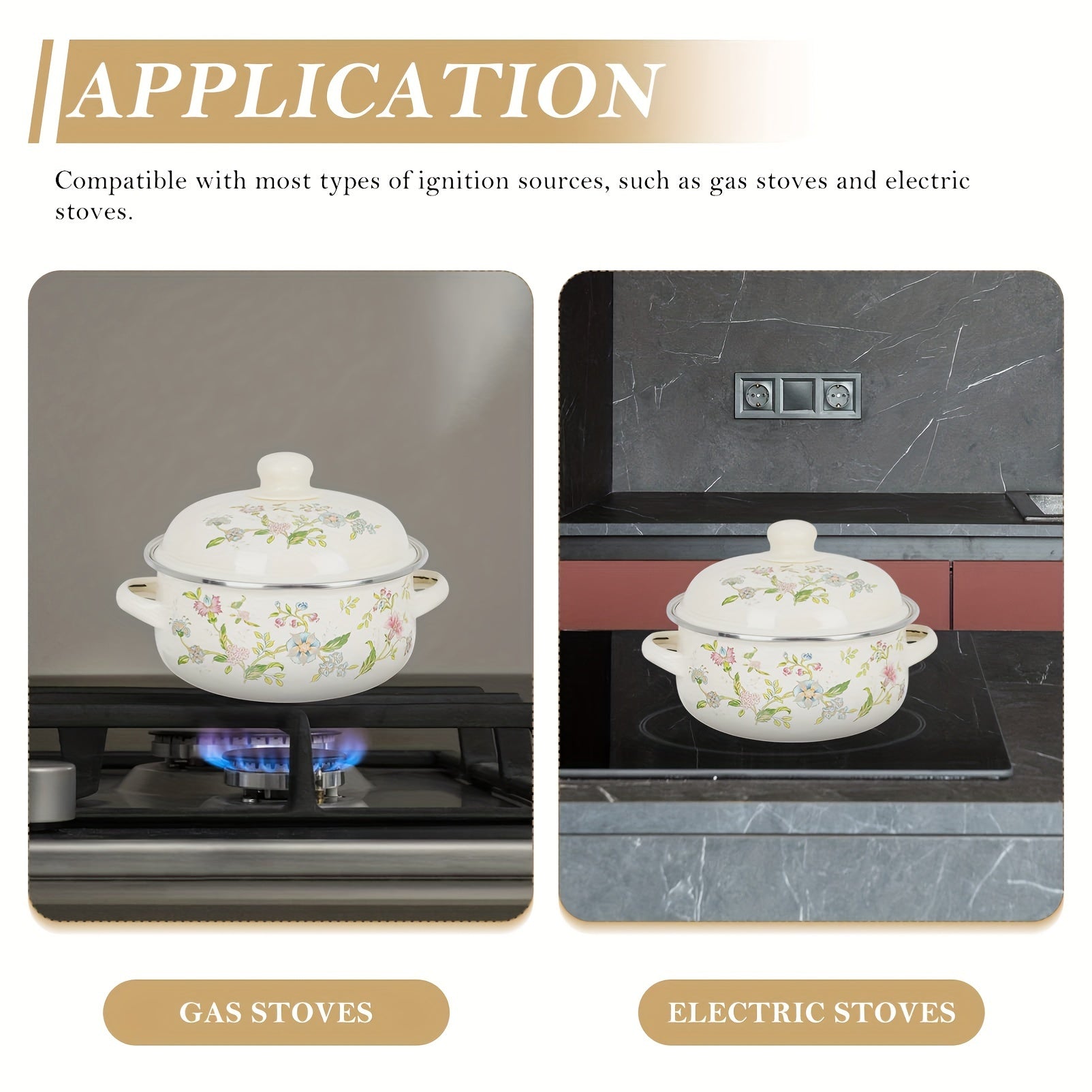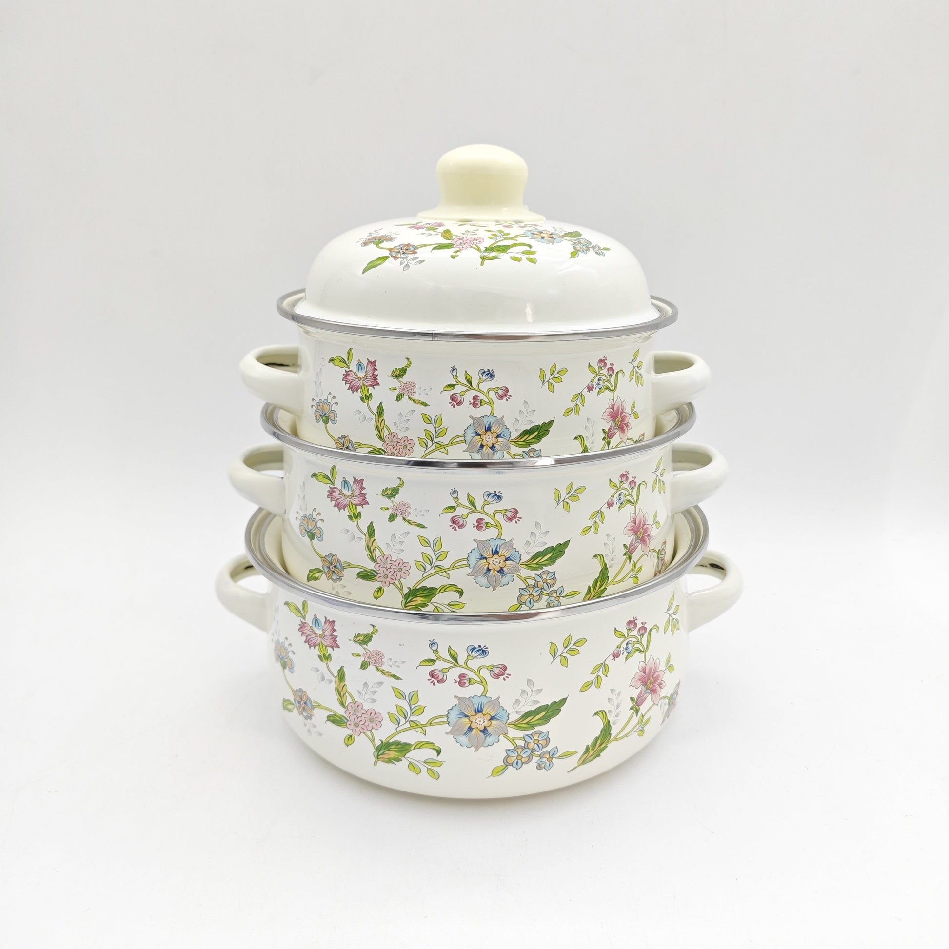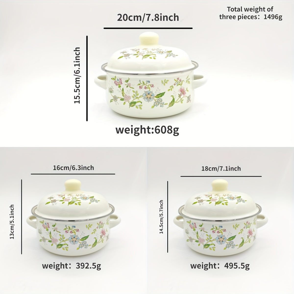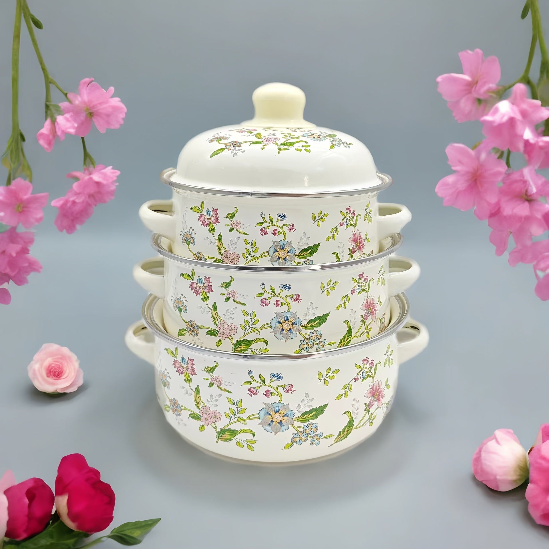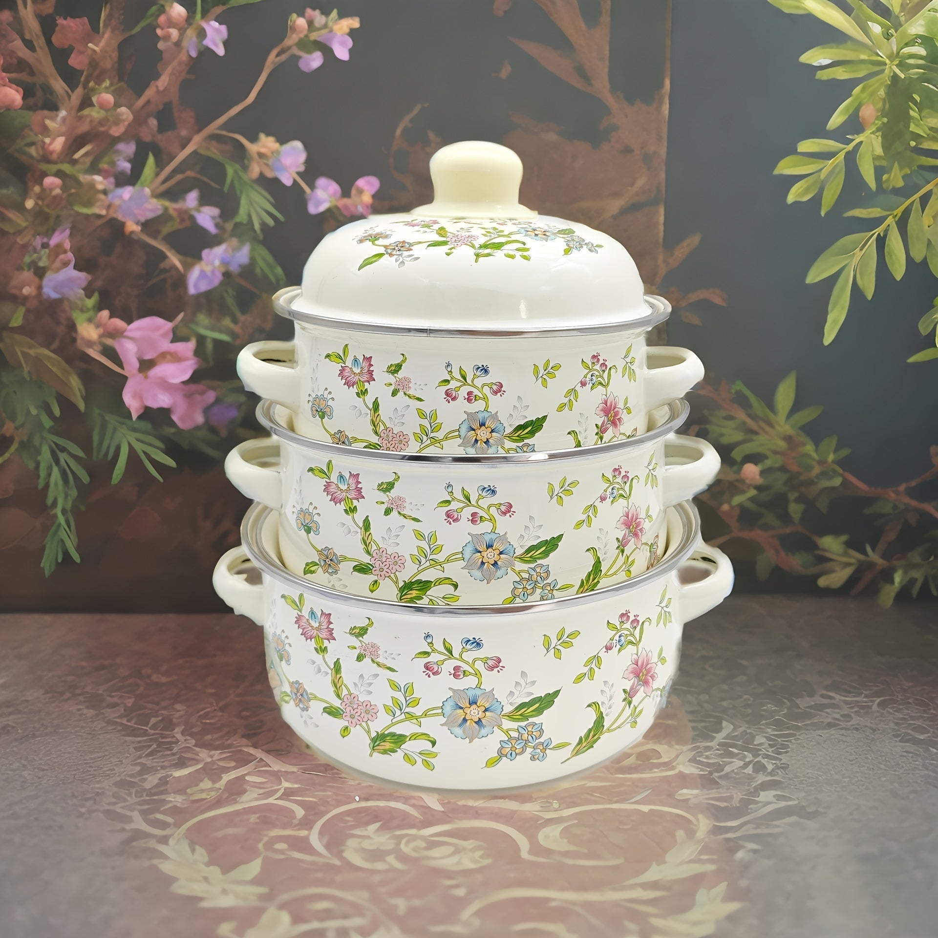 Набор из 3 эмалированных соусников с цветочным дизайном для газовых плит и домашнего использования
