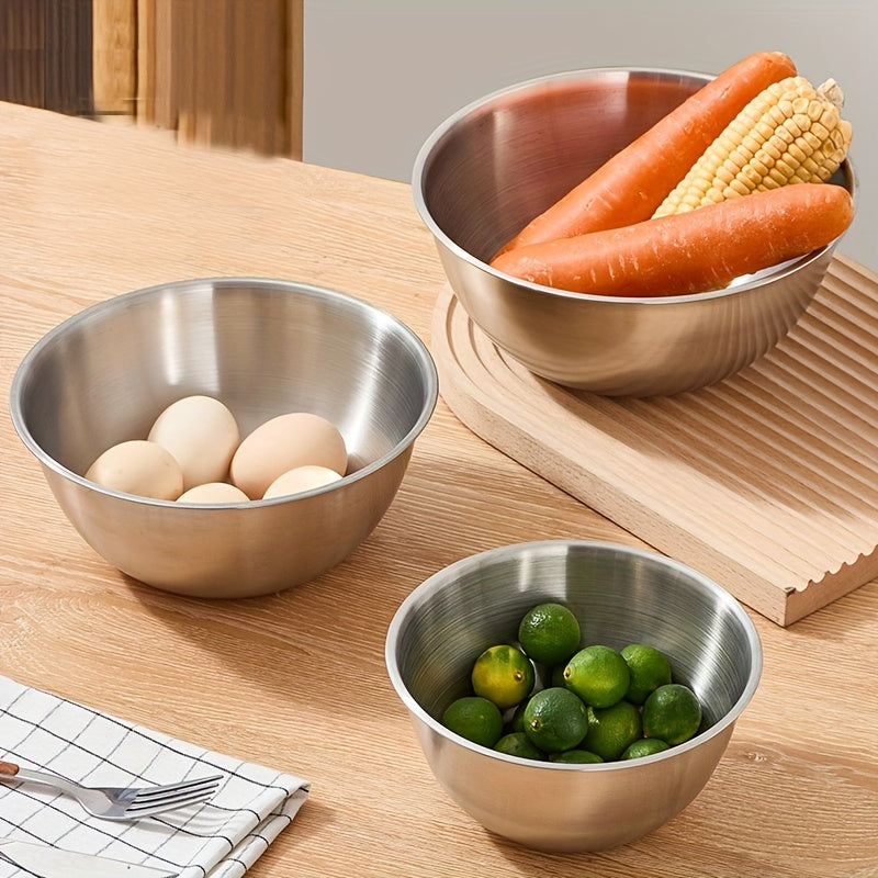 Набор из 3 нержавеющих стальных мисок для смешивания с измерительными метками, идеален для приготовления пищи и выпечки на кухнях и в ресторанах.