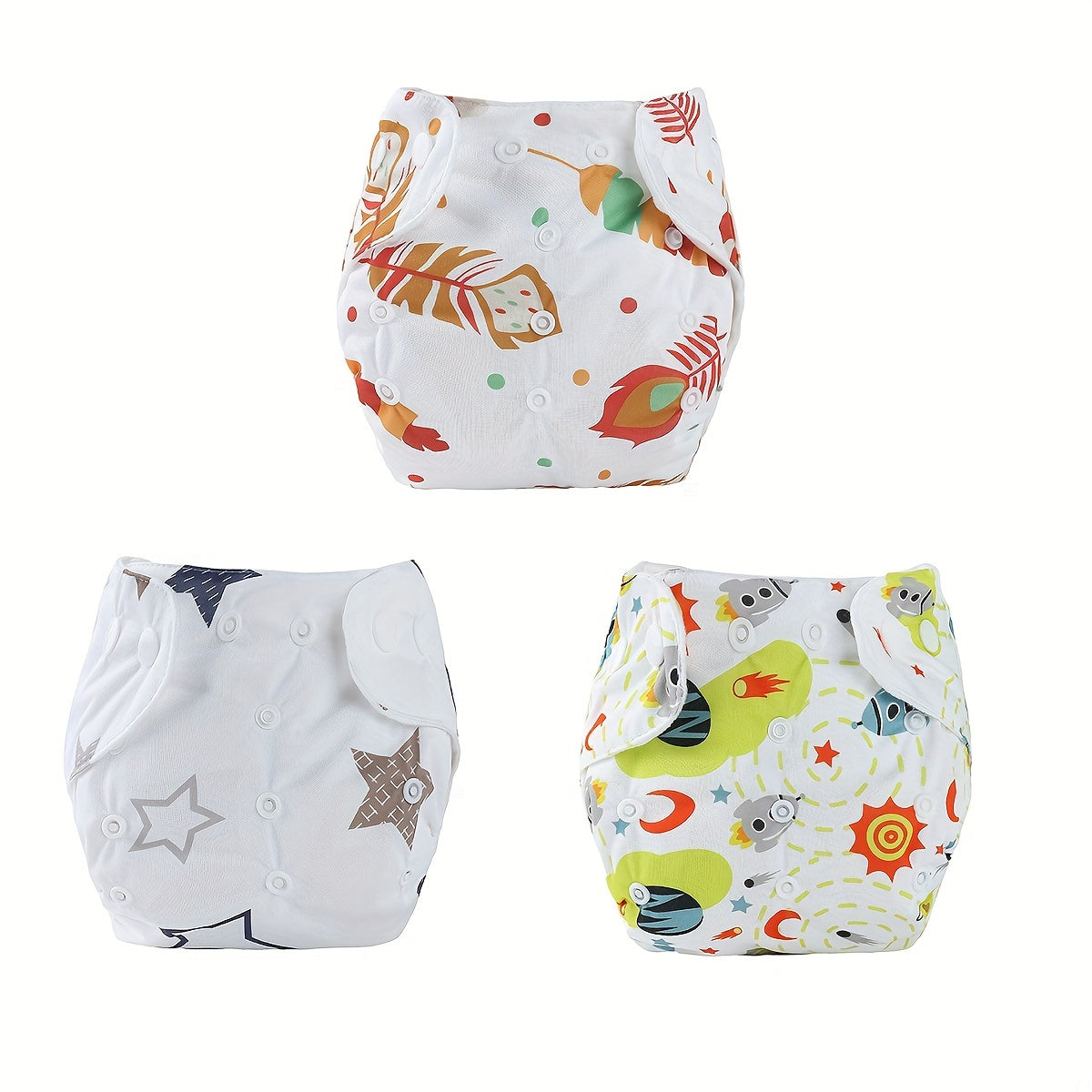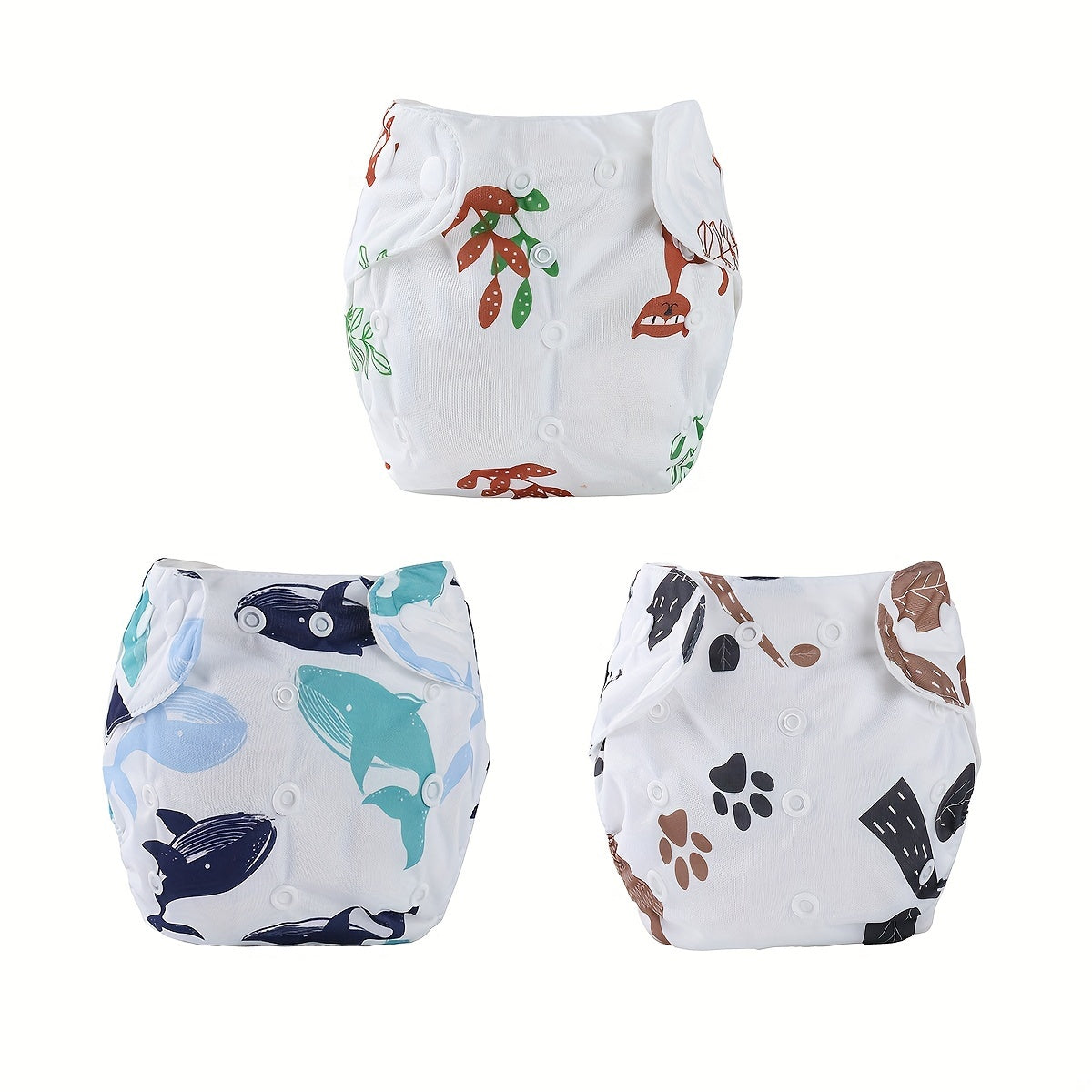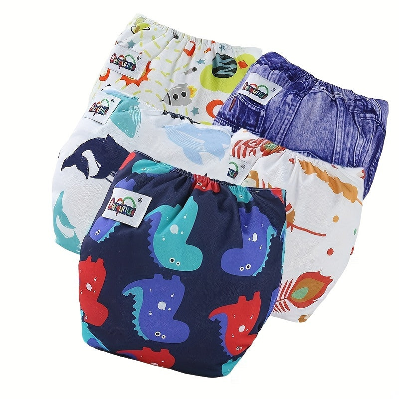 Набор из 3 унисекс тренировочных штанишек для малышей, водонепроницаемые хлопковые подгузники, регулируемая кнопочная застежка для детей от 0 до 3 лет с милыми принтованными дизайнами - стираемые подгузники для малышей.