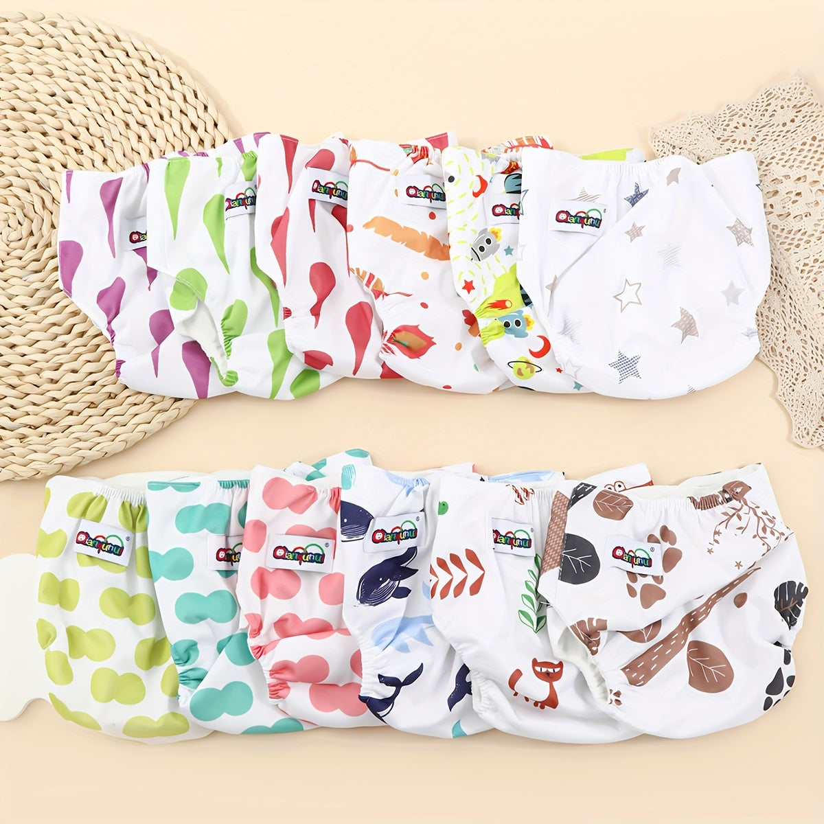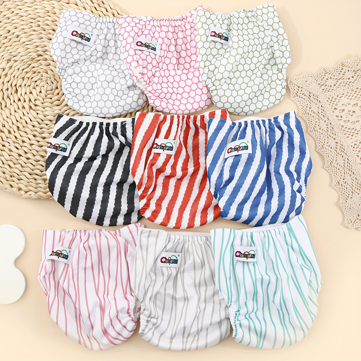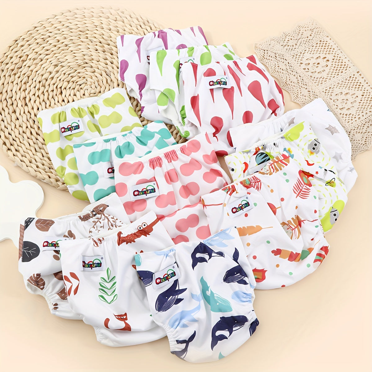 Набор из 3 унисекс тренировочных штанишек для малышей, водонепроницаемые хлопковые подгузники, регулируемая кнопочная застежка для детей от 0 до 3 лет с милыми принтованными дизайнами - стираемые подгузники для малышей.