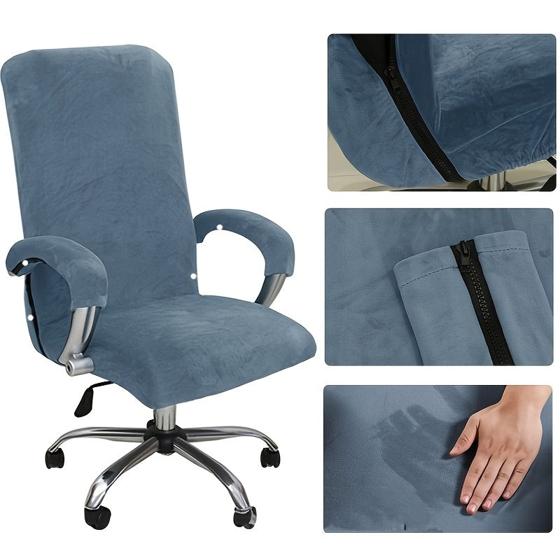 Набор из 3-х чехлов на стулья из бархатного плюша с подлокотниками, однотонные чехлы для офисных стульев. Защищает от пролитий и пятен, подходит для большинства офисных стульев.