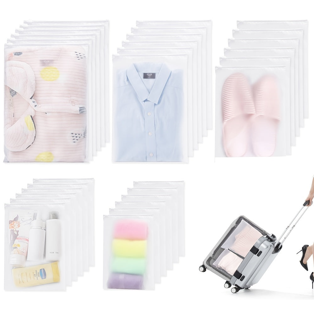 Набор из 30 матовых дорожных сумок для хранения одежды и обуви с застежкой-молнией. Эти высококачественные, удобные и безопасные большие сумки идеально подходят для организации багажа, одежды, обуви и косметики. Многоразовые и экономящие место мешки.