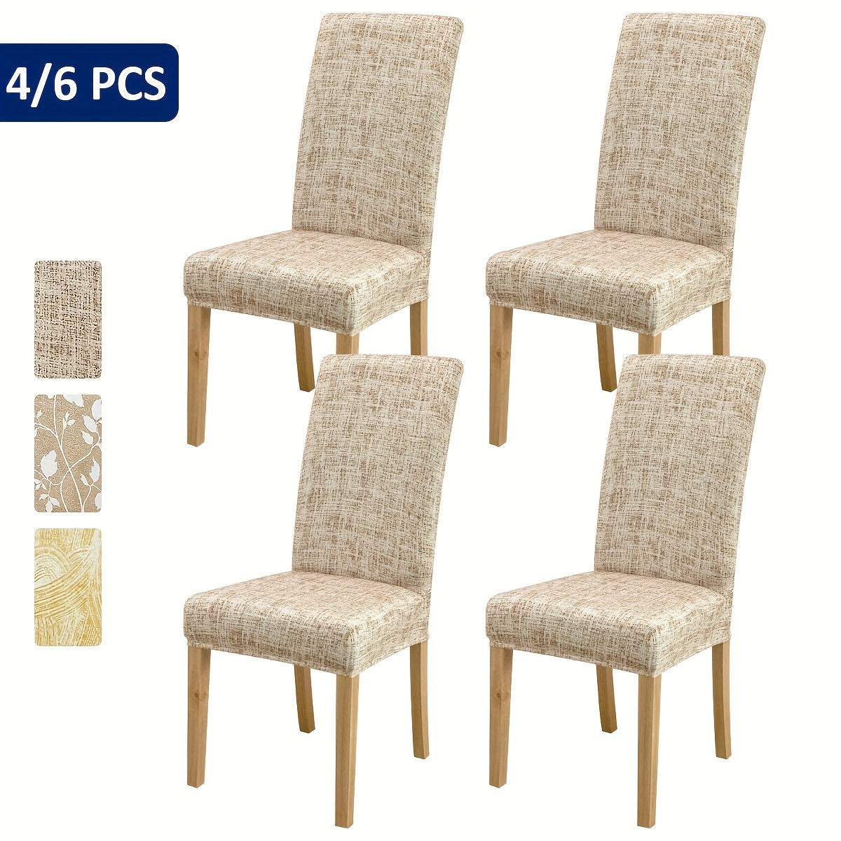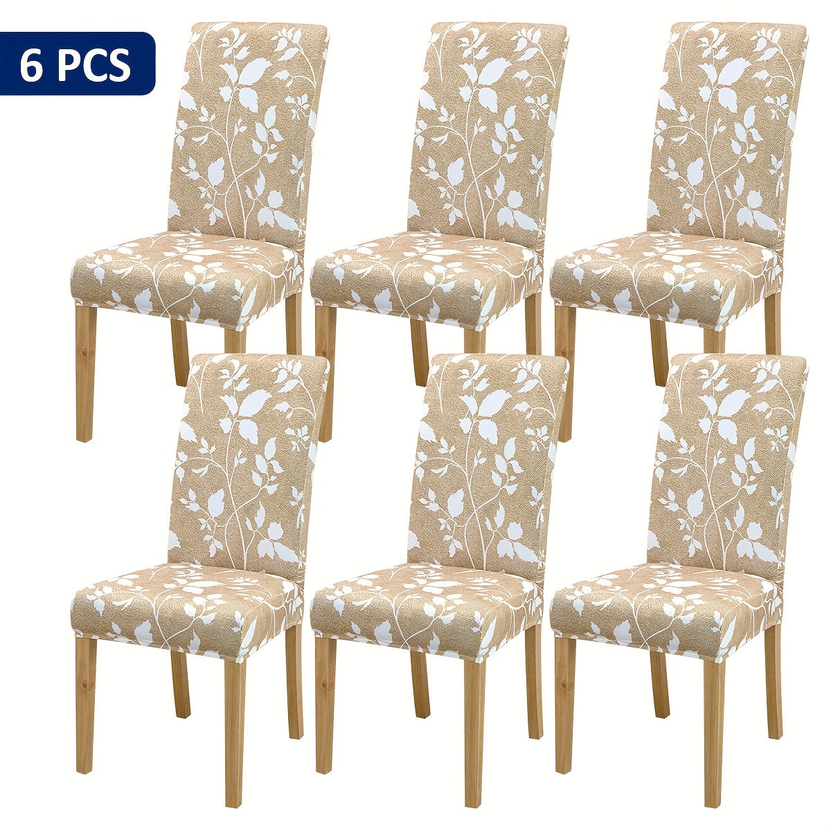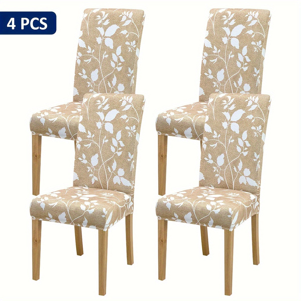 Набор из 4/6 чехлов для стульев с клетчатым светло-коричневым цветочным принтом для домашнего декора и защиты мебели.