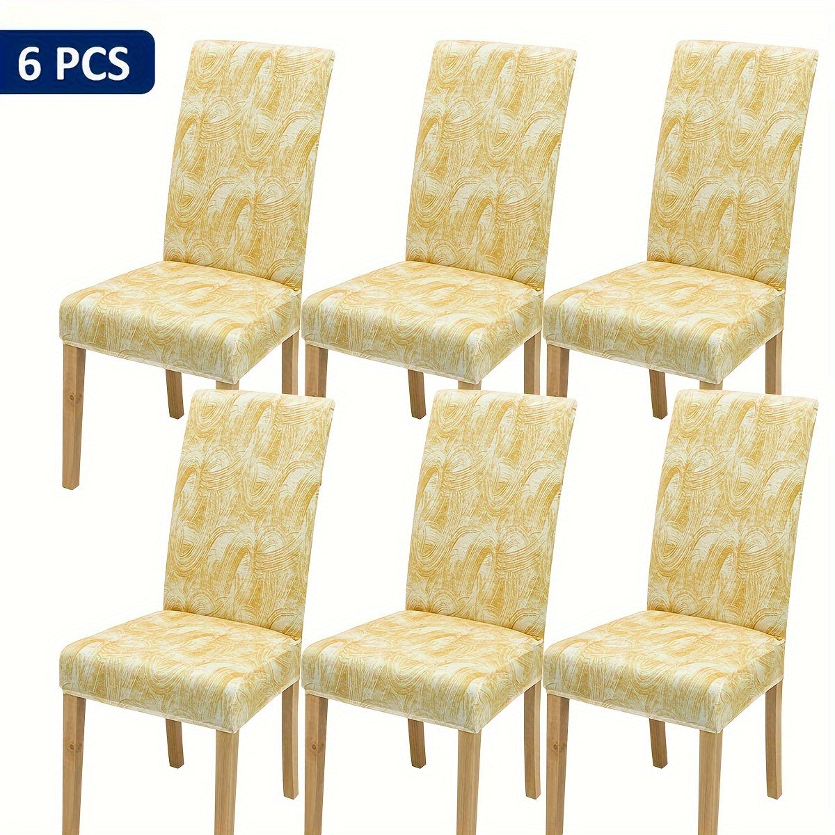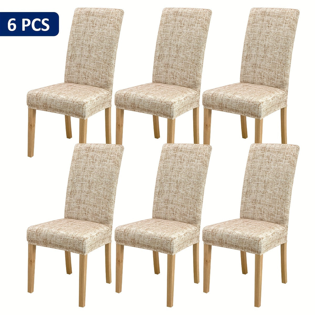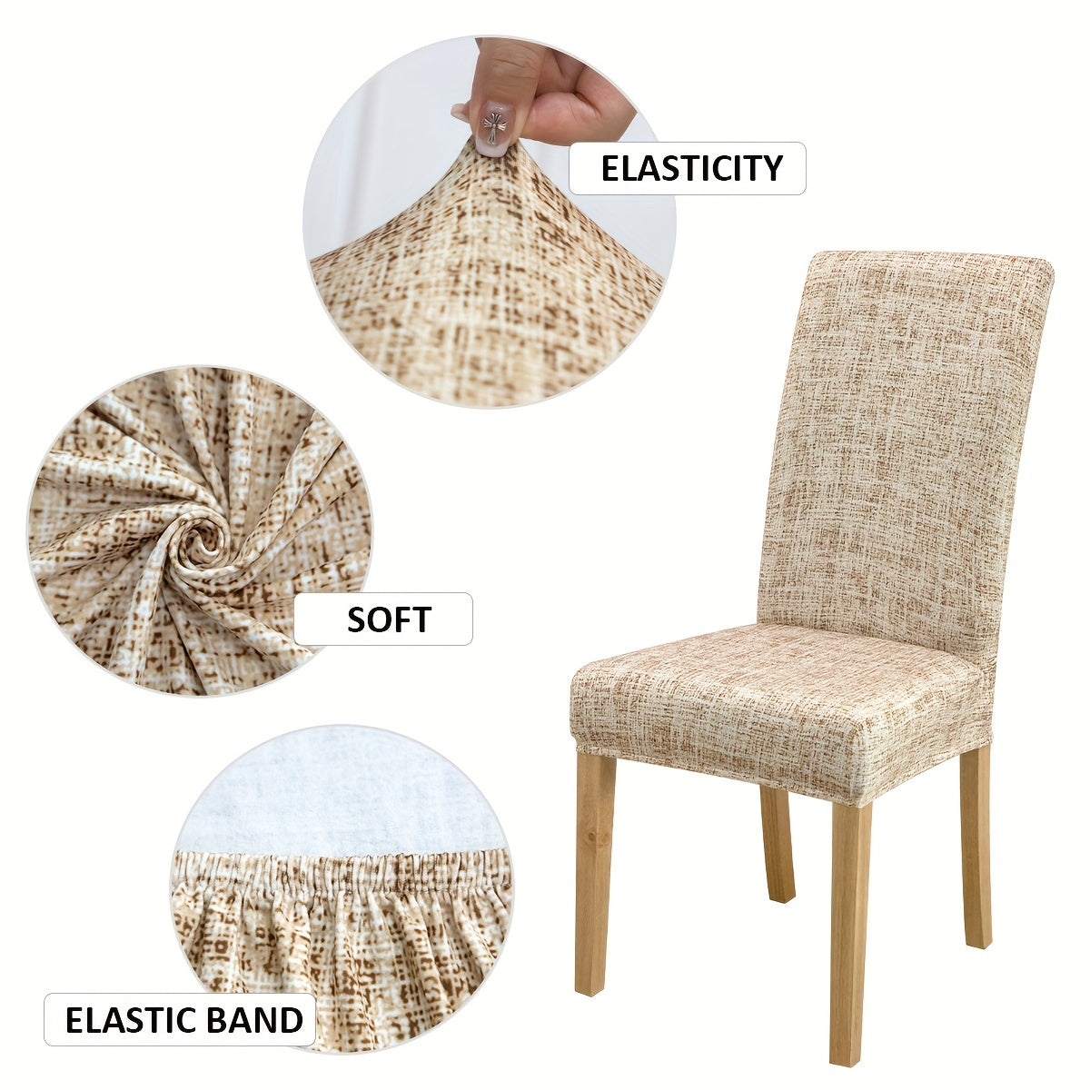 Набор из 4/6 чехлов для стульев с клетчатым светло-коричневым цветочным принтом для домашнего декора и защиты мебели.