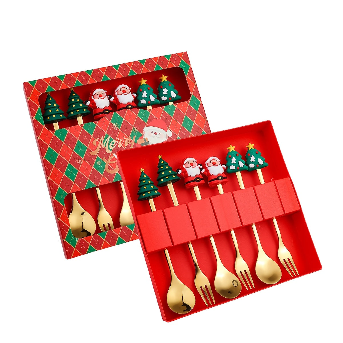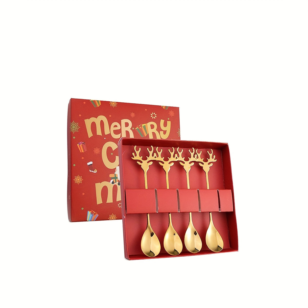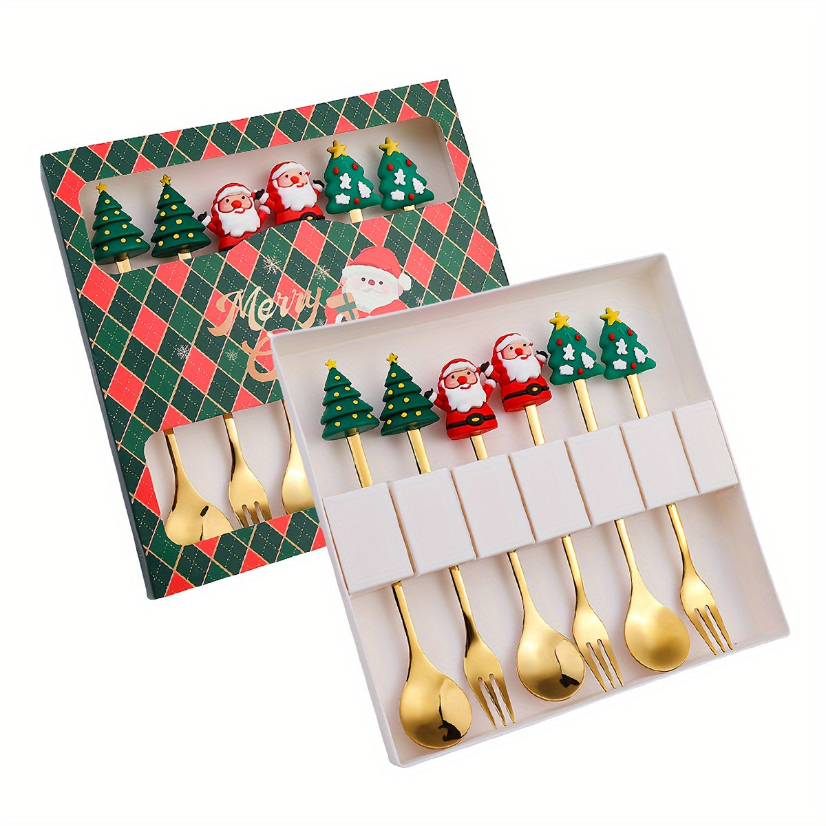 Набор из 4/6 рождественских стальных кофейных ложек и вилок в красной или зеленой подарочной коробке для размешивания напитков и десертов.