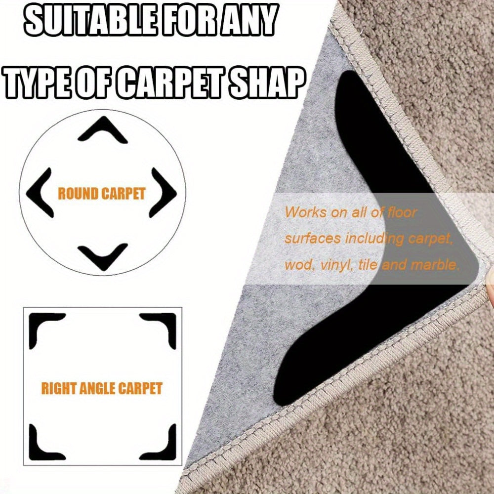 Набор из 4/8/12 захватов для ковров с прочным клеем - предотвращает скручивание и скольжение ковров, фиксирует ковры на месте, сохраняет углы ровными, подходит для углов и краев, многоразовые черные захваты