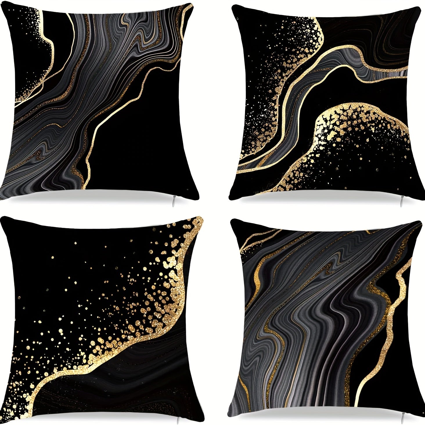 Набор из 4 черных и золотых наволочек для подушек различных размеров для акцентирования диванных подушек и домашнего декора.