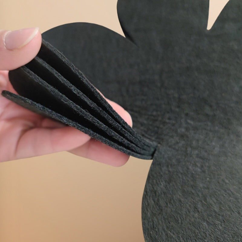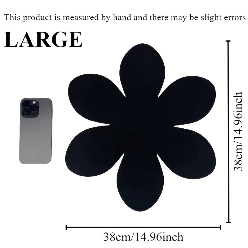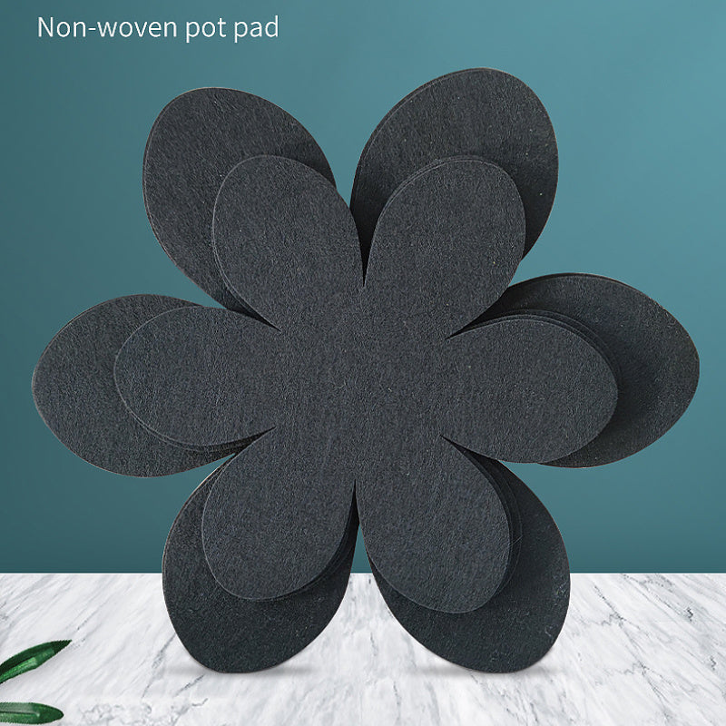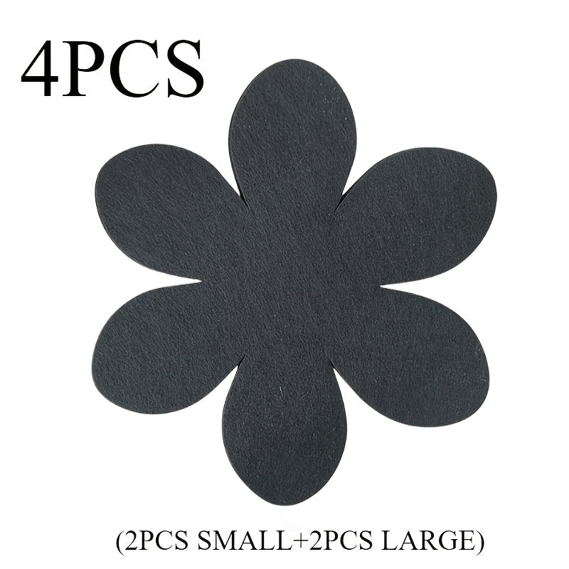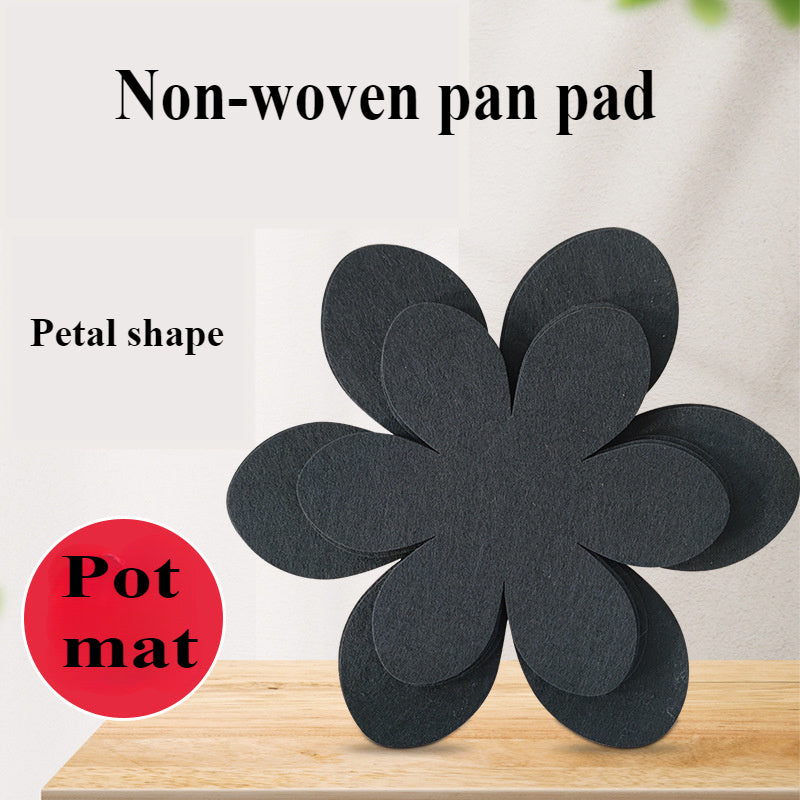 Набор из 4 черных подушечек в форме лепестков, изготовленных из нетканого, антипригарного материала. Эти подушечки не скользят, защищают от ожогов и обеспечивают теплоизоляцию. Их легко чистить, и они сделаны из многослойной войлочной ткани.