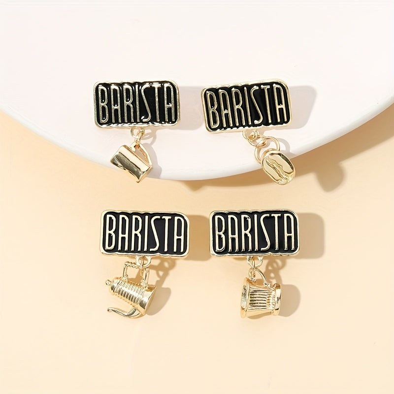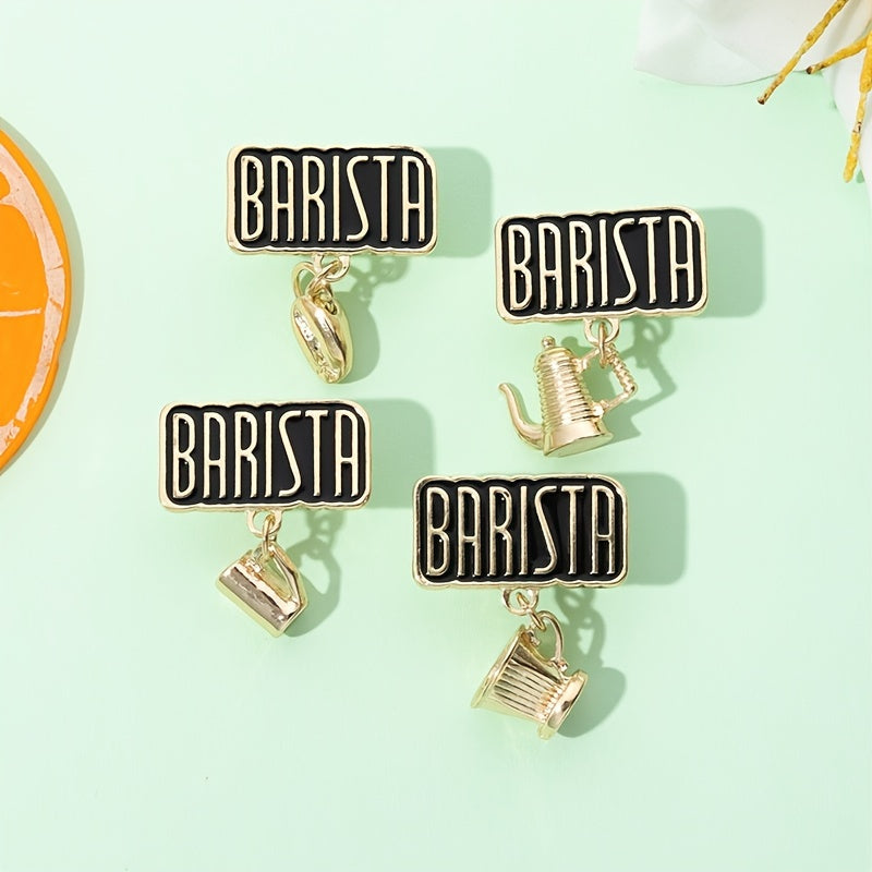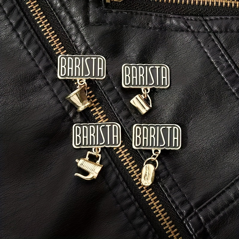 Набор из 4 эмалевых значков с бариста-темой, с очаровательными дизайнами кофейной чашки, кофейника и кофейного зерна. Идеальные броши для одежды, уникальные неправильные формы, идеально подходят для женской моды, новинки в виде кнопок и значков.