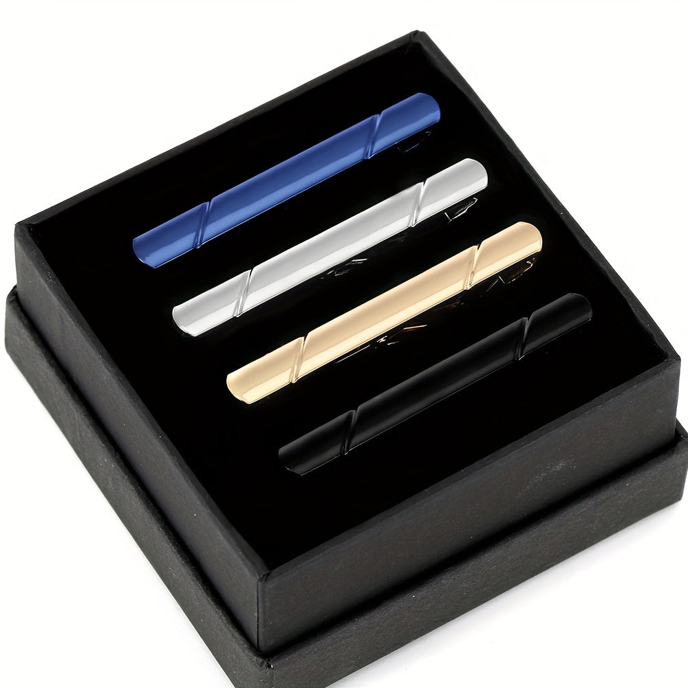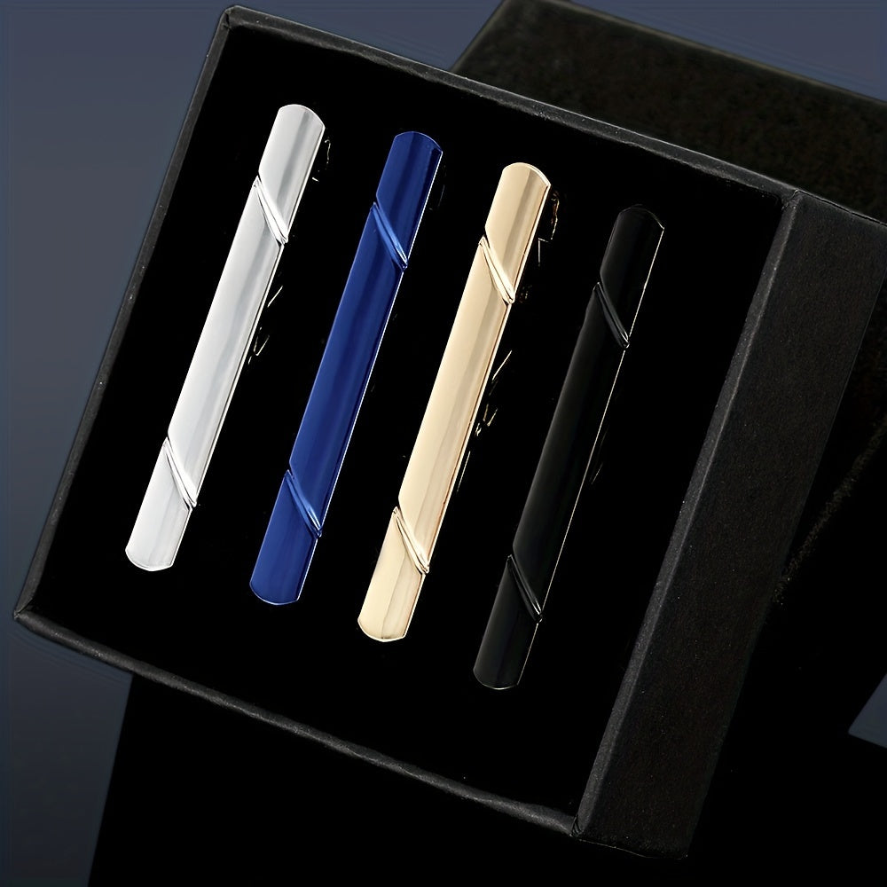 Набор из 4 мужских зажимов для галстука из меди с геометрическим дизайном для деловой и официальной одежды