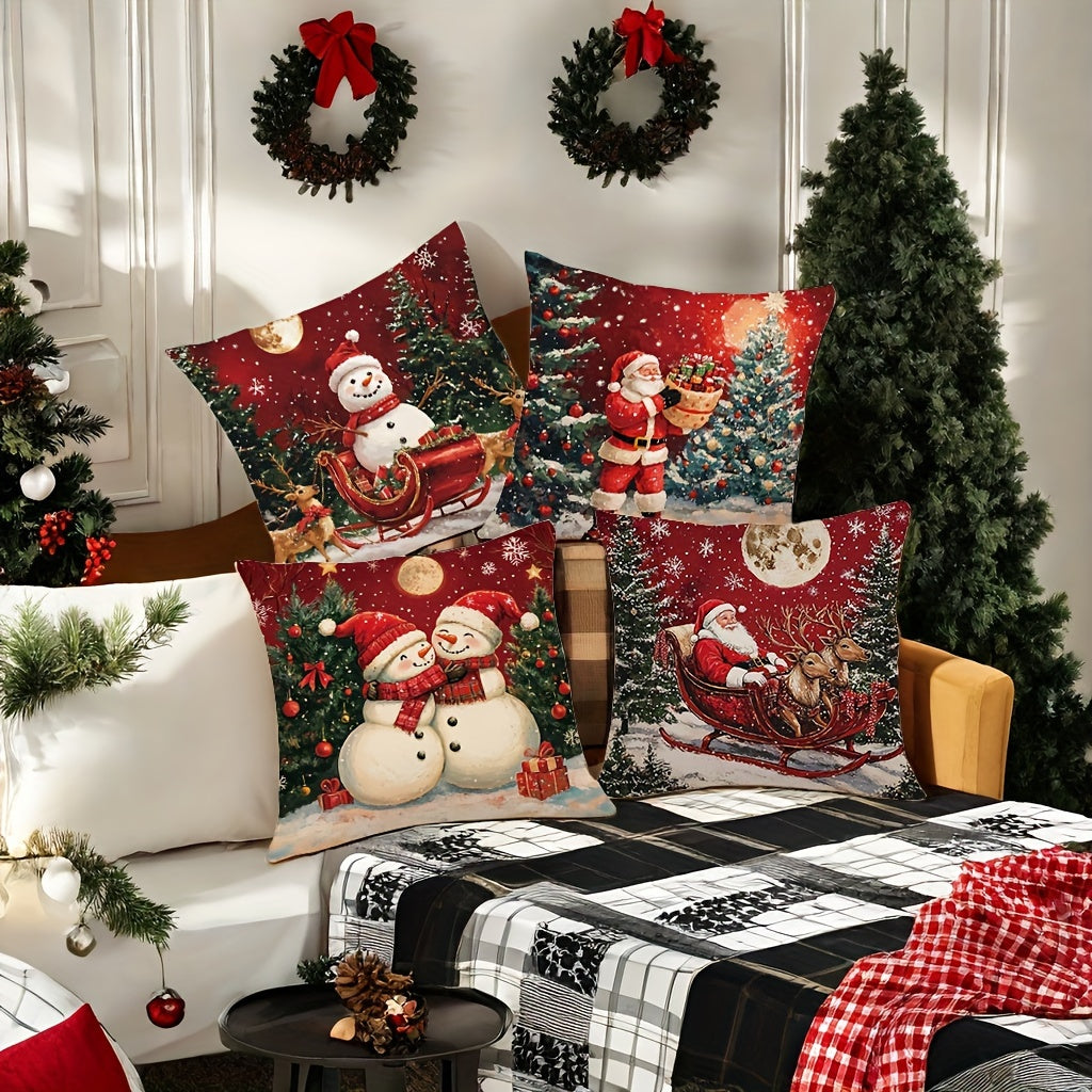 Набор из 4 современных чехлов для рождественских подушек, ткань из полиэстера, можно стирать вручную, с застежкой-молнией, праздничные новогодние принты, декор для дивана и гостиной, 45,01x45,01 см, вставка не включена.