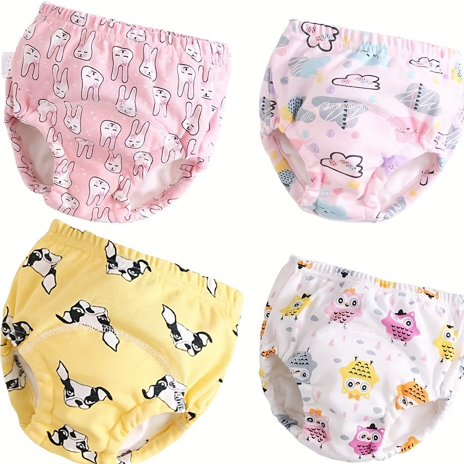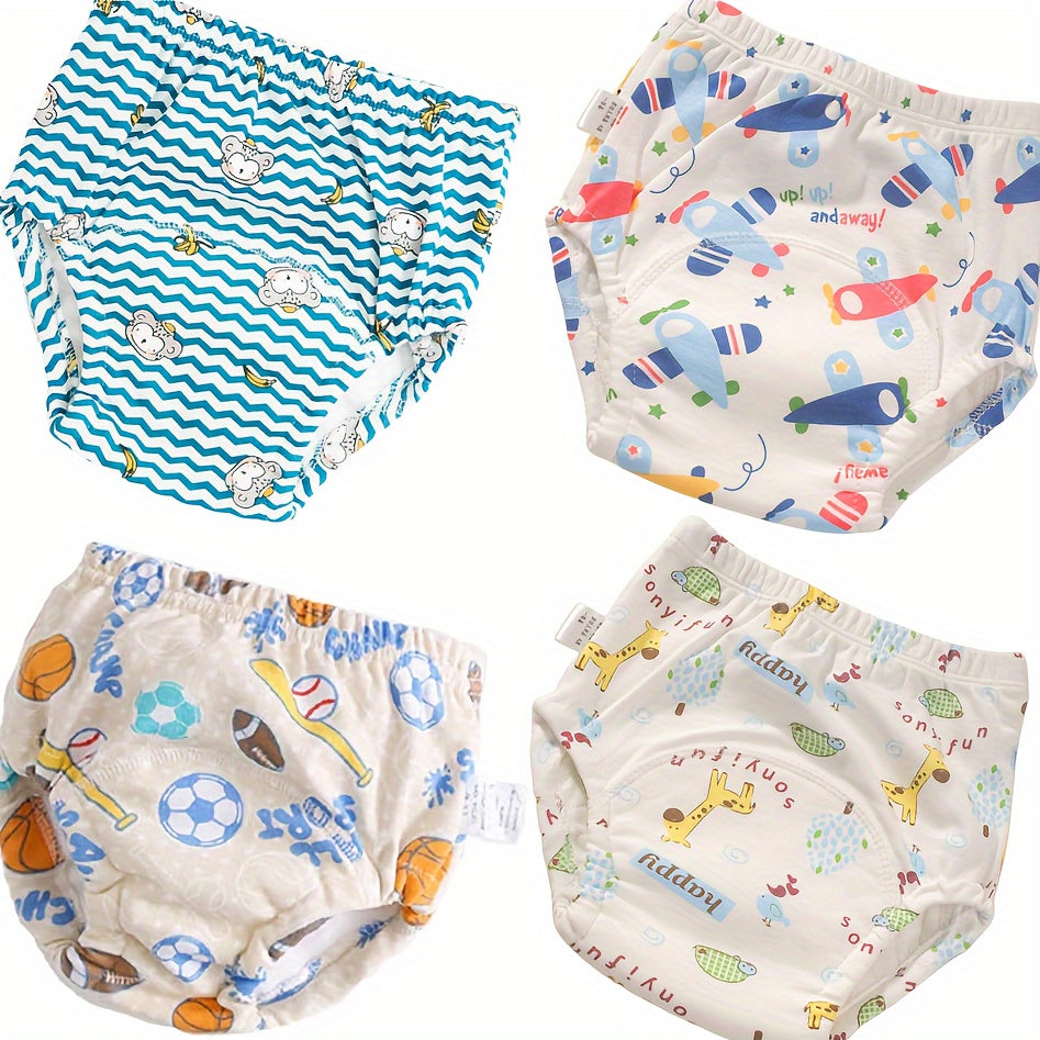 Комплект из 4 тренировочных трусиков для мальчиков и девочек, многоразовые трусики для приучения к горшку с веселыми обучающими дизайнами, тренировочные трусики.