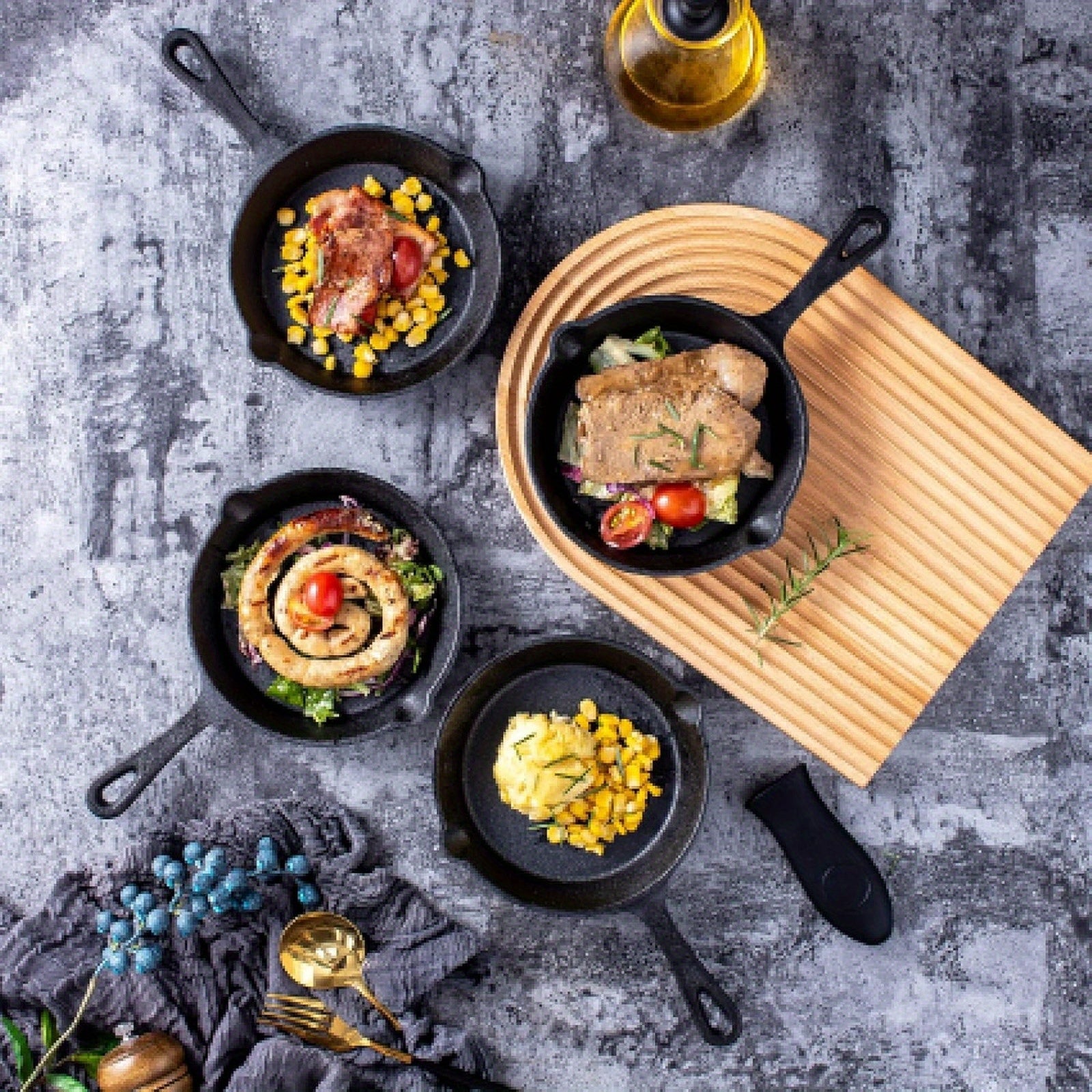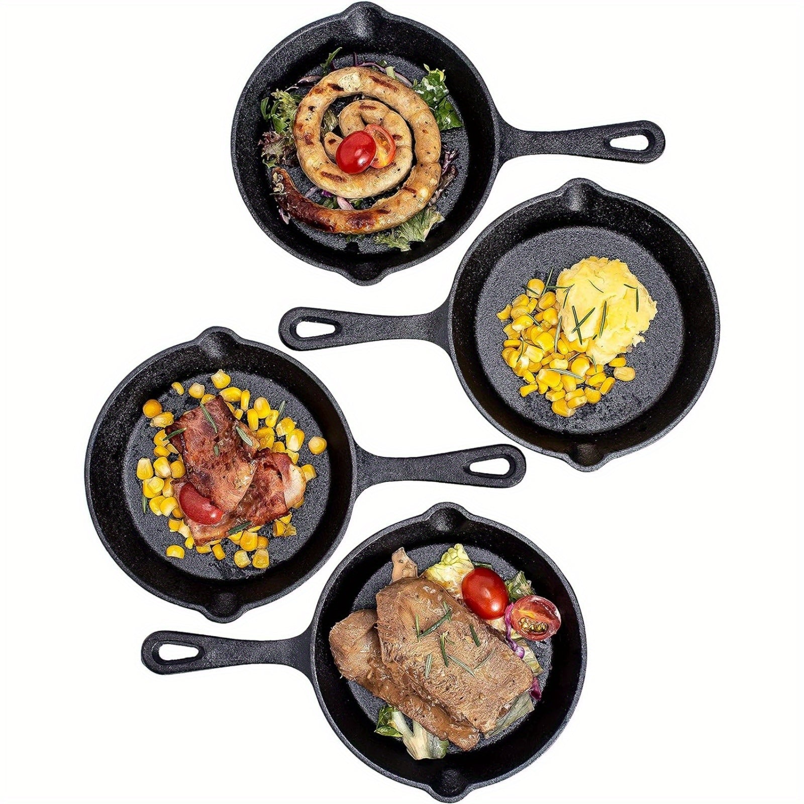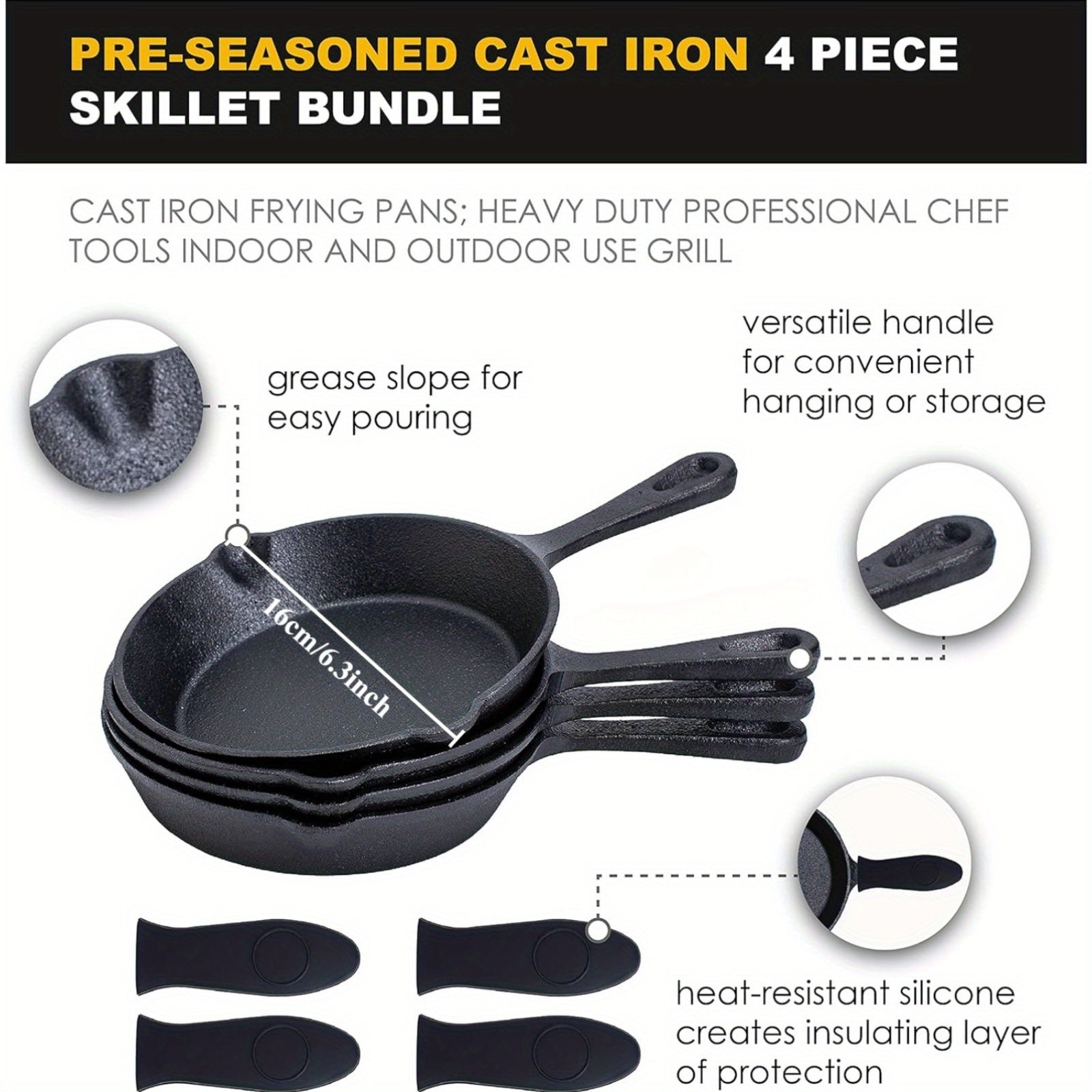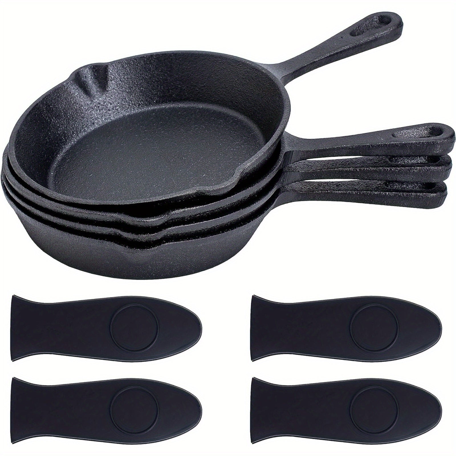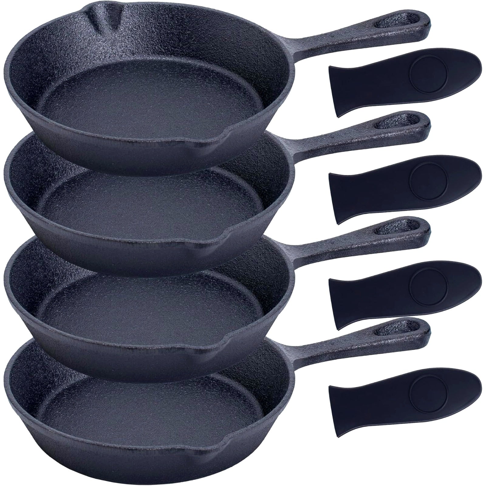 Набор из 4 предварительно приправленных чугунных сковородок - только ручная мойка - диаметр 15,24 см - безопасные для духовки жаровни - прочная посуда с силиконовыми ручками - идеально подходит для приготовления как в помещении, так и на улице