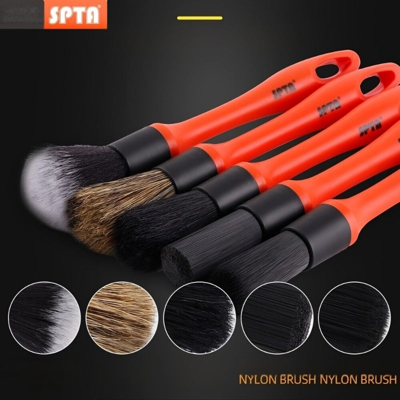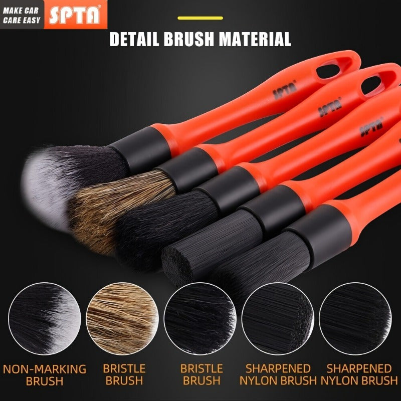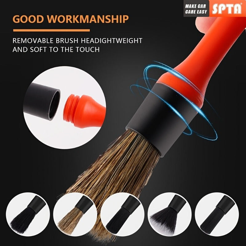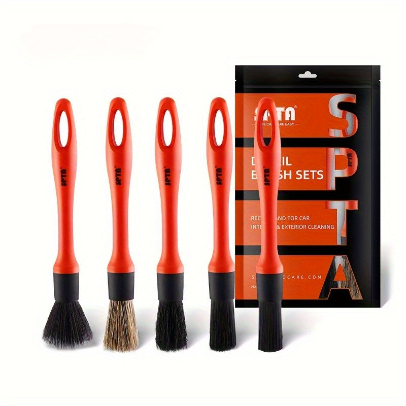 Набор из 5 щеток для детальной очистки автомобиля - щетина из конского волоса и нейлона - универсальные инструменты для чистки приборной панели, колес и интерьера - не требуется электричество для использования дома или в автомобиле