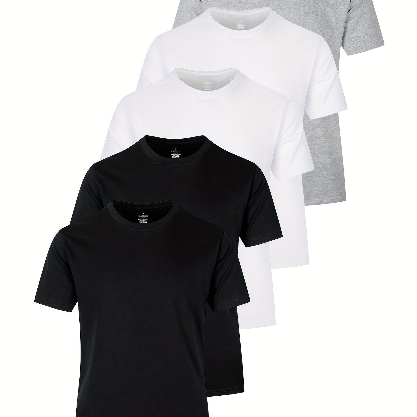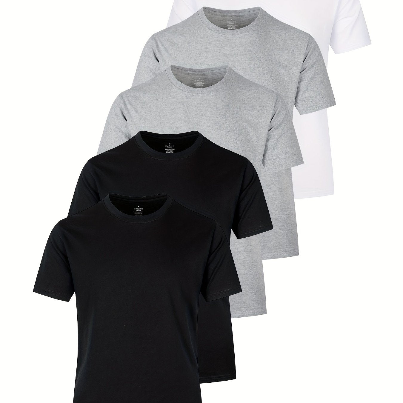 Набор из 5 легких хлопковых футболок с круглым вырезом для мужчин, идеально подходящих для летних видов спорта и в качестве подарка.