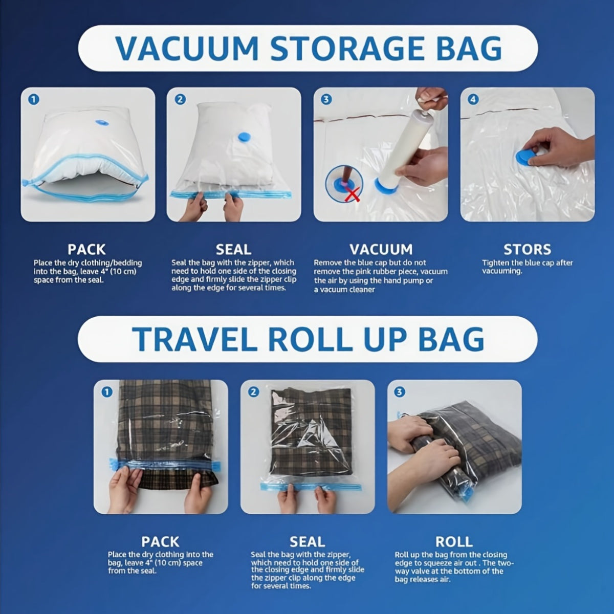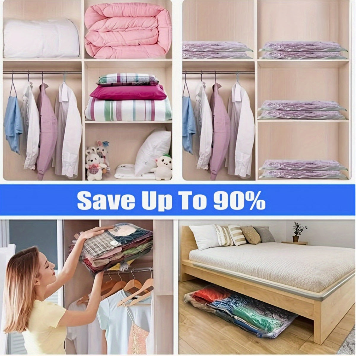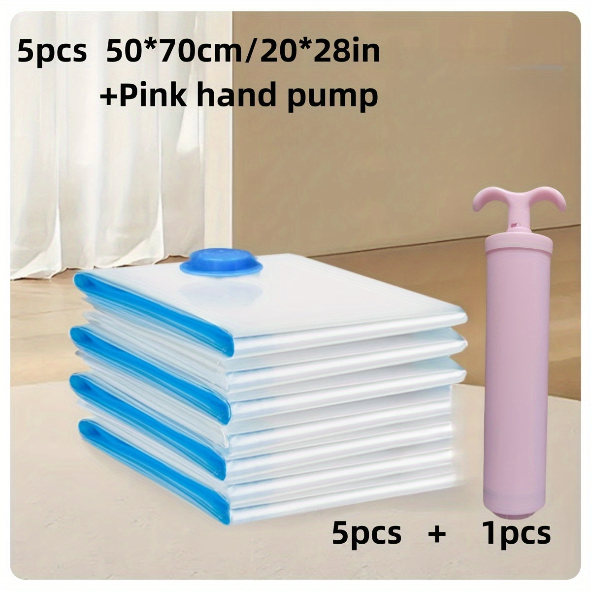Набор из 5 вакуумных компрессионных мешков для хранения с розовым ручным насосом для путешествий, кемпинга, экономии пространства