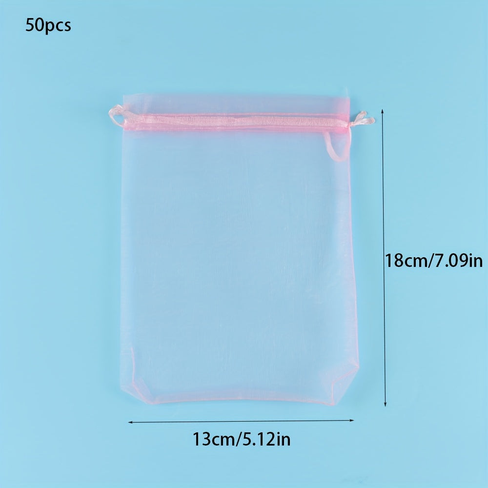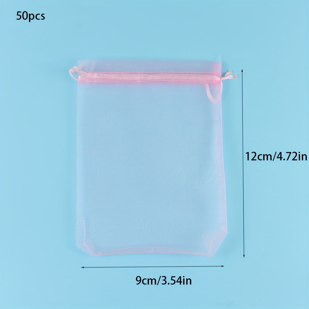 Набор из 50 розовых органзовых подарочных мешков с шнурком для украшений и подарков
