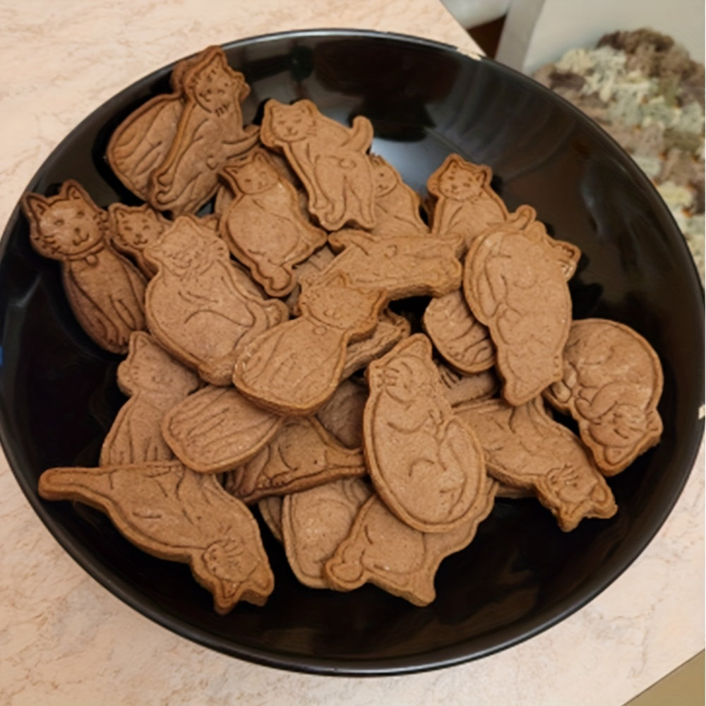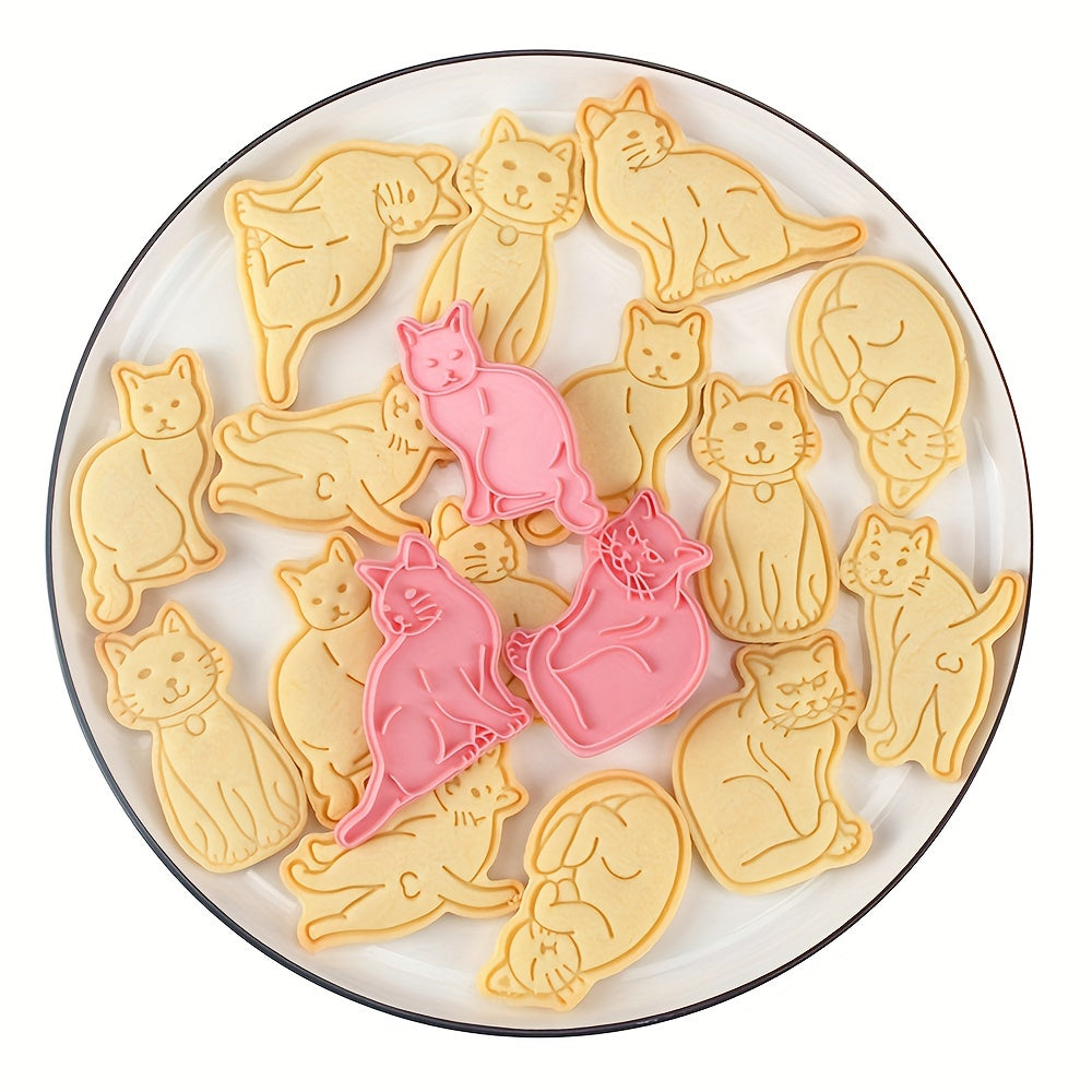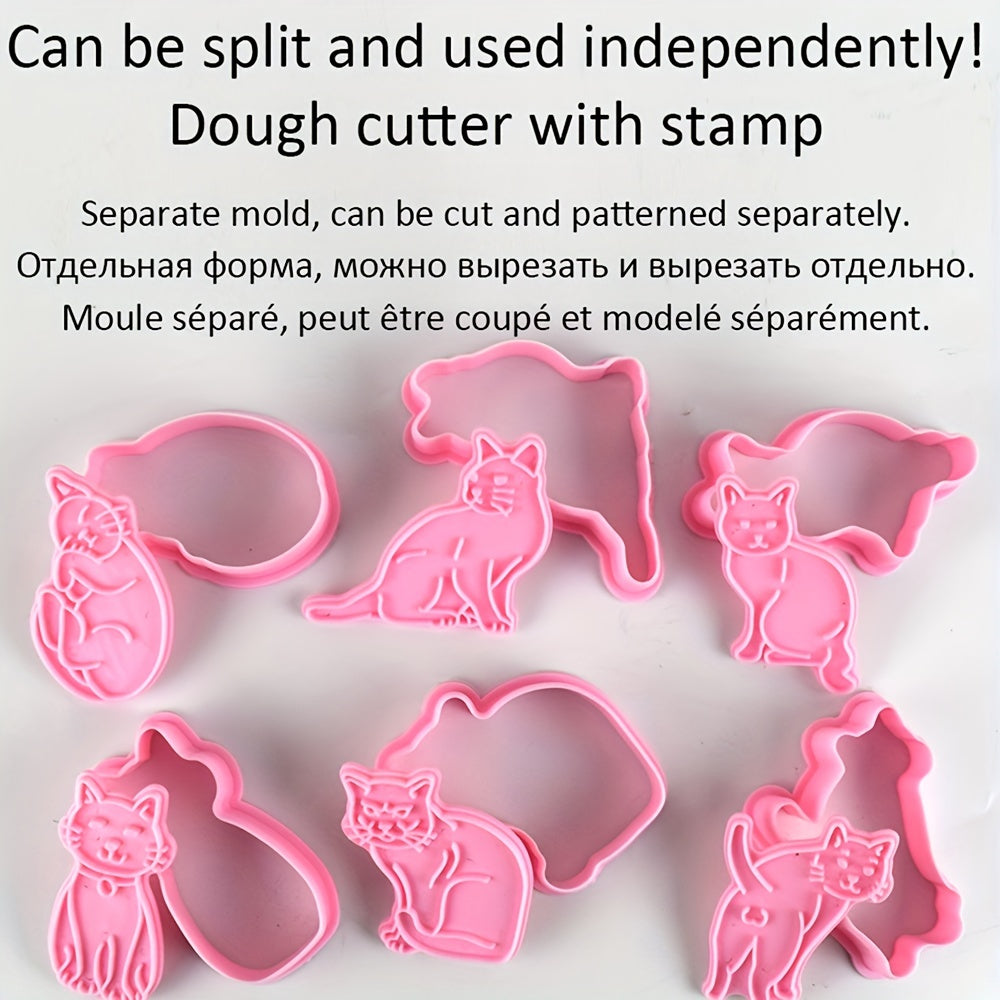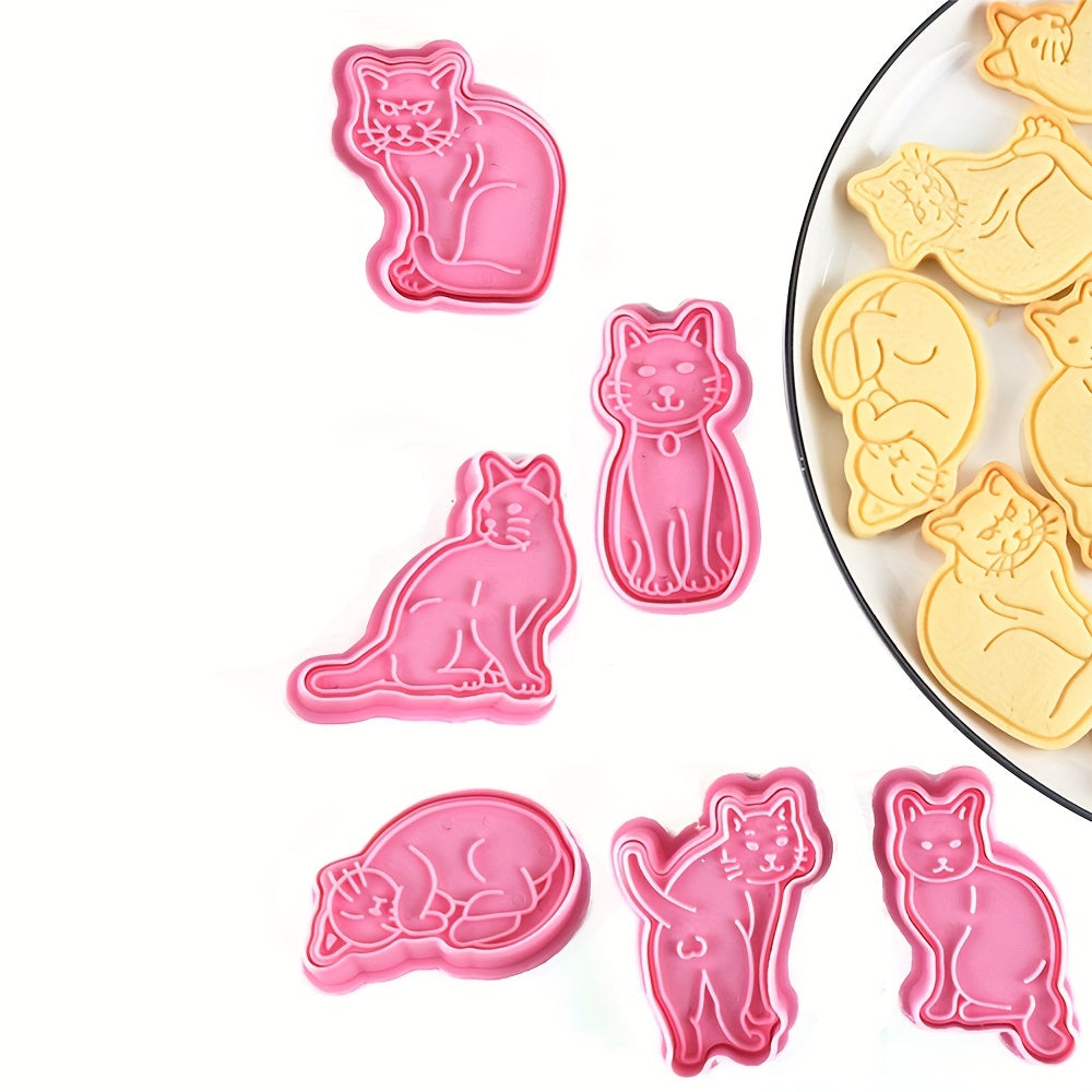 Набор из 6 очаровательных формочек для печенья в виде кошек с толкателями — идеально подходит для приготовления вкусных угощений и украшения тортов