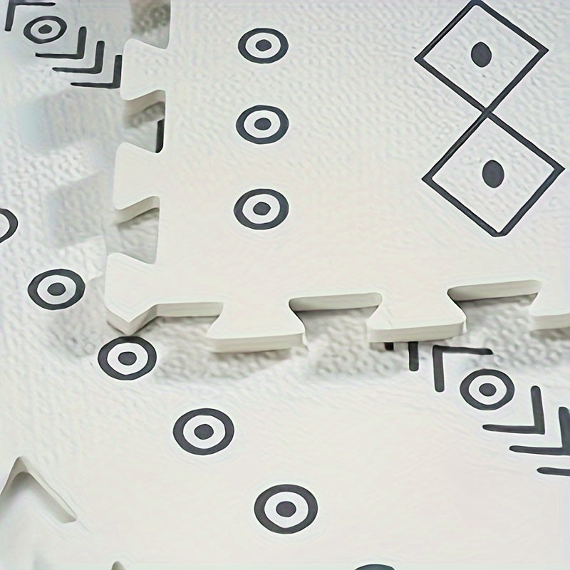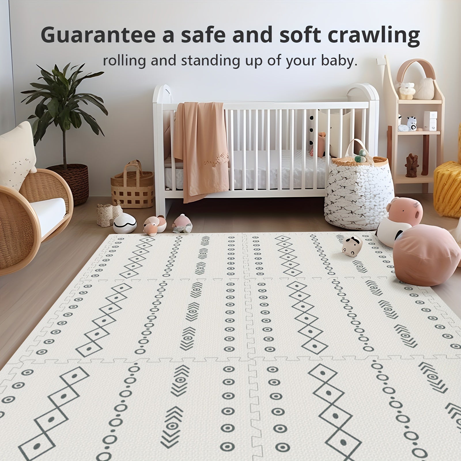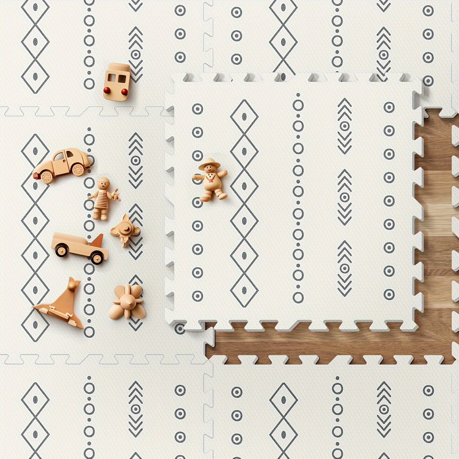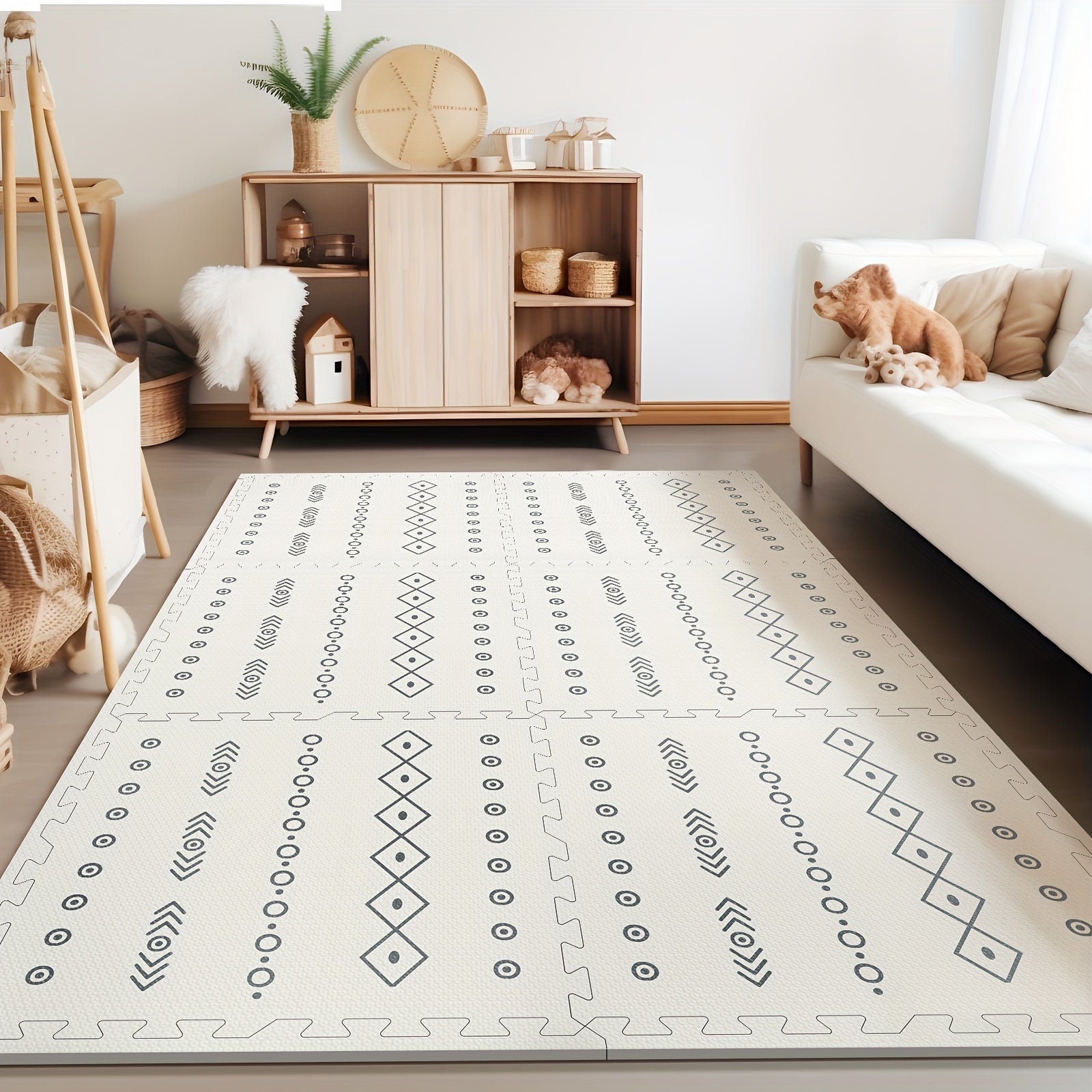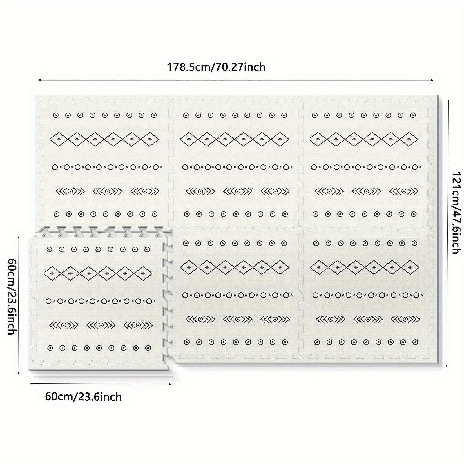 Набор из 6 ковриков для игр в богемском стиле: каждый коврик имеет размеры 60 см x 60 см и толщину 1,2 см. Коврики легко соединяются друг с другом и просты в очистке, что делает их идеальными как для игр в помещении, так и на улице.