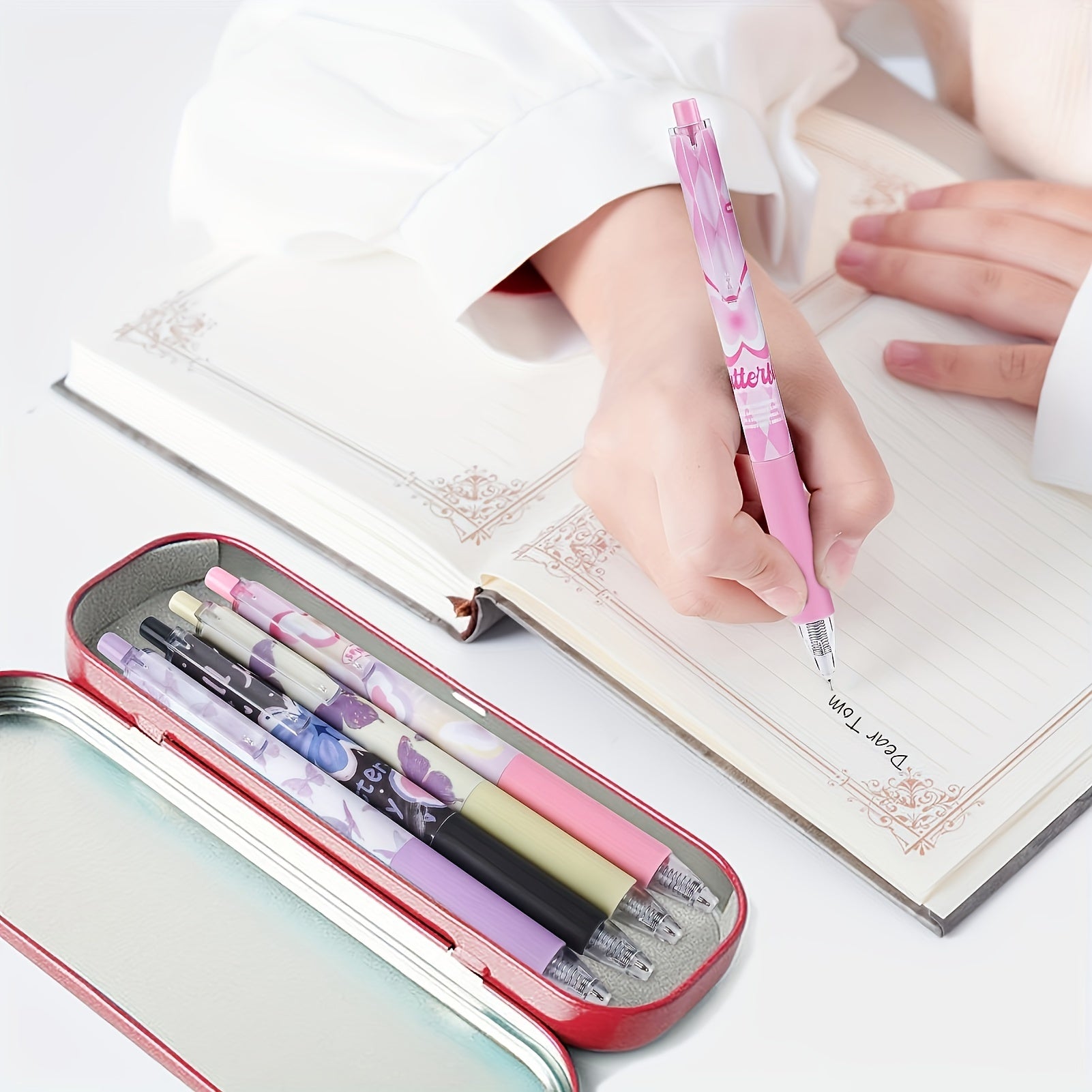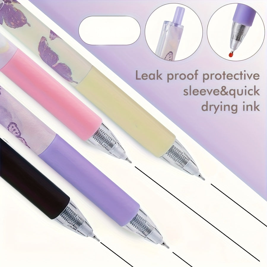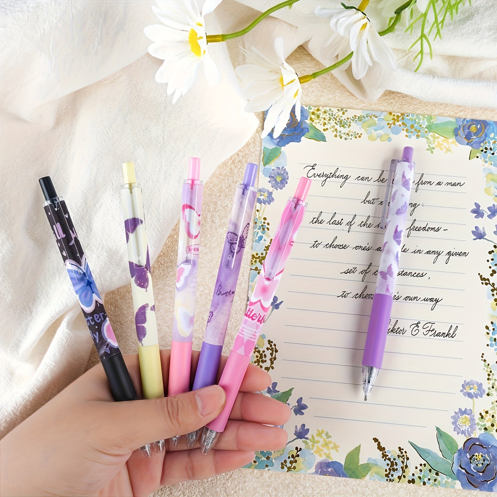 Набор из 6 нейтральных эстетических ручек с черными чернилами, 0,5 мм тонкий наконечник для гладкой письма, мечтательный дизайн с бабочками, идеален для использования в школе или офисе.