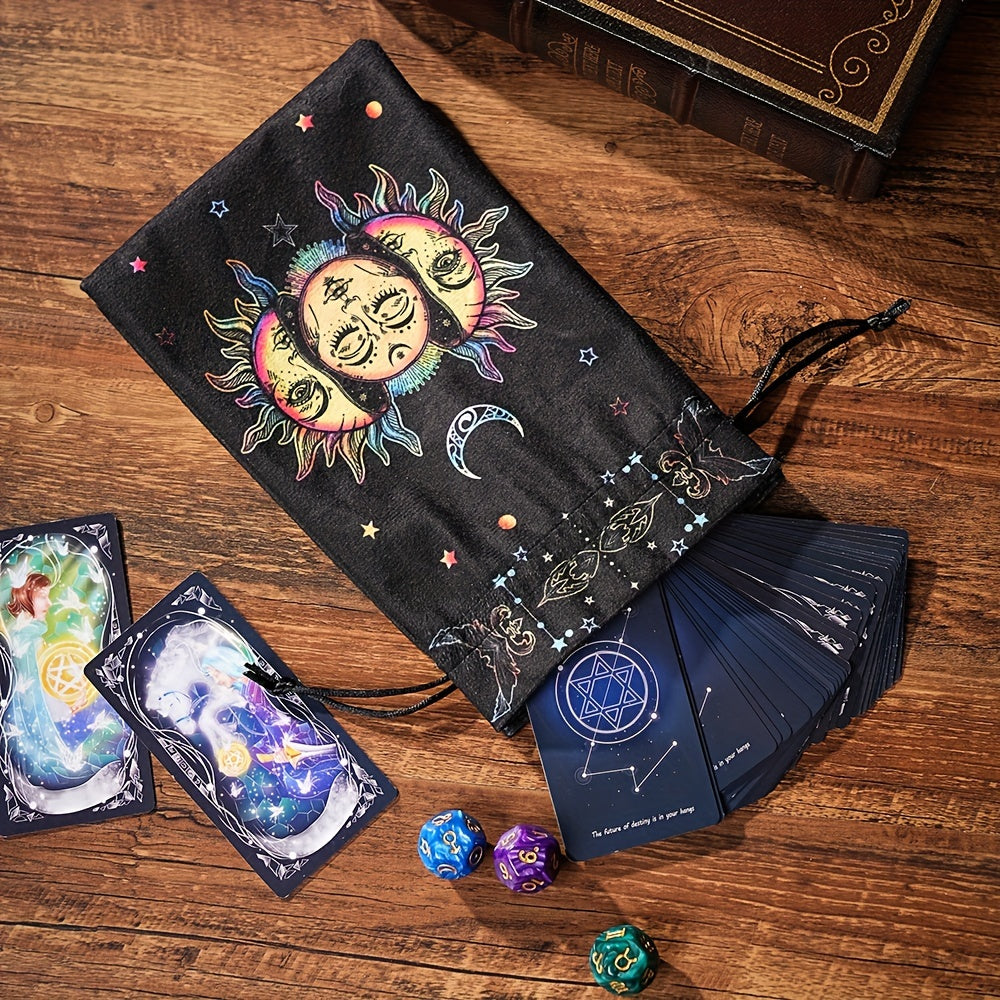Набор из 6 бархатных мешочков на шнурке с астрологическими и небесными узорами для хранения украшений и путешествий