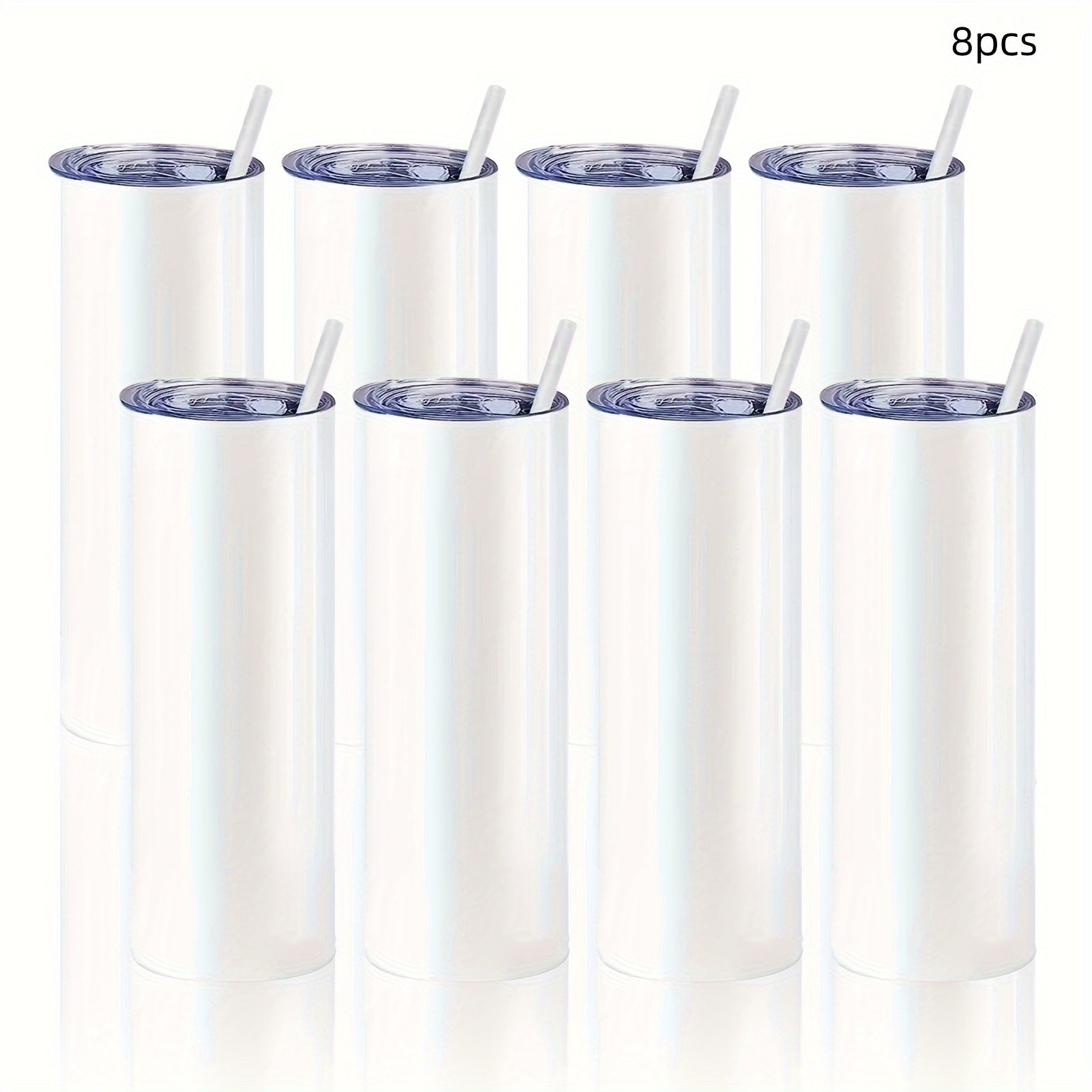 Набор из 8 тонких стаканов для сублимации объемом 20 унций оптом, пустые белые с крышкой и соломинкой - Идеальные рождественские подарки