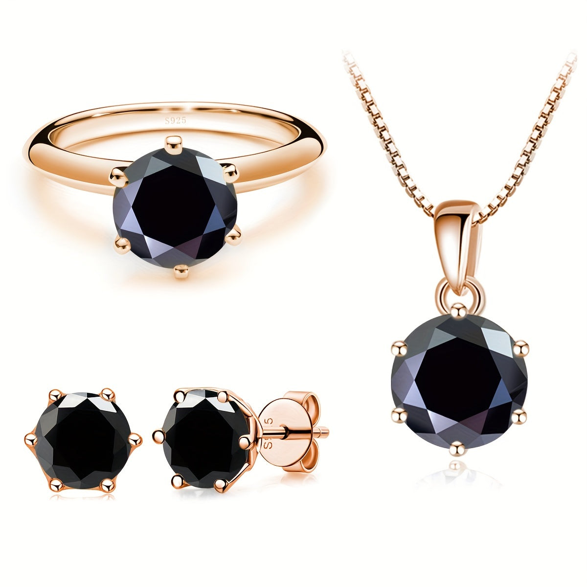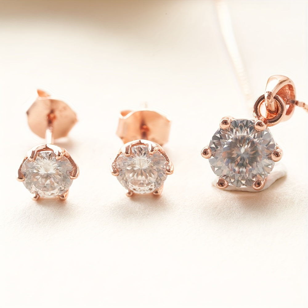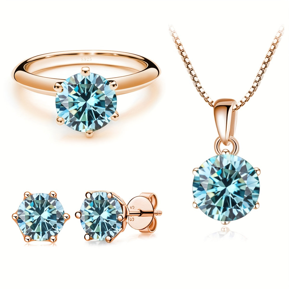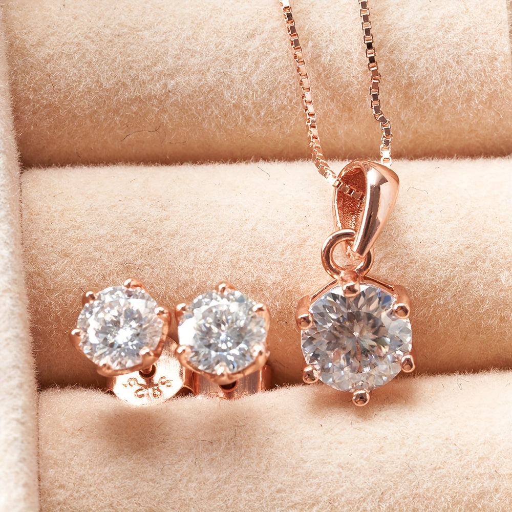 Комплект ювелирных изделий из серебра 925 пробы с 4-частной ожерельем из моиссанита, 1-частным кольцом из моиссанита и 2-частными серьгами из моиссанита, доступный в различных цветах. Поставляется в подарочной коробке.