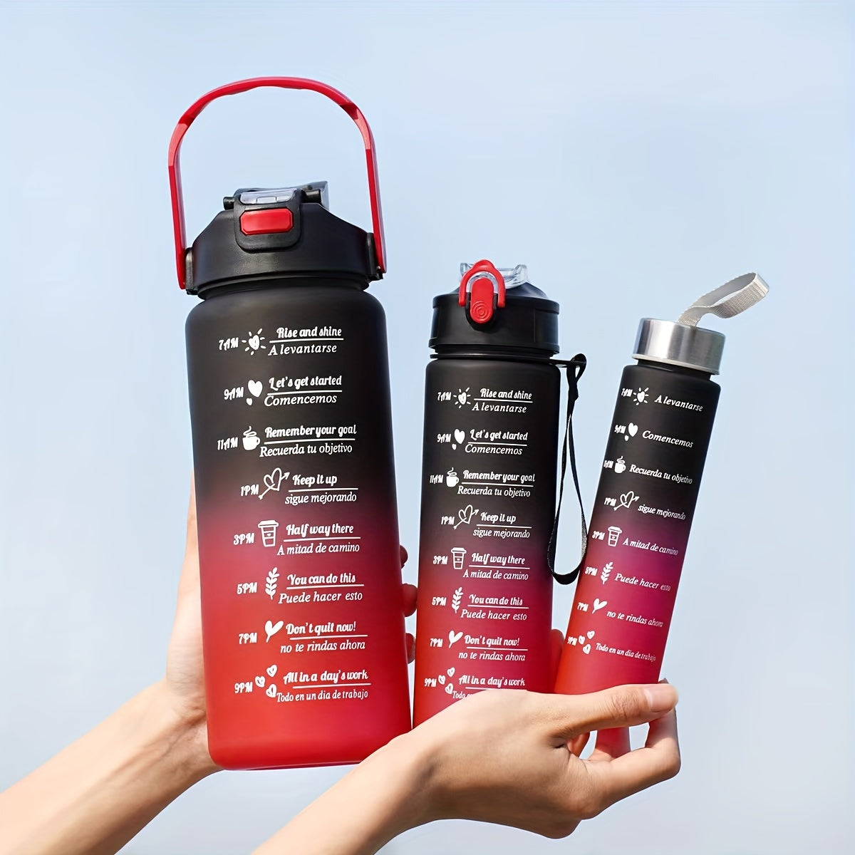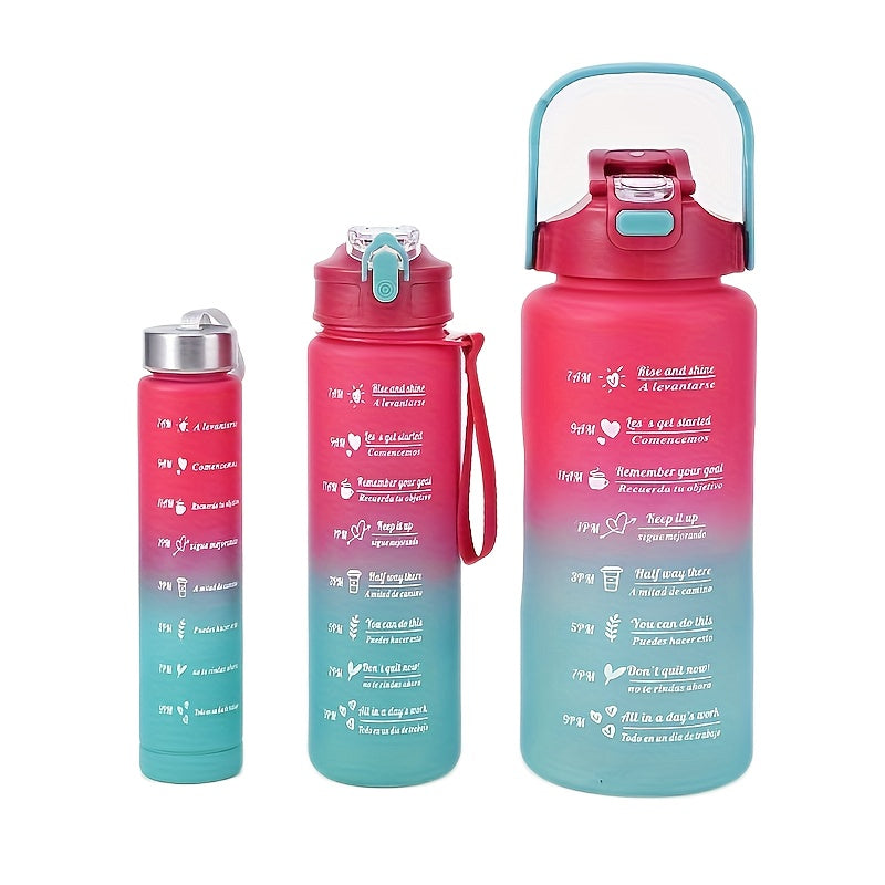 Набор из трех спортивных бутылок с градиентом, с временными метками, соломинками и защитой от протечек, изготовленных из материала PC без BPA. Идеально подходит для различных мероприятий и подарков.