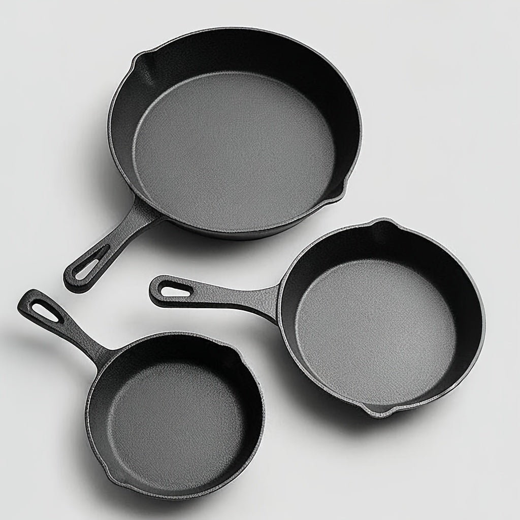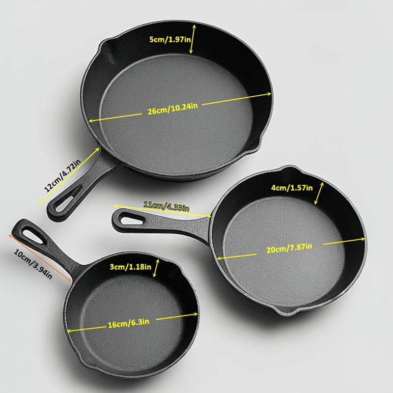 Набор из 3 чугунных сковородок с антипригарным покрытием, безопасных для духовки, диаметром 15 см, 20 см, 25 см